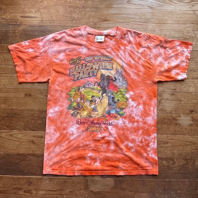 00's Walt Disney World Halloween 2005 Tシャツ mickey stitch 古着 ウォルトディズニーワールド ハロウィン タイダイ オレンジ L