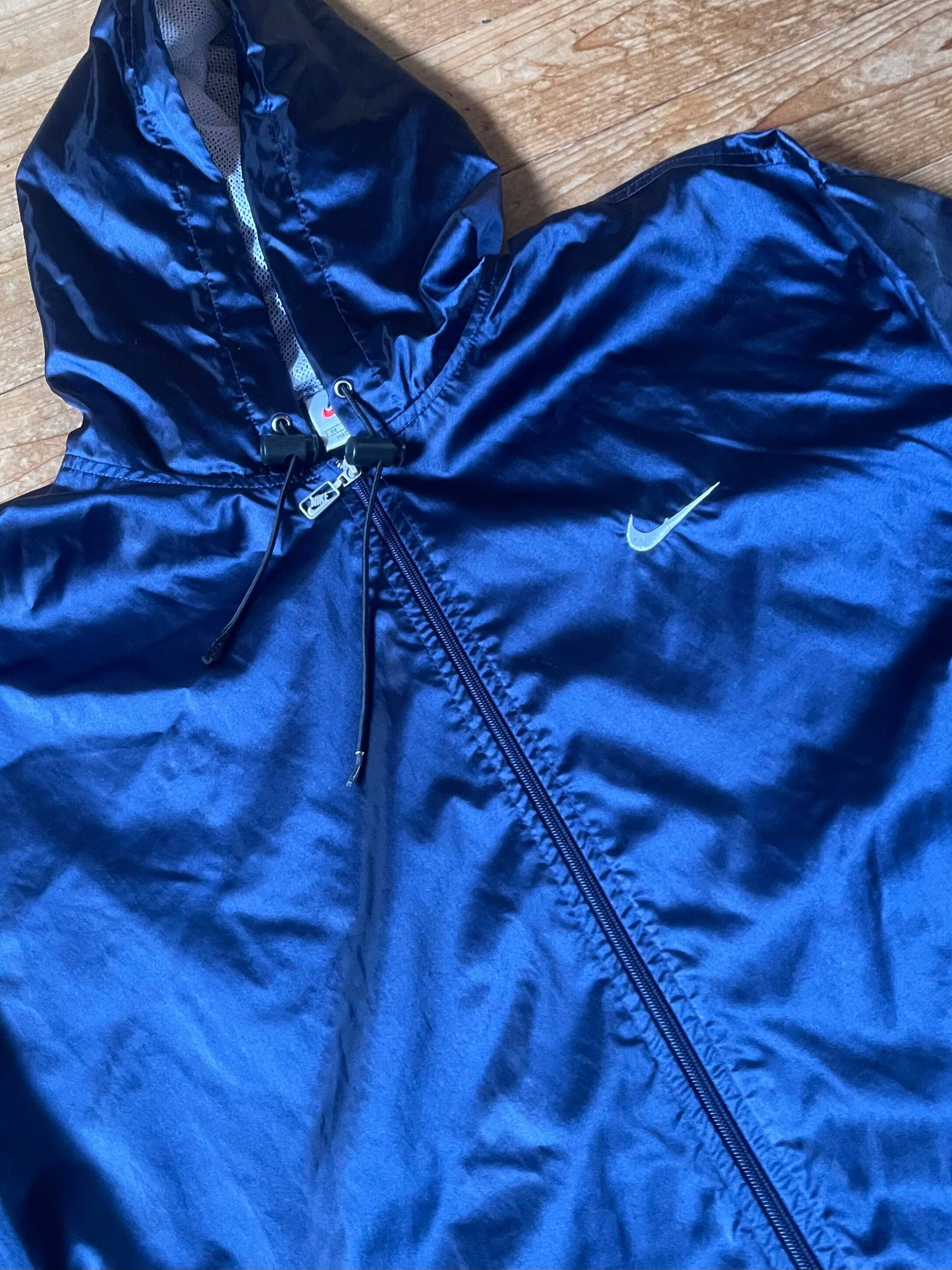 90's NIKE hoodie track jacket 古着 ナイロンフーディージャケット 光沢 白タグ vintage ナイキ