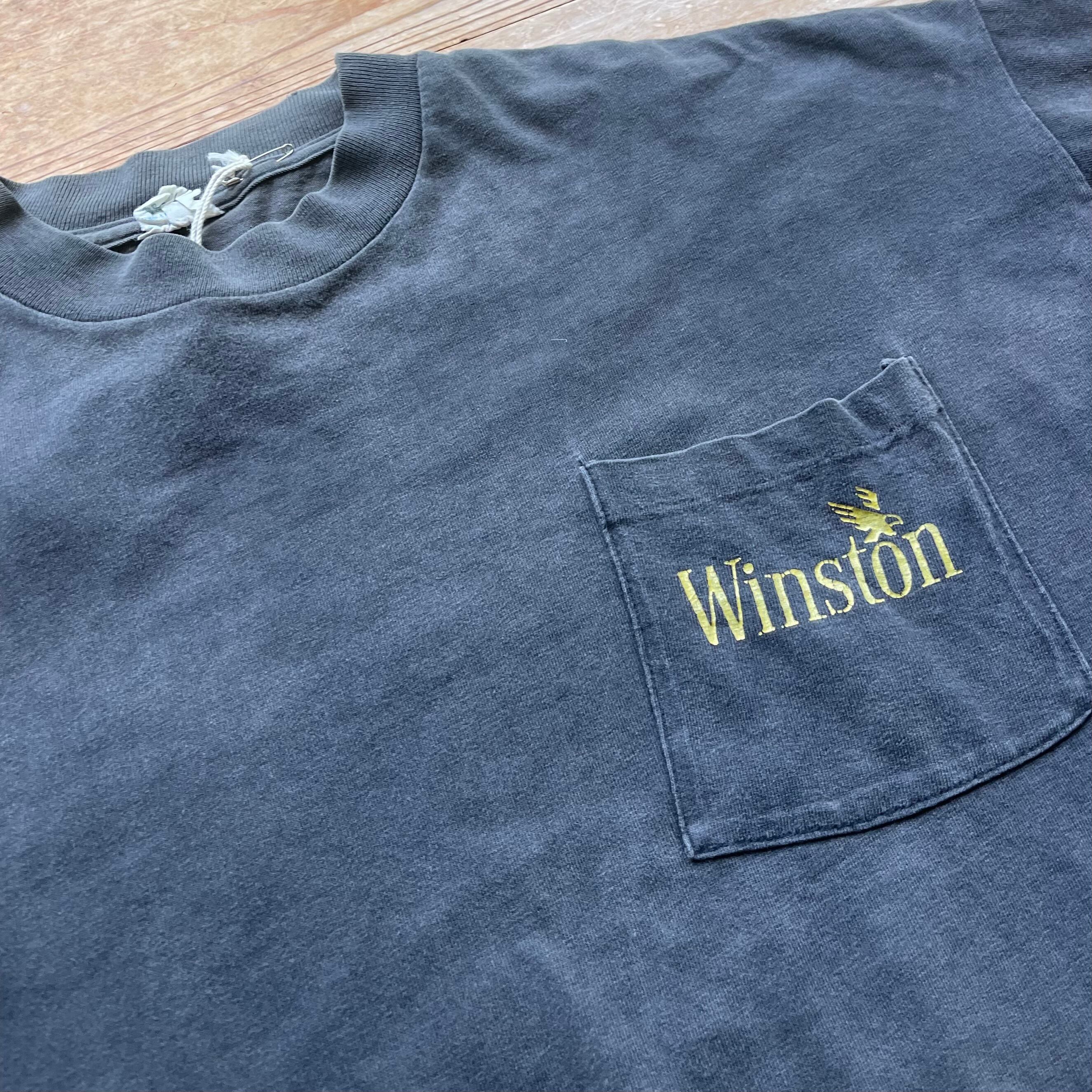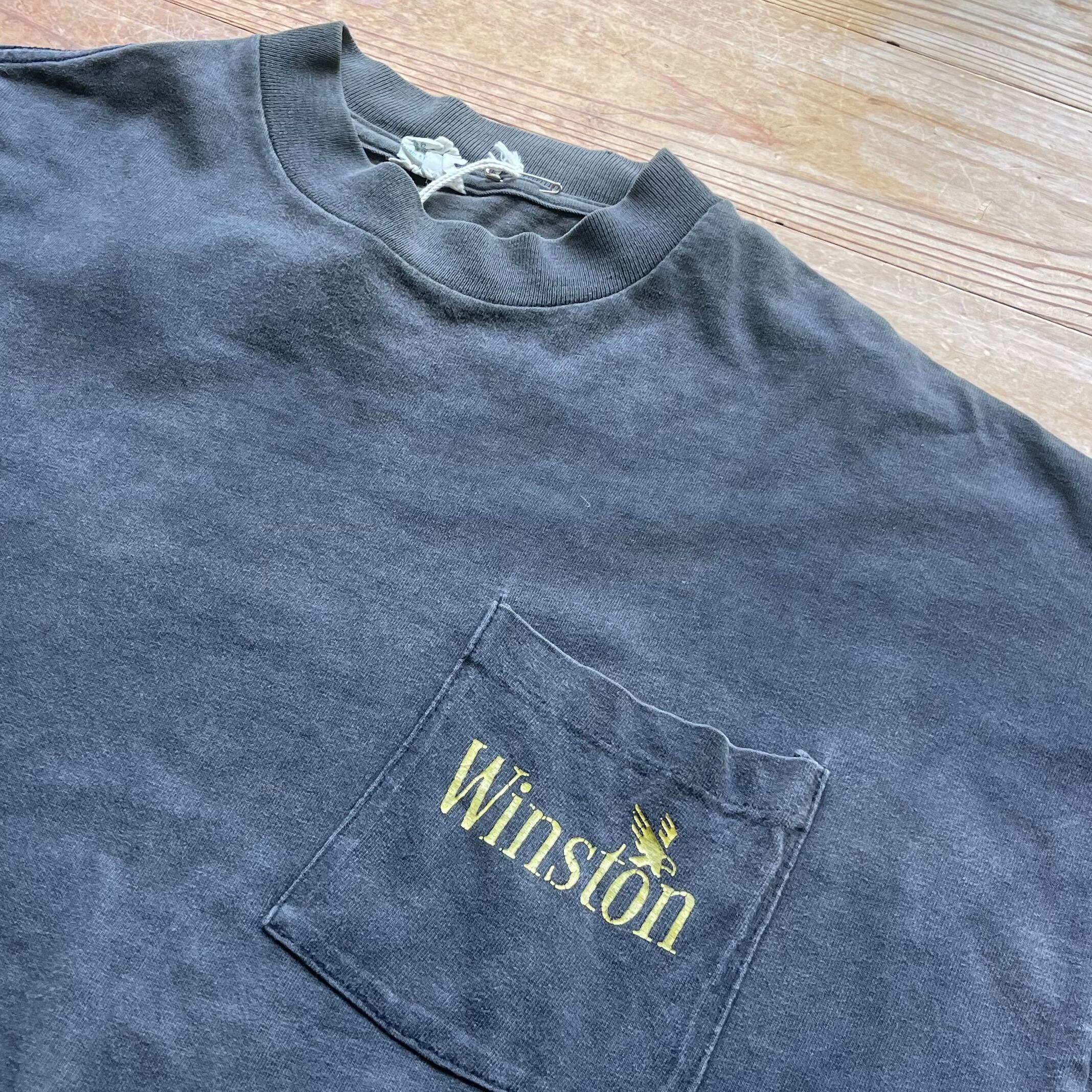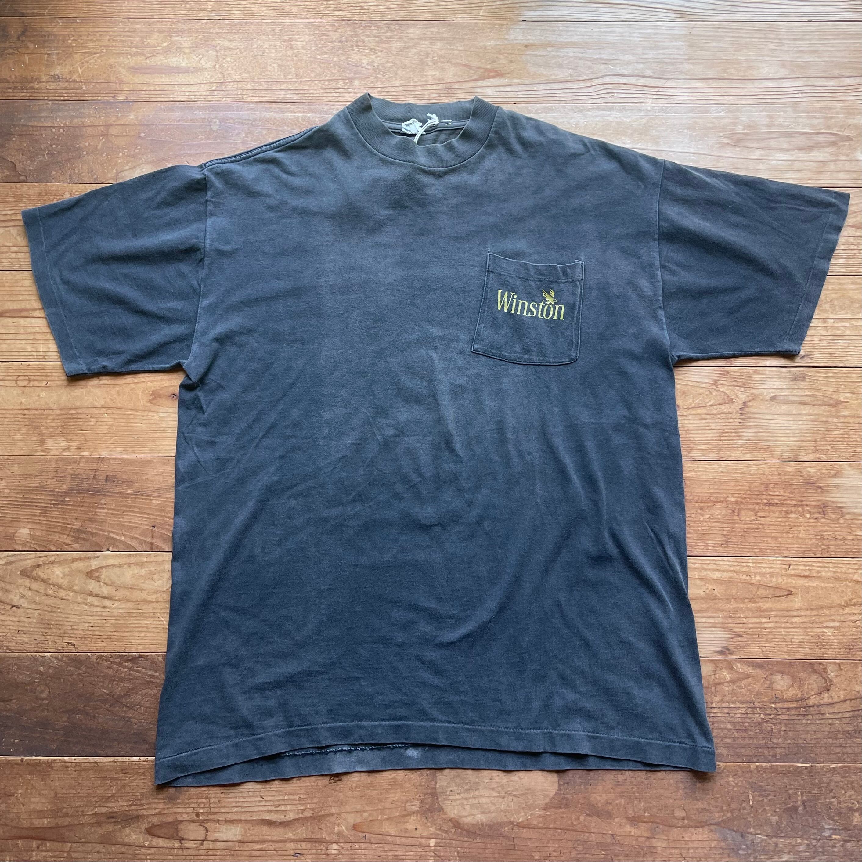 90's Winston プリントポケットT 古着 ウィンストン 鷲 タバコ フェードブラック 黒 XL