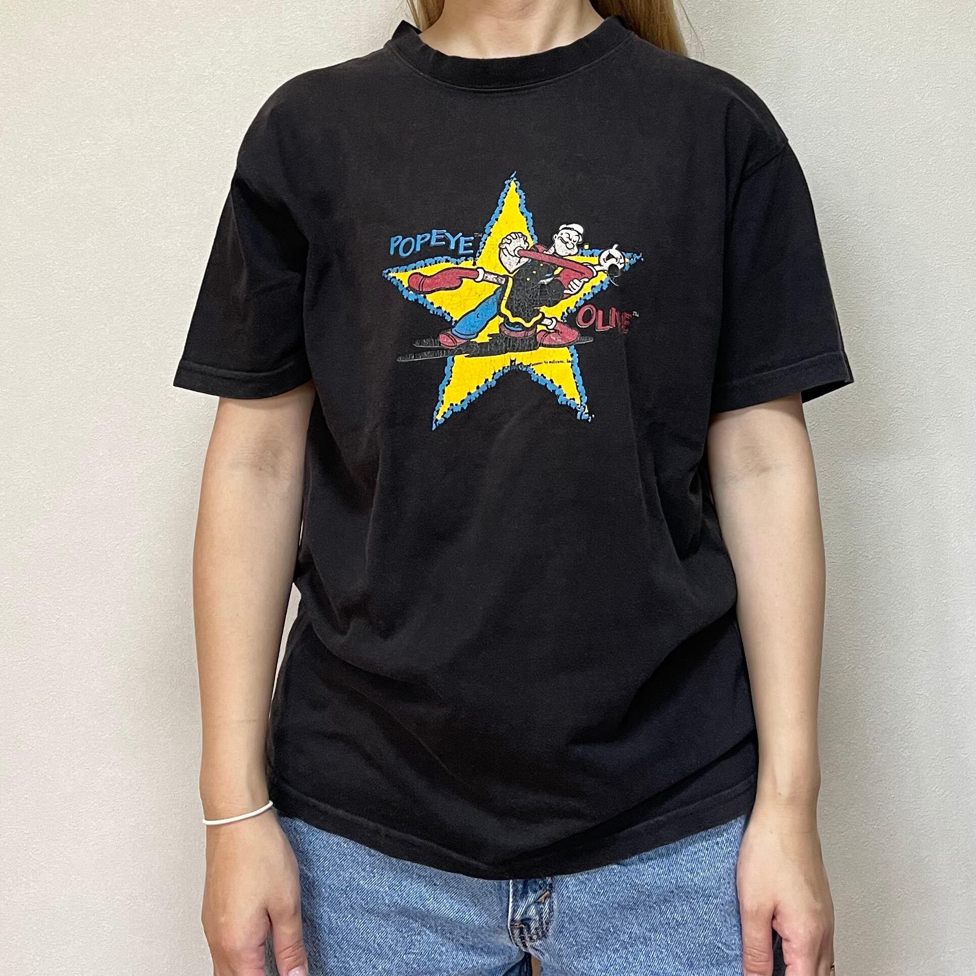 90's POPEYE OLIVE Tシャツ 古着 ポパイ オリーブ アニメ ブラック 黒 キャラクター