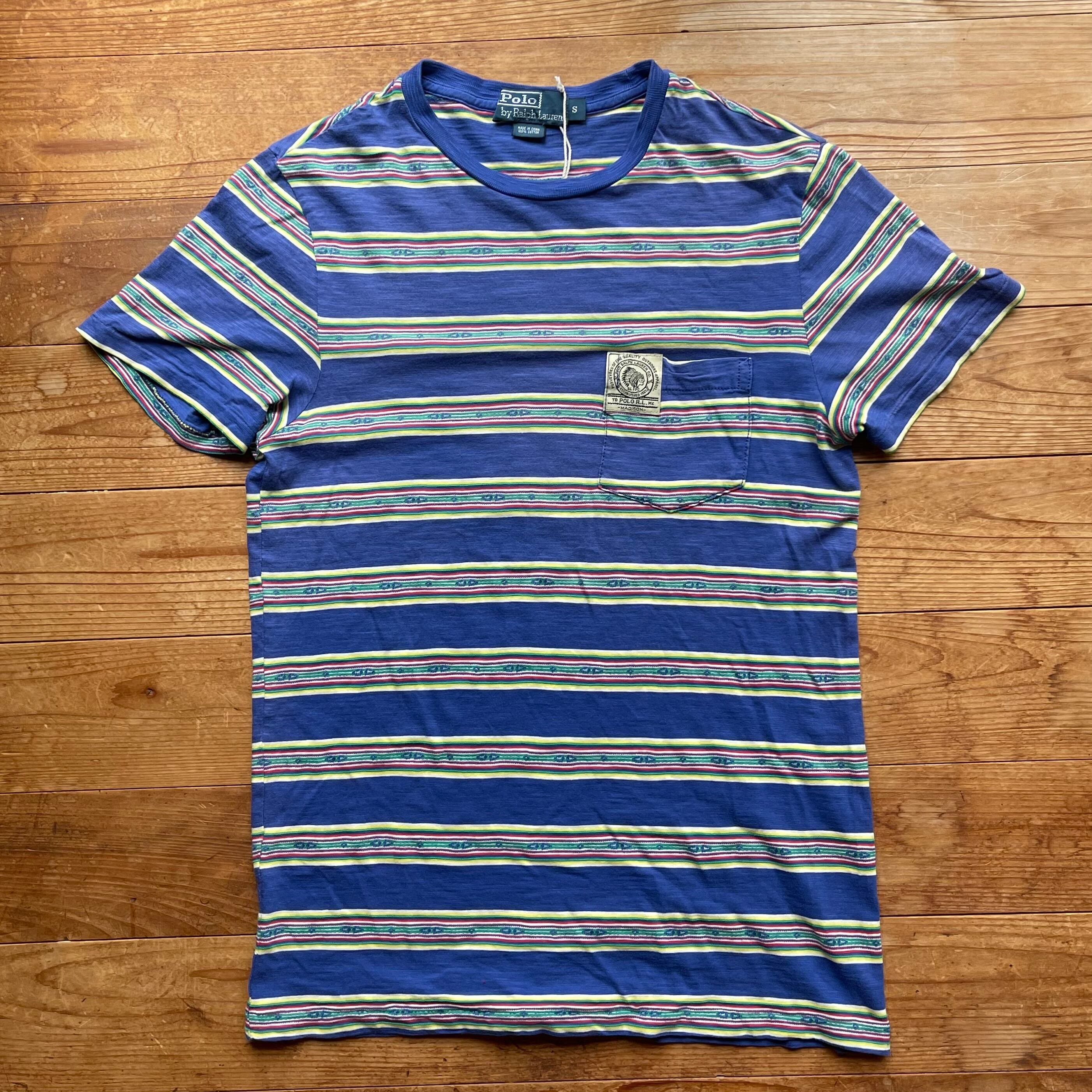 90's Polo by Ralph Lauren ボーダーポケT 古着 ポロバイラルフローレン ブルー