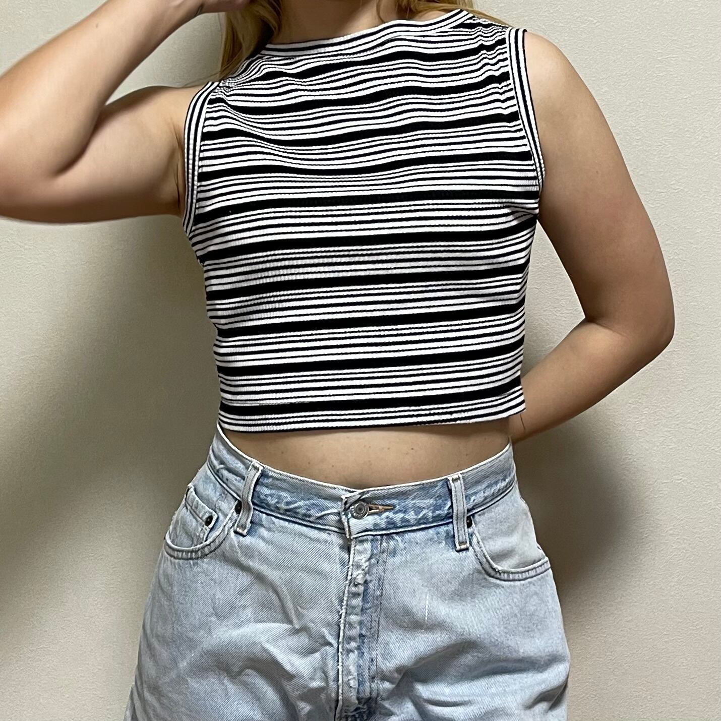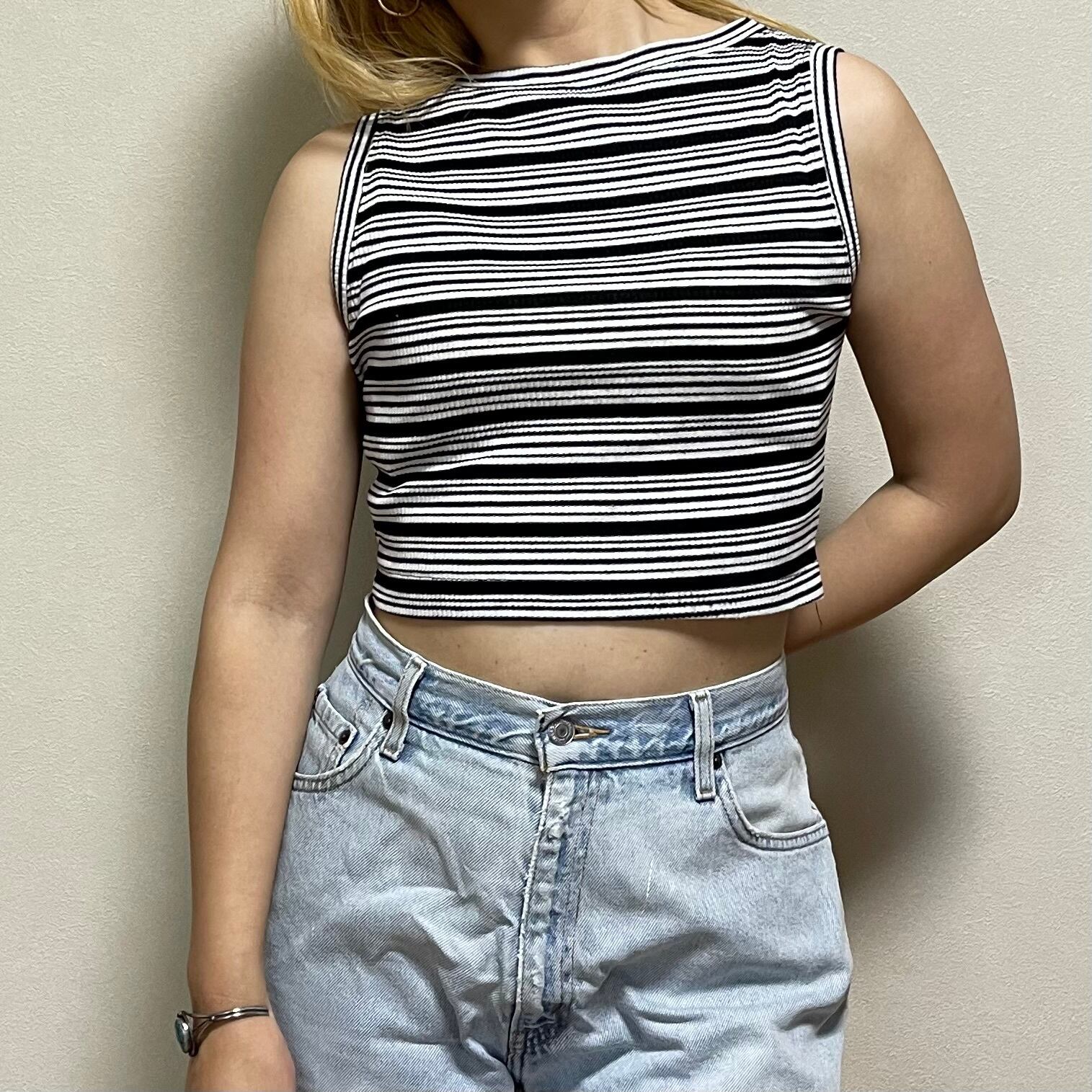 90's weavers boarder rib sleeveless 古着 ボーダーリブノースリーブ レディース ブラック 黒
