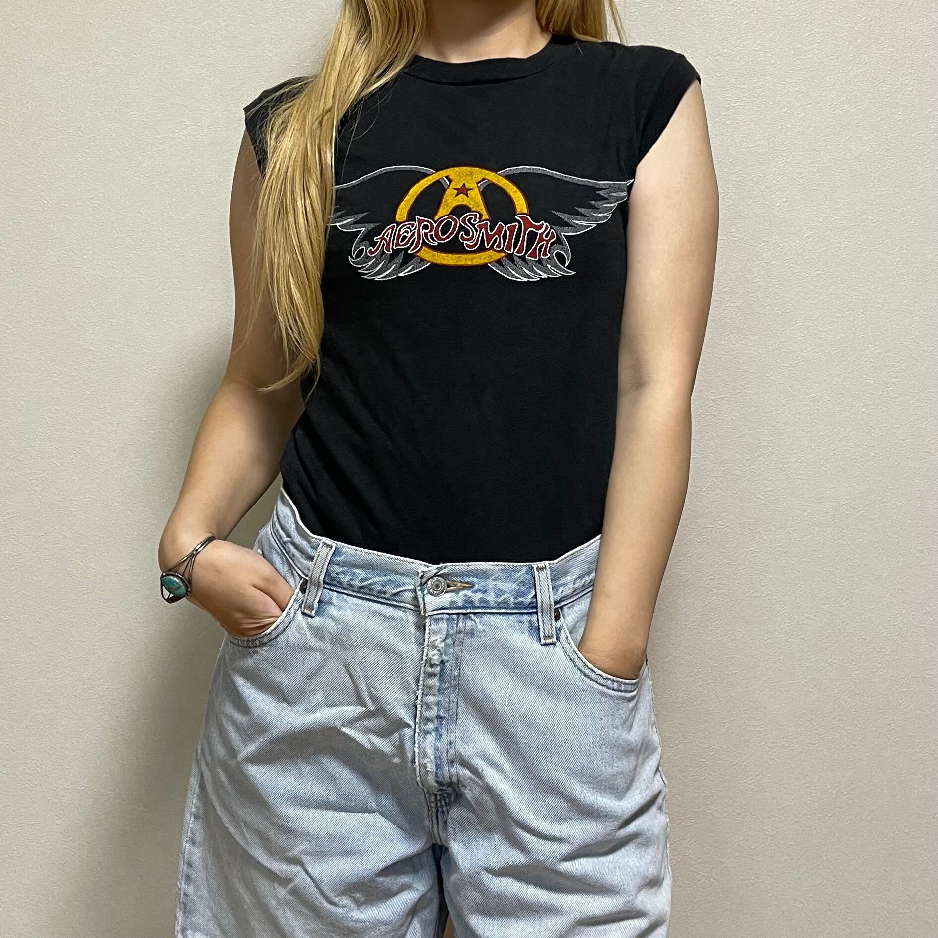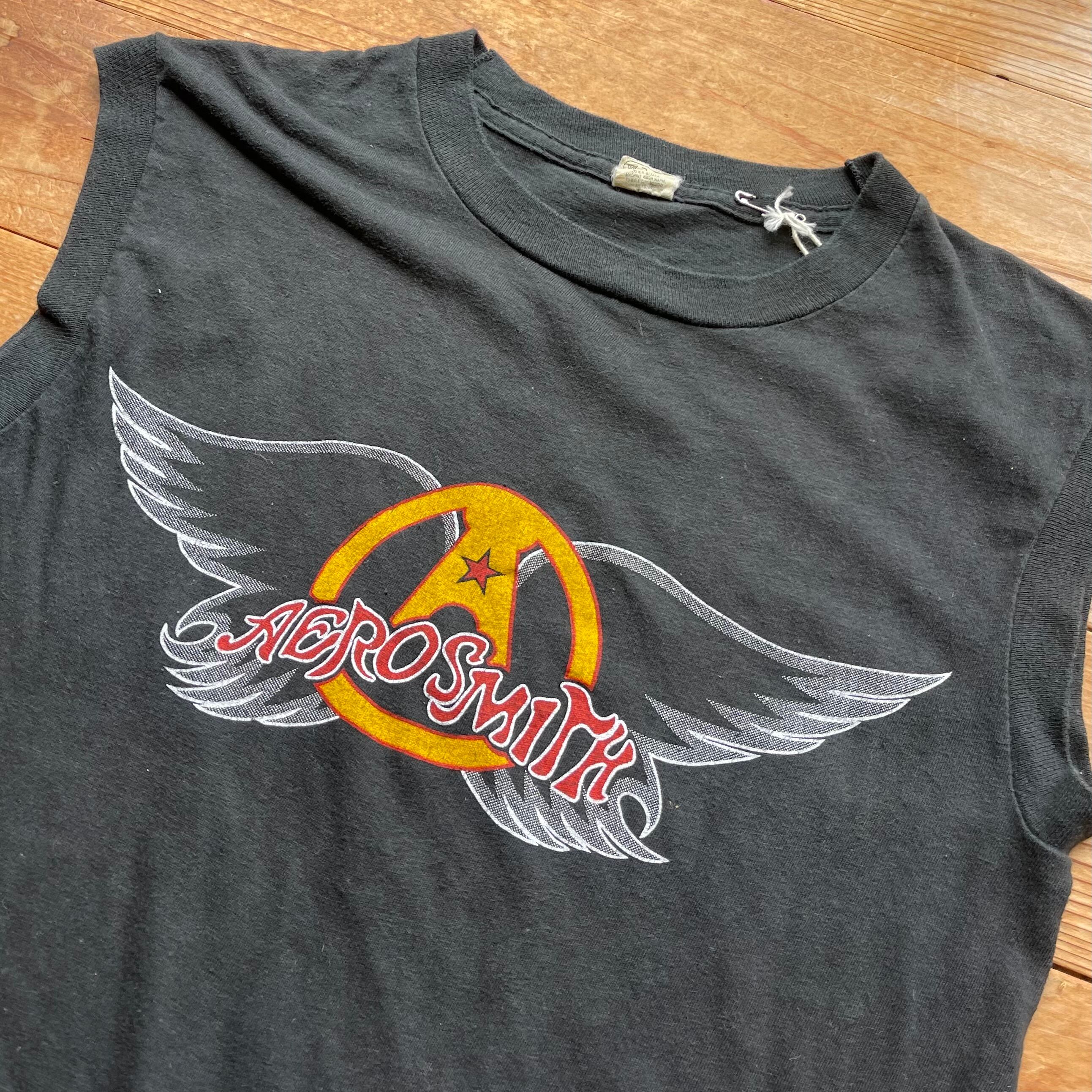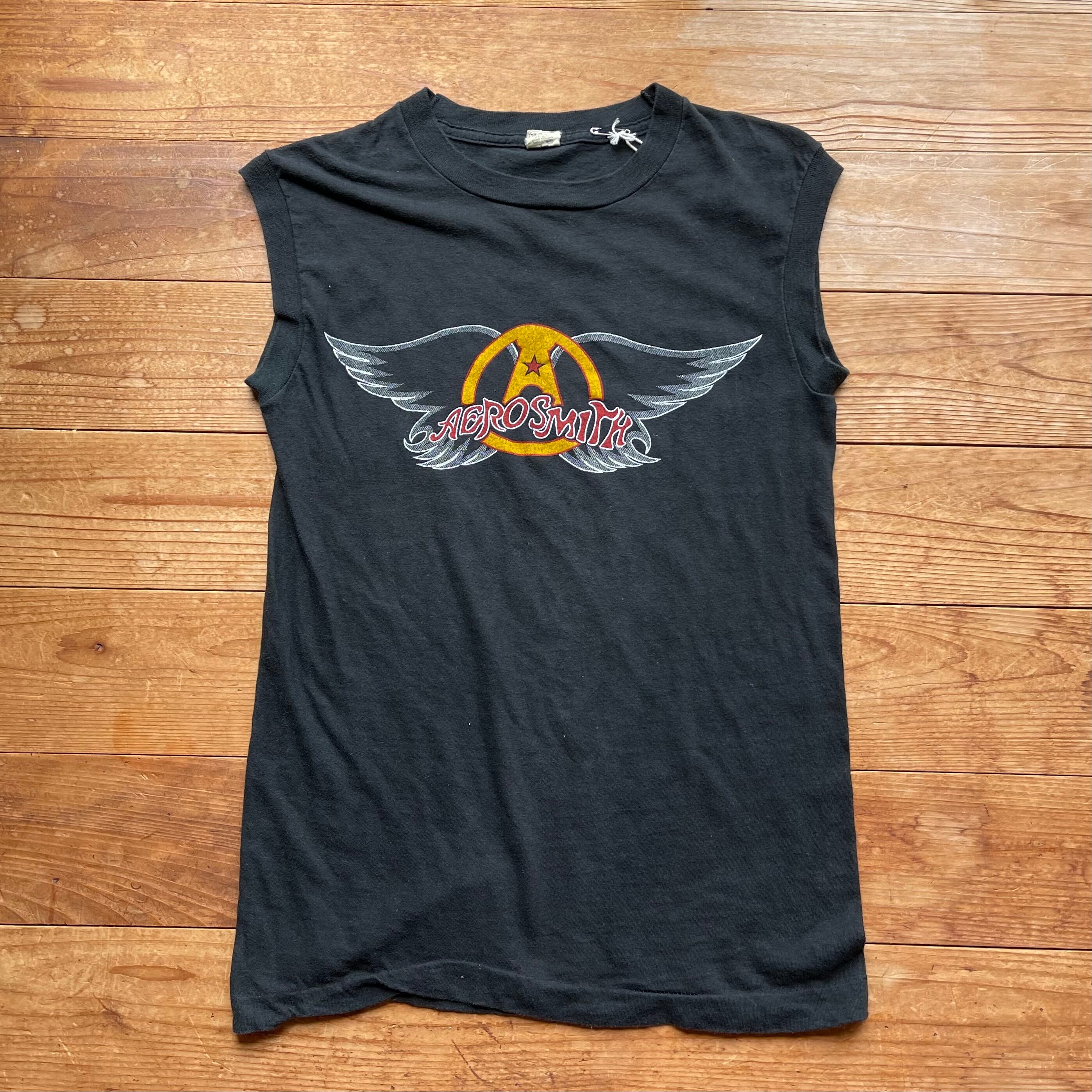 80's AEROSMITH Back in the saddle tour ノースリーブ 古着 エアロスミス バンドT ブラック USA製 黒
