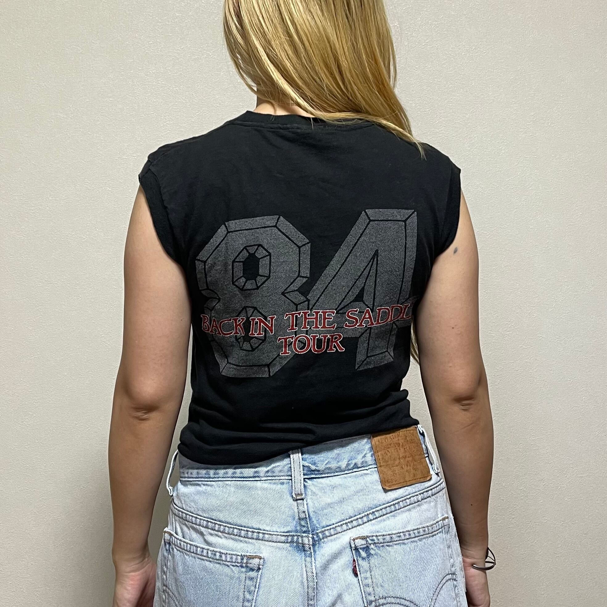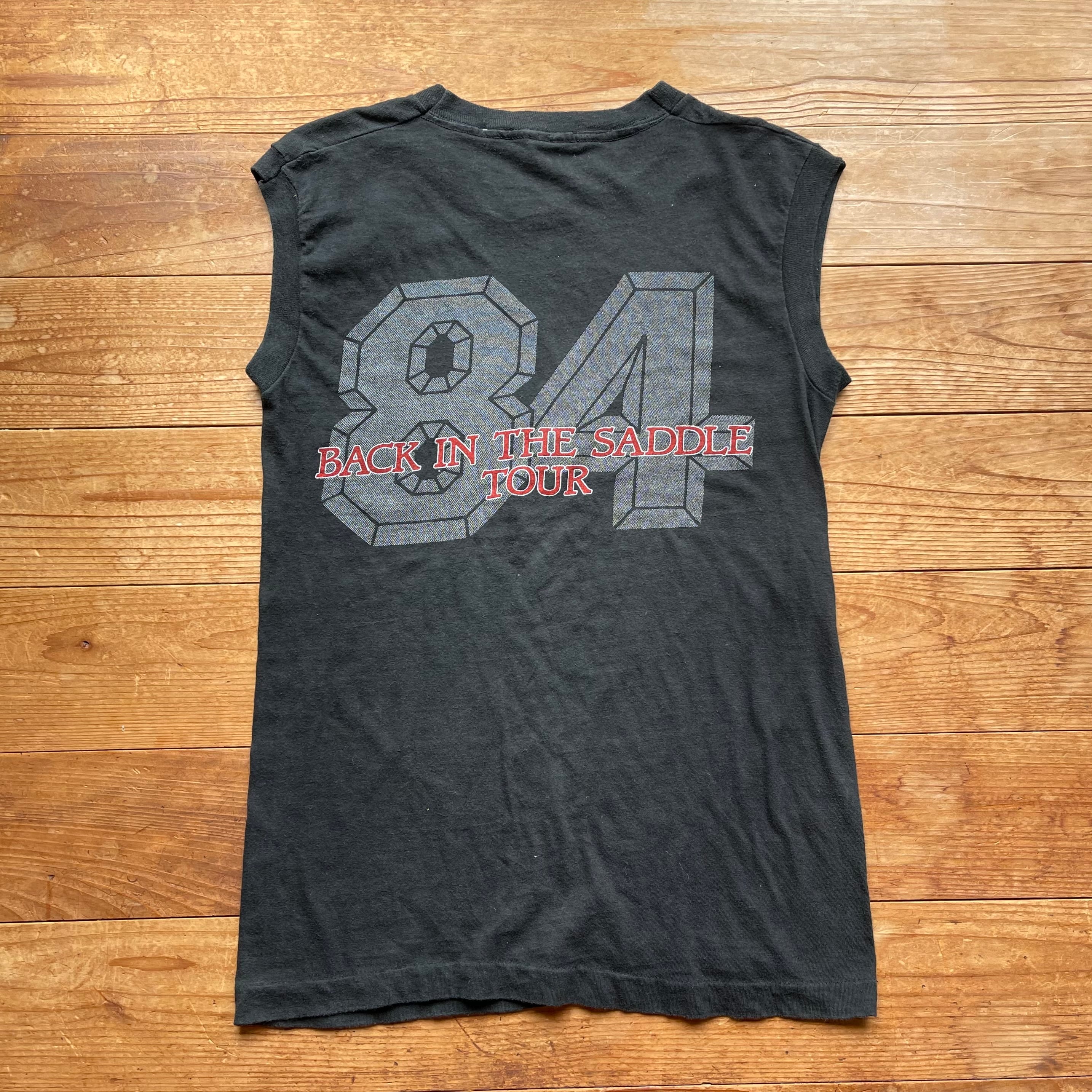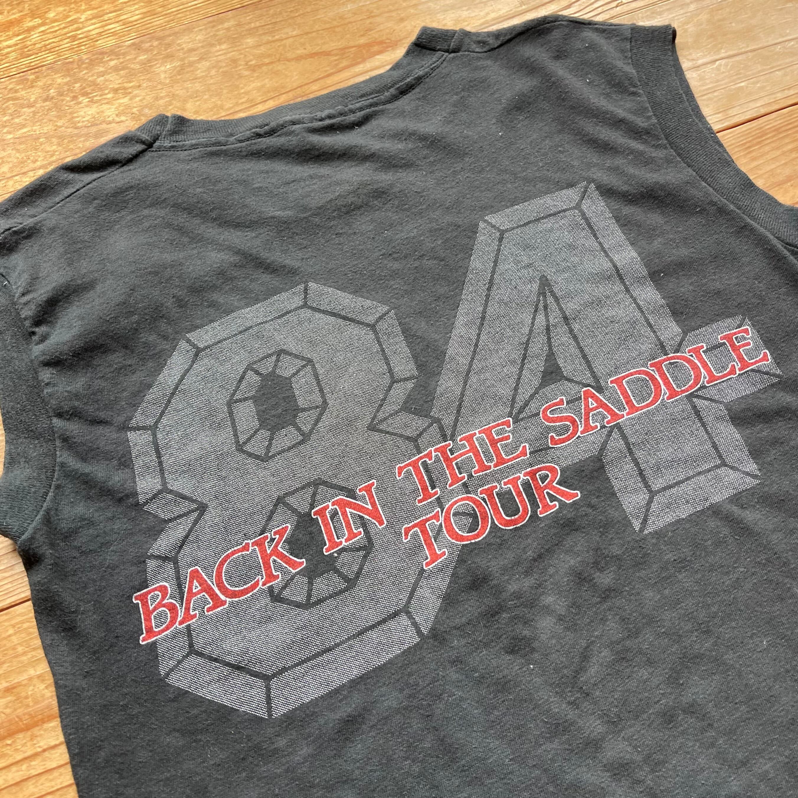 80's AEROSMITH Back in the saddle tour ノースリーブ 古着 エアロスミス バンドT ブラック USA製 黒