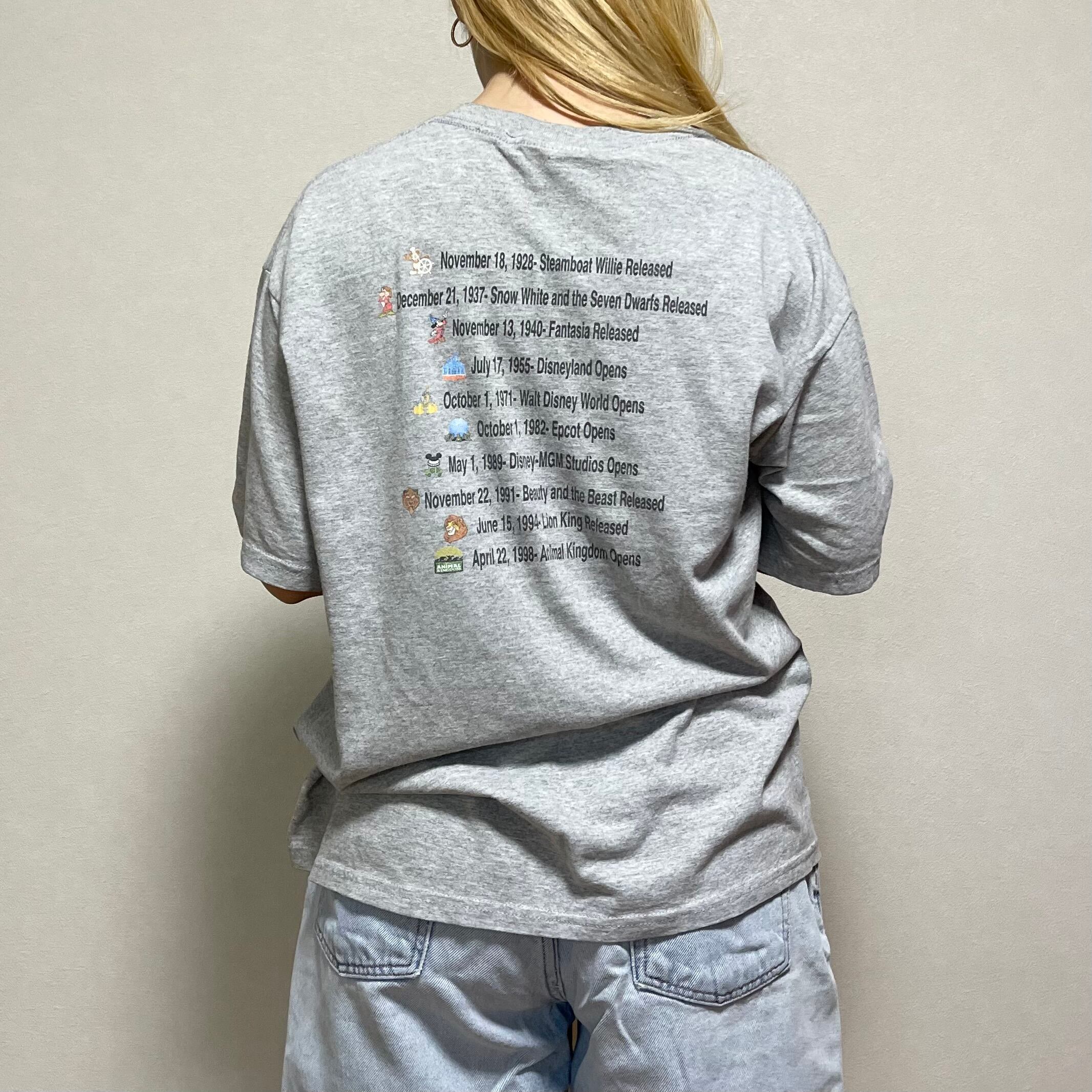 00's Walt Disney World プリントT ディズニー 古着 100 years of magic. フェード グレー M