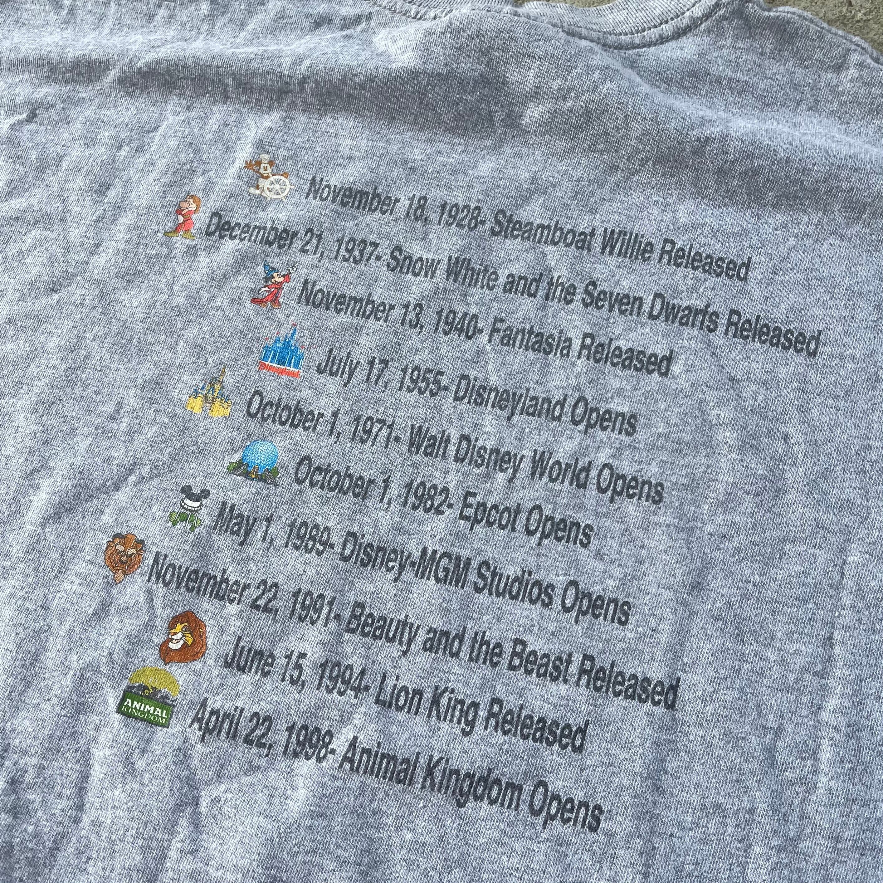 00's Walt Disney World プリントT ディズニー 古着 100 years of magic グレー L