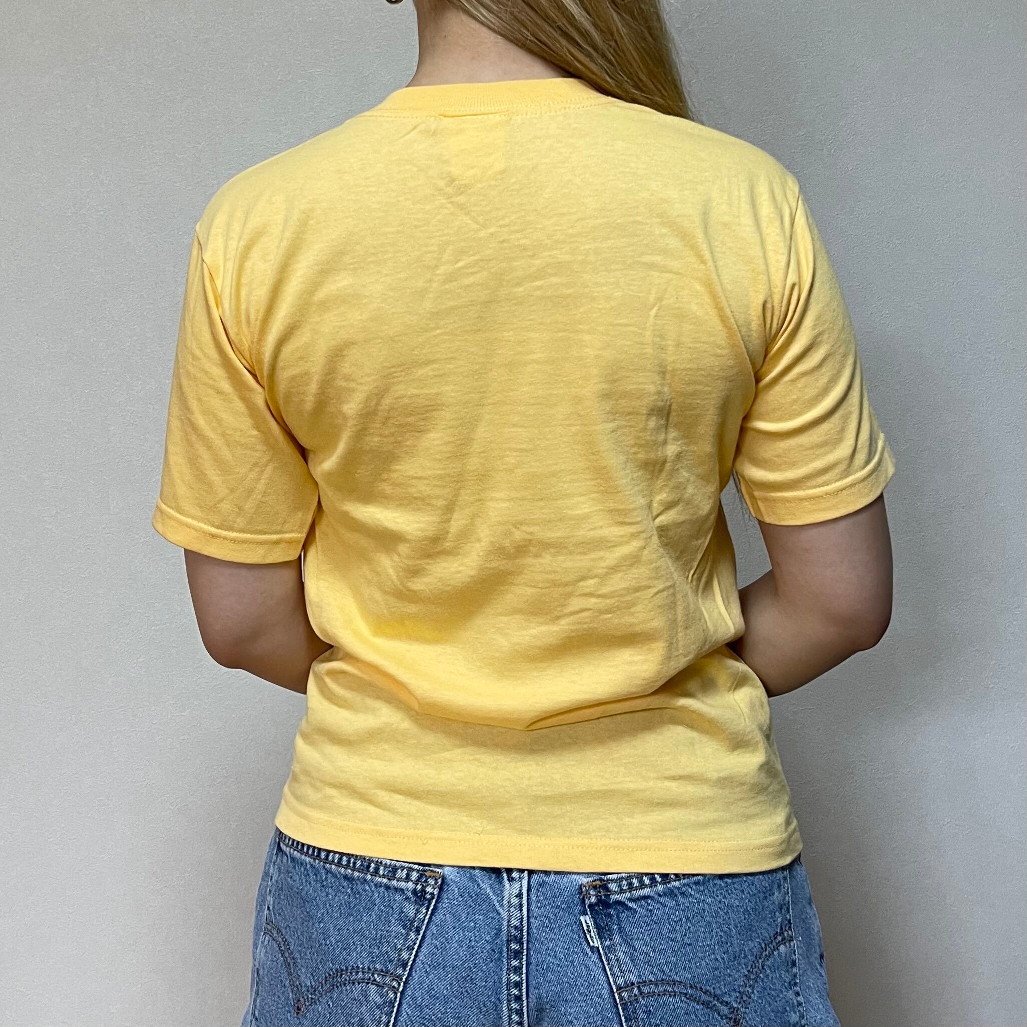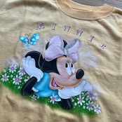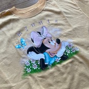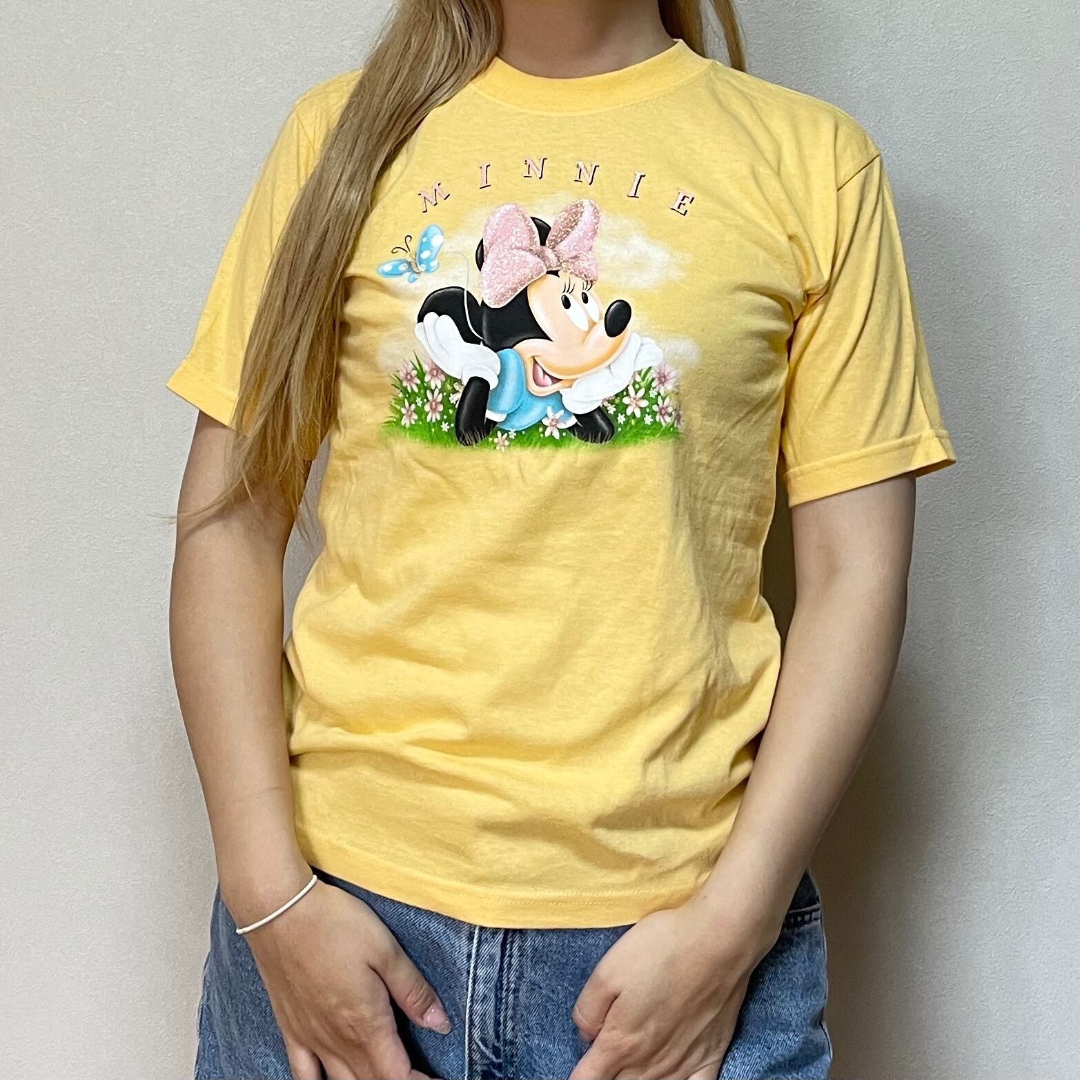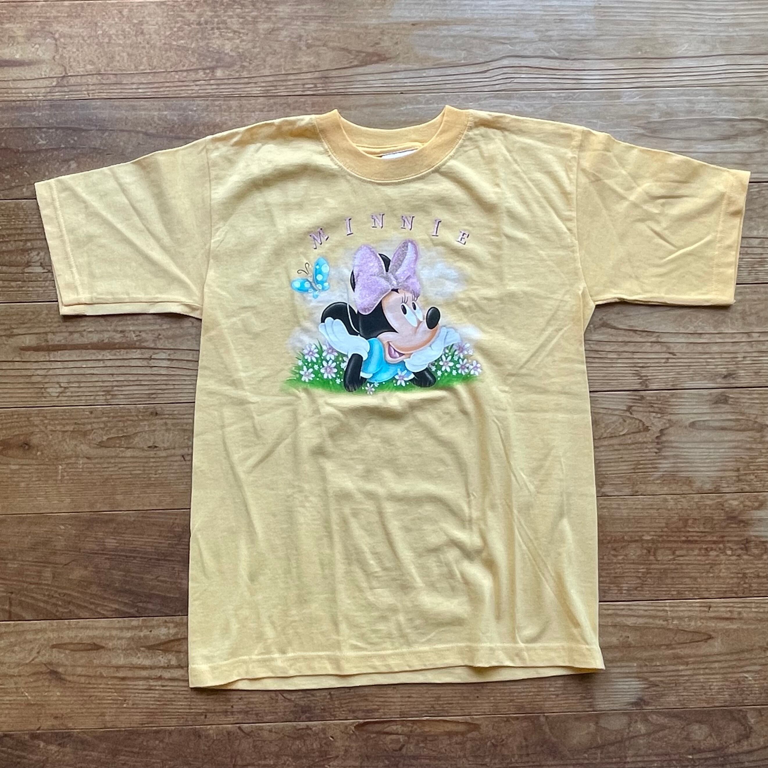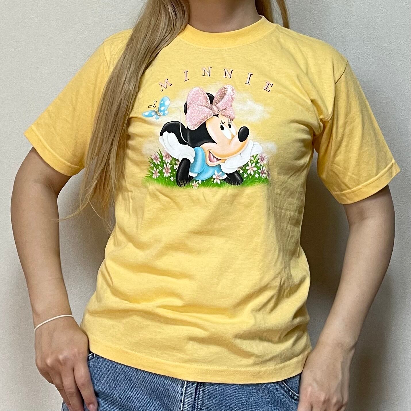90's ~ Disney Minnie ラメプリントTシャツ 古着 ディズニー ミニー ライトイエロー レディースS