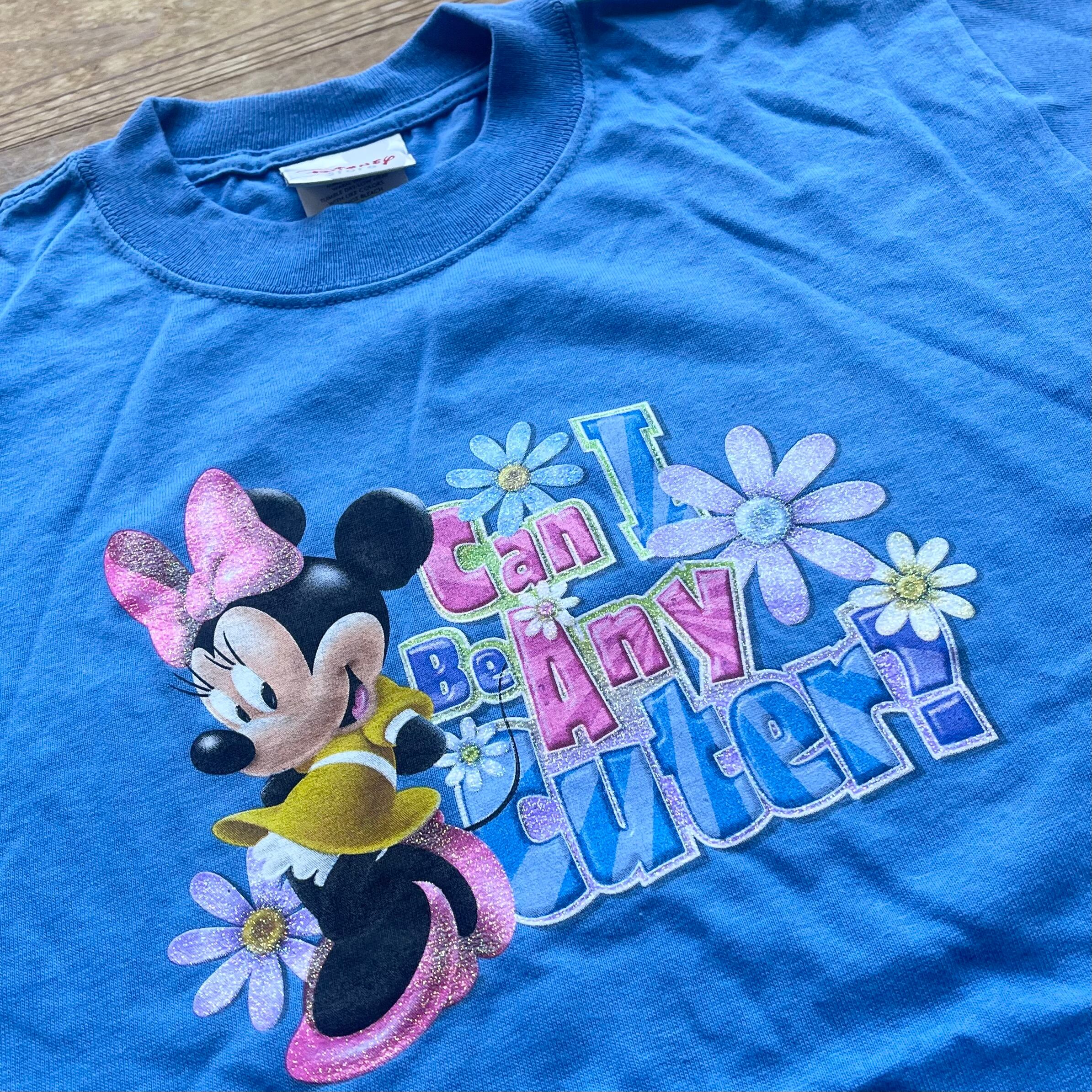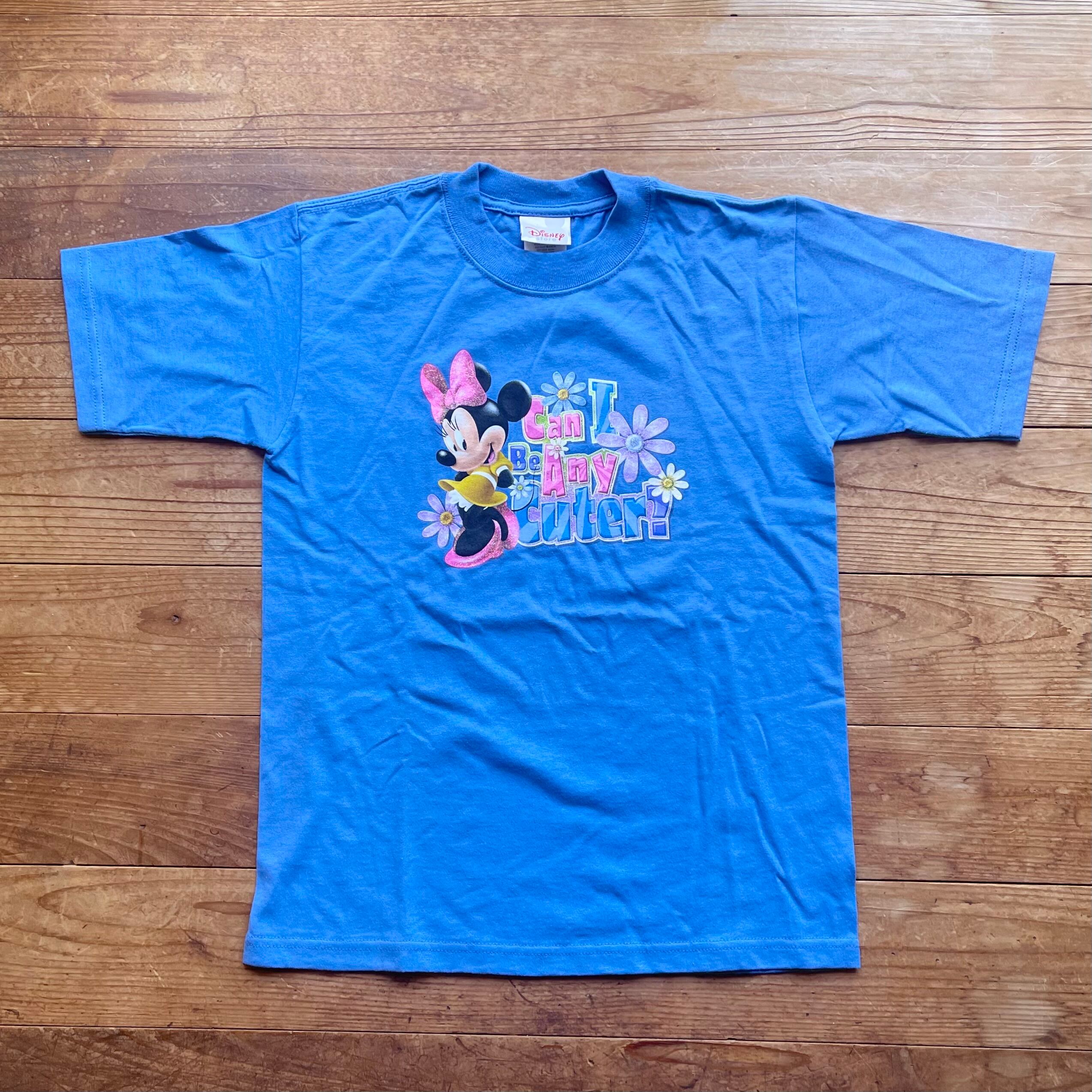 90~00's Disney Store Minnie ラメプリントT 古着 ミニー ディズニー ブルー レディース S