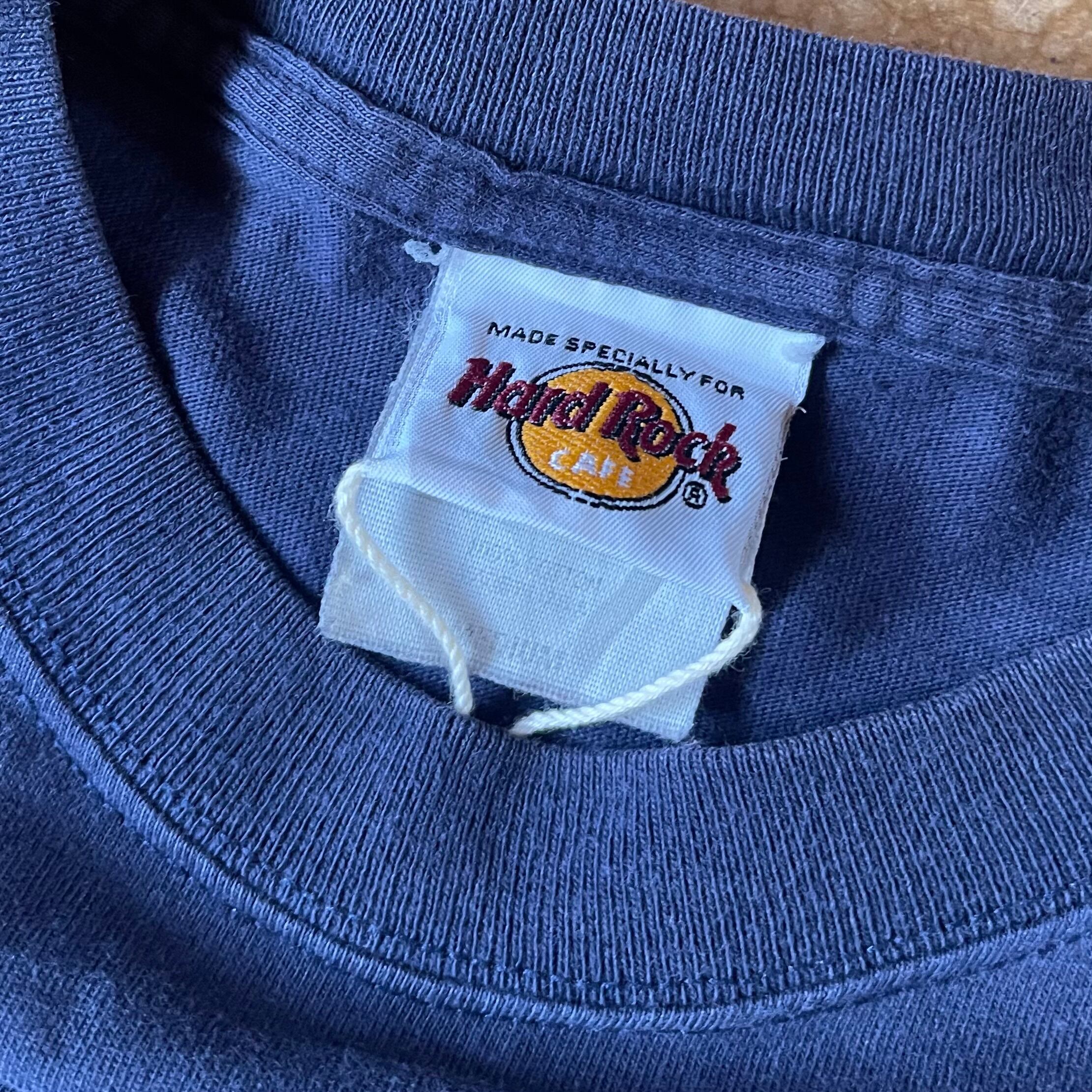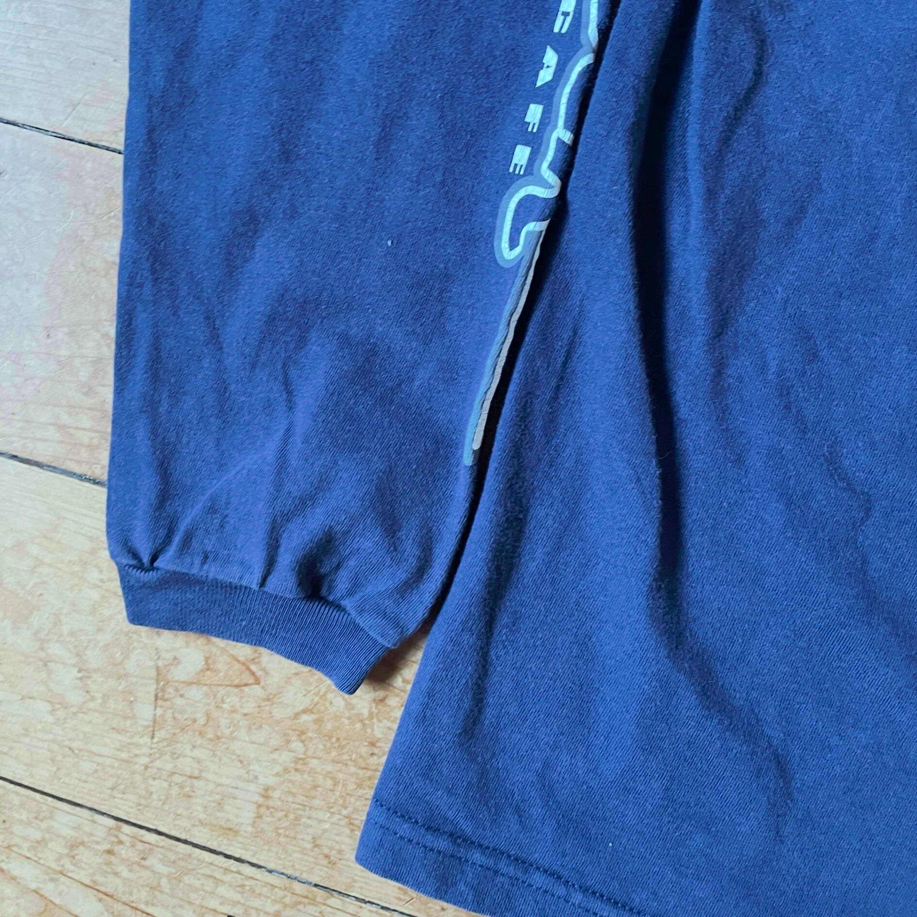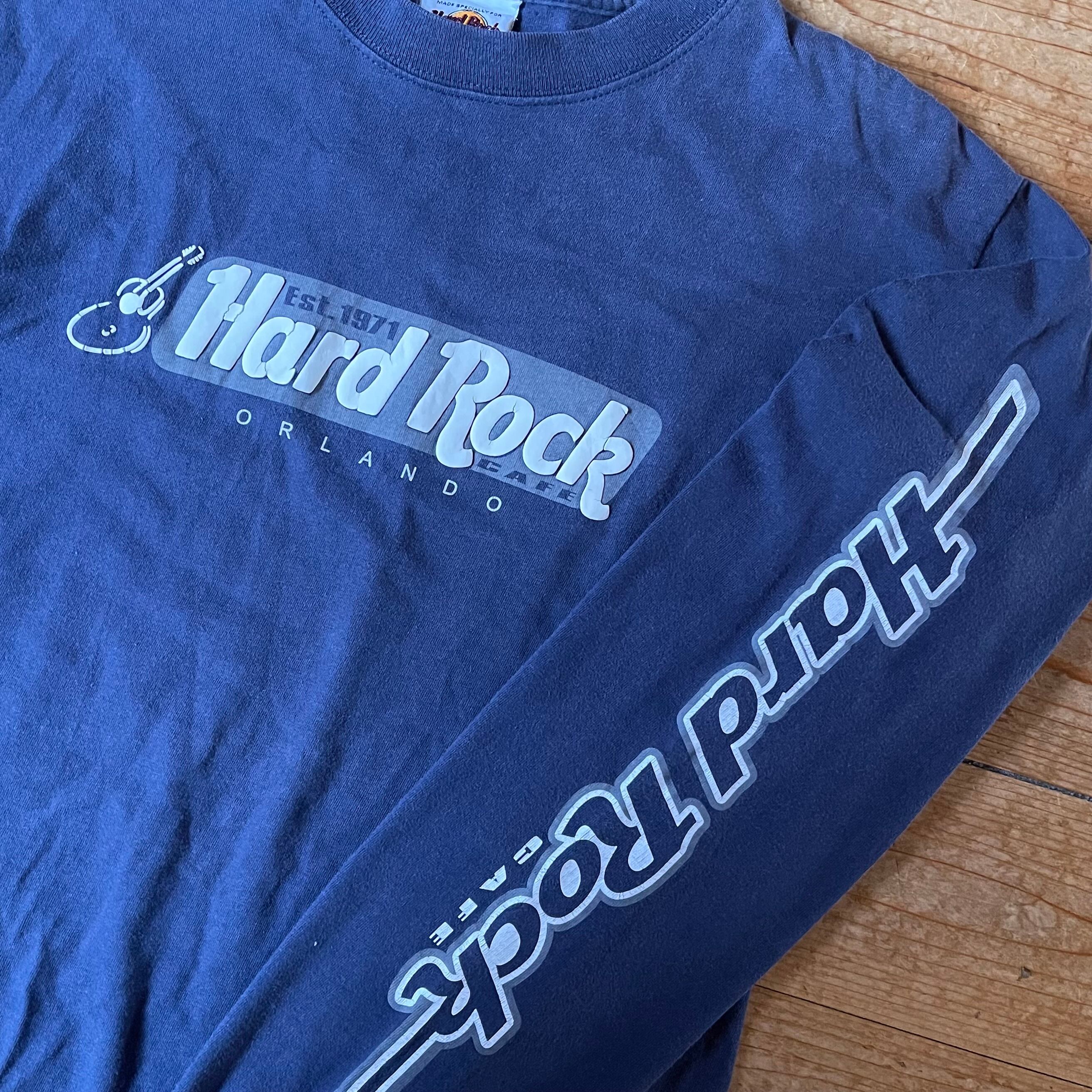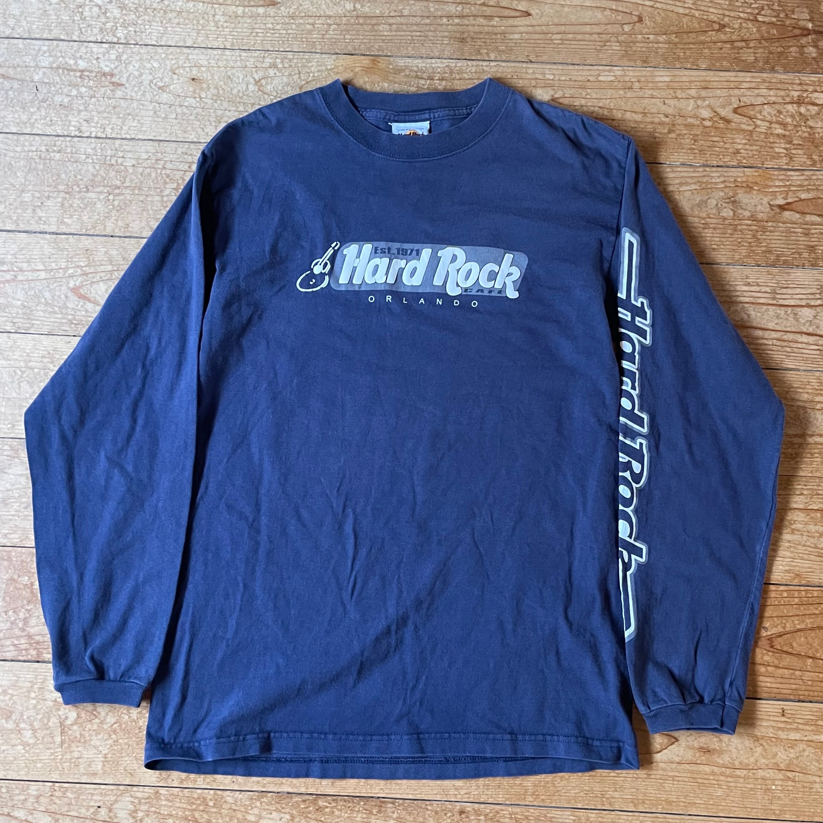 90's USA製 Hard Rock CAFE Orlando 袖プリントロンT 古着 ハードロックカフェ 長袖Tシャツ ネイビー 紺