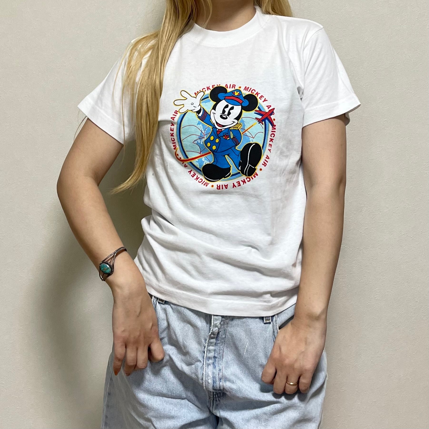 90's dead stock Mickey's World pilot mickey Tシャツ 古着 ミッキー パイロット 飛行機 Disney ディズニー ホワイト 白 レディース