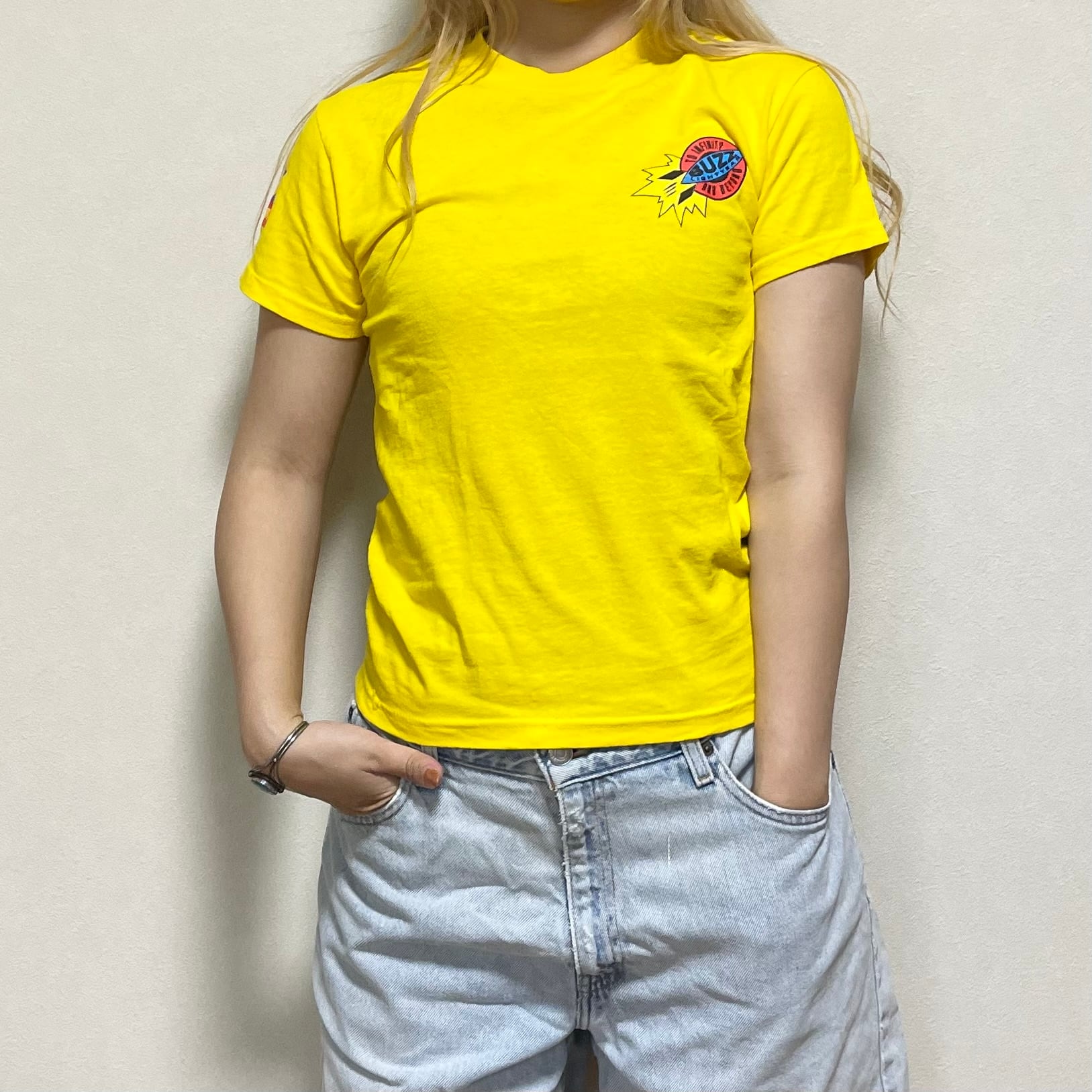 90's USA製 PIXAR TOY STORY BUZZ LIGHTYEAR Tシャツ 古着 イエロー 黄色 トイストーリー バズ レディース S