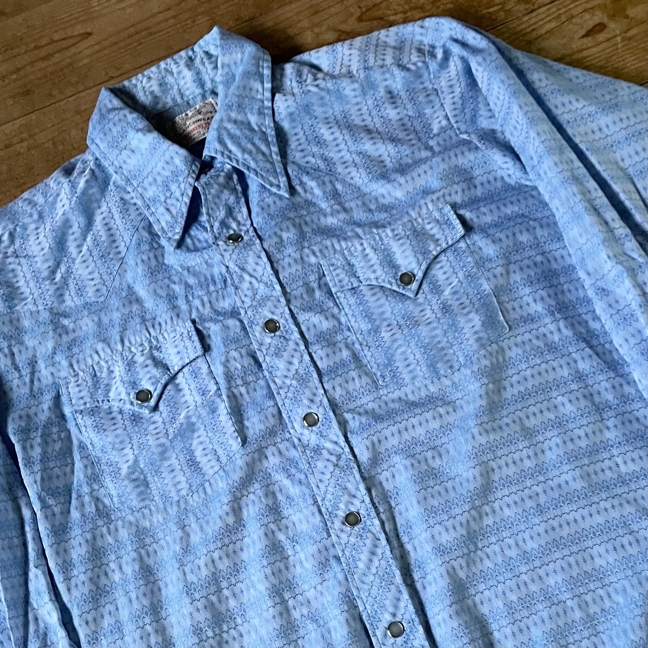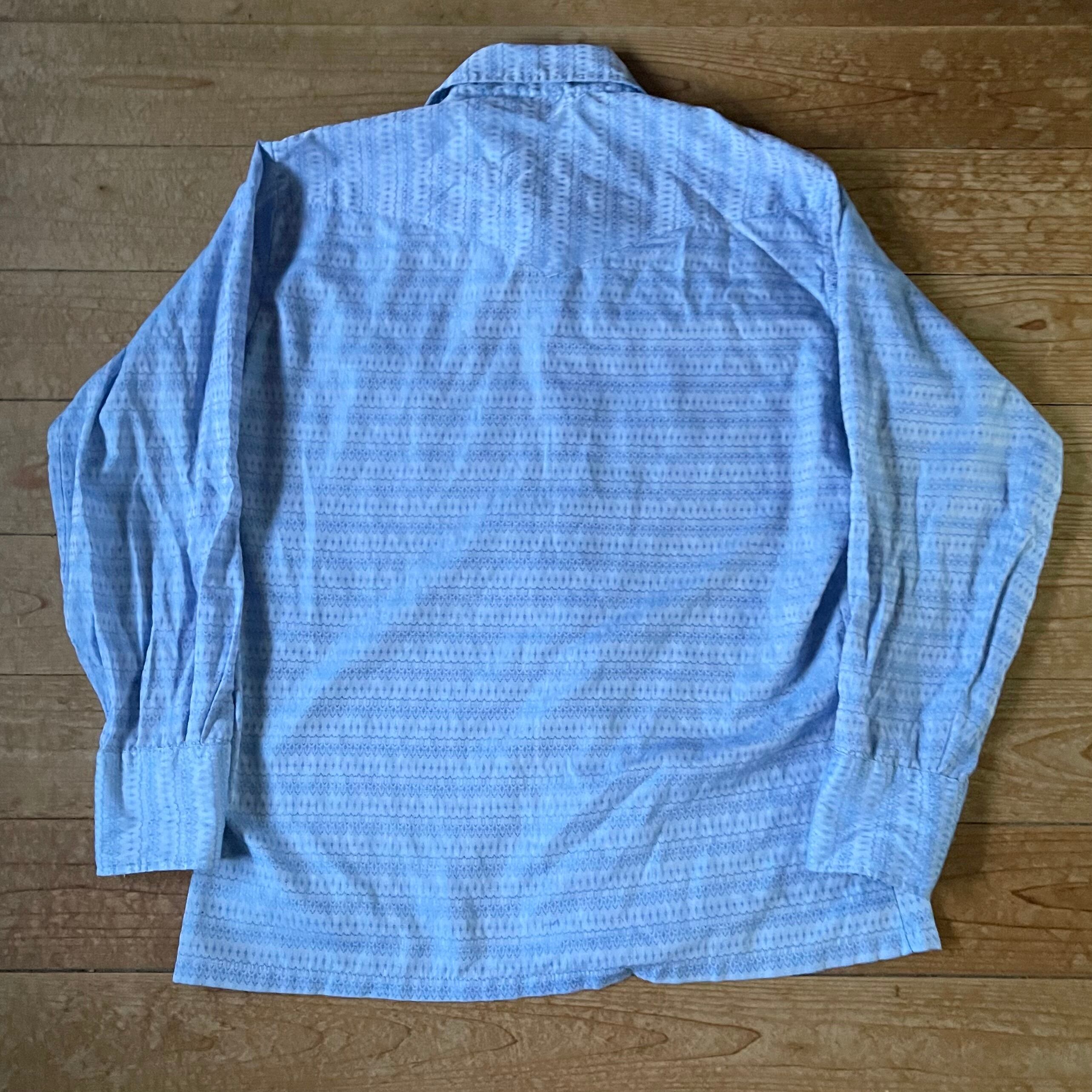 70's vintage westeren shirts. H BAR C ウエスタンシャツ 総柄 古着 長袖 ライトブルー
