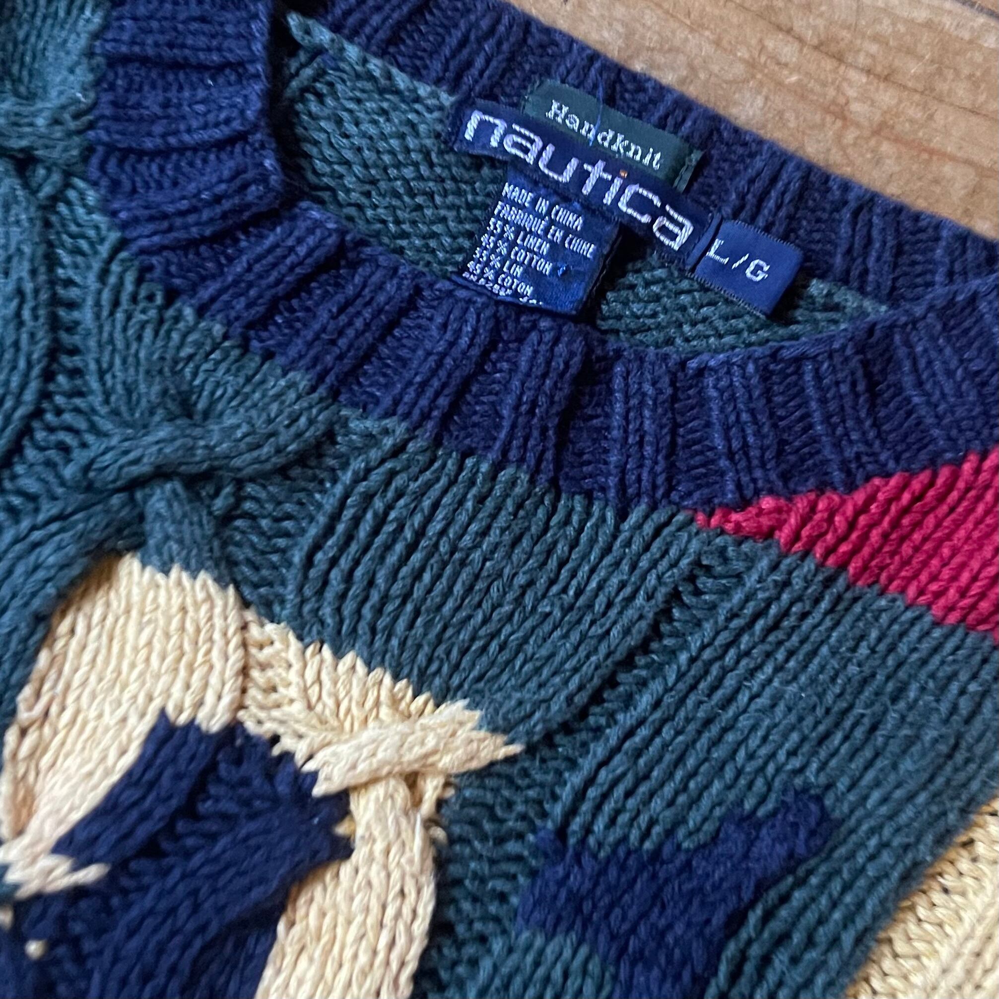 90's NAUTICA All-over pattern cotton hand knit. ノーティカ コットンハンドニット 総柄 古着 メンズ レディース 麻混