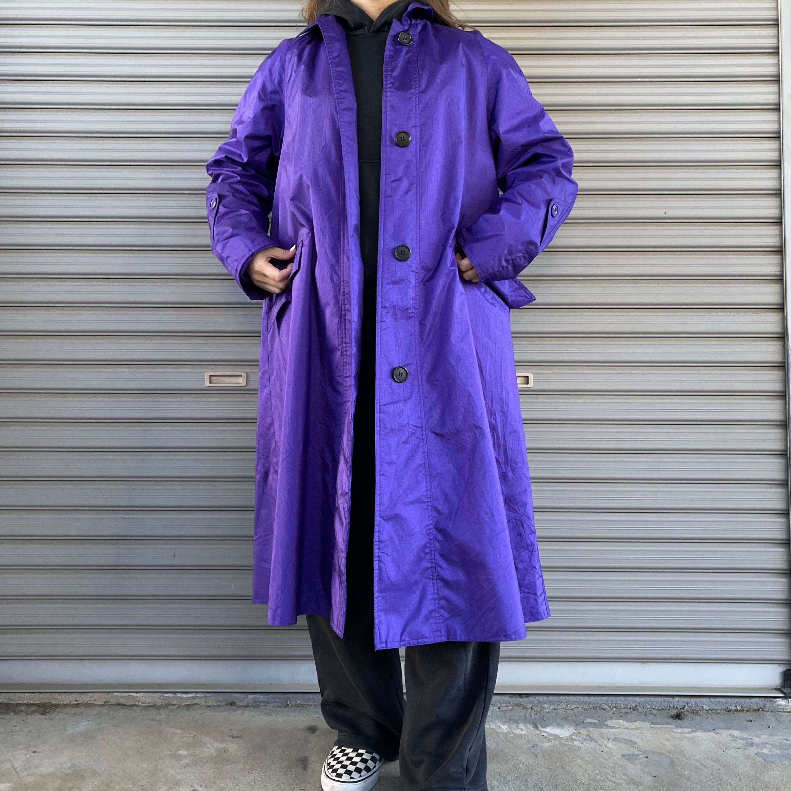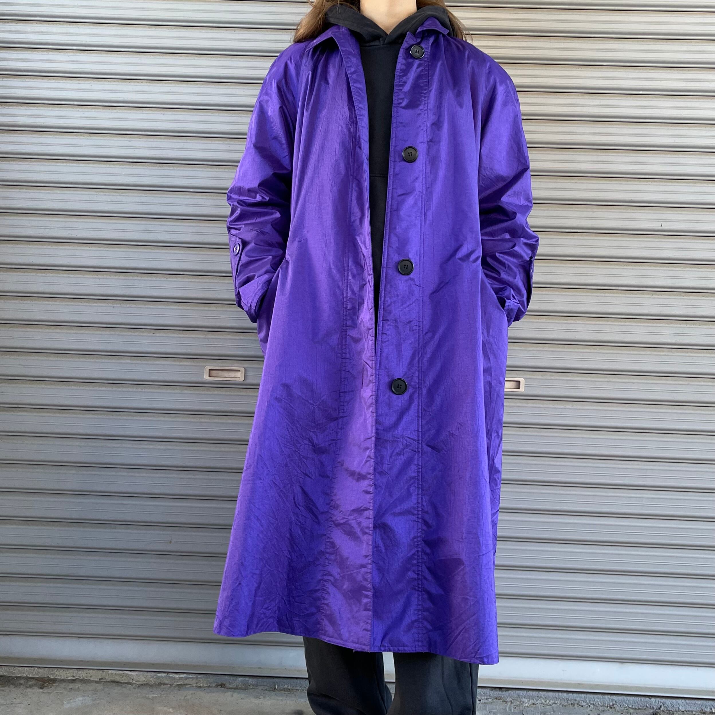 90's London Towne by LONDON FOG purple long length soutien collar coat. 古着 ナイロンステンカラーコート ロング丈 紫 パープル 裏地ペイズリー ロンドンフォグ