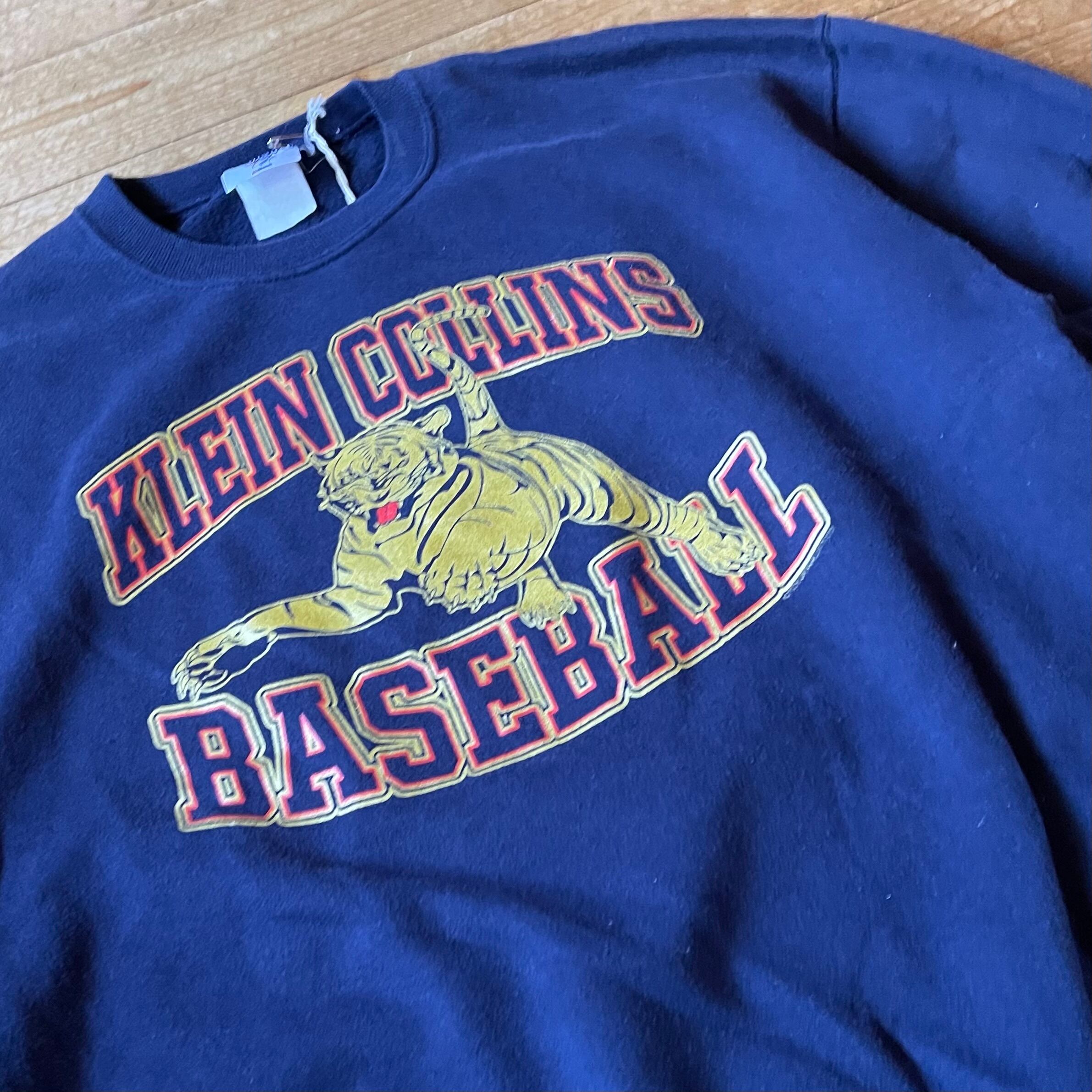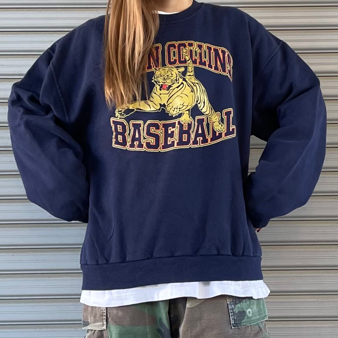 90's JERZEES KLEIN COLLINS BASEBALL Tiger print sweat. USA 古着 スウェット タイガー 虎 ネイビー メンズ レディース