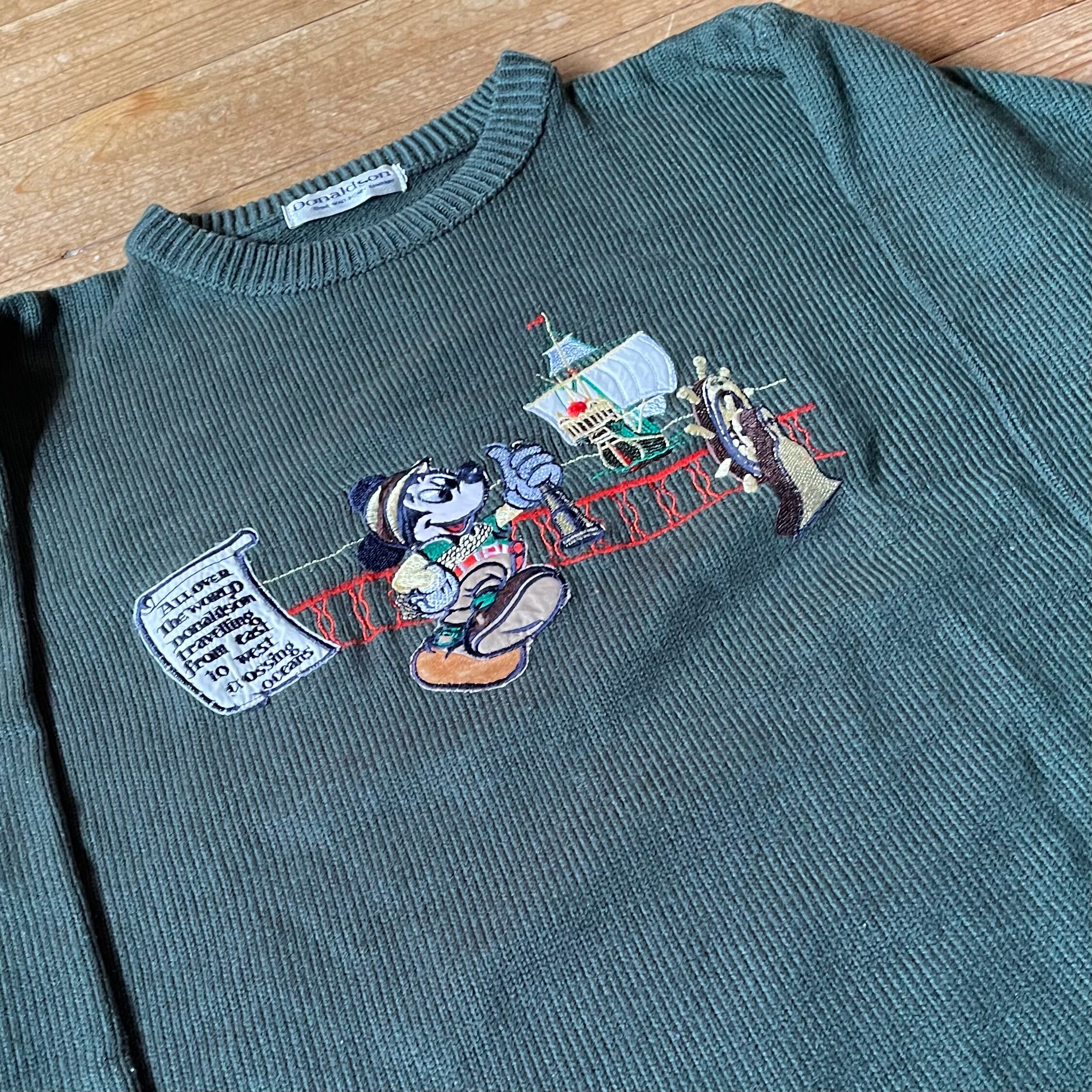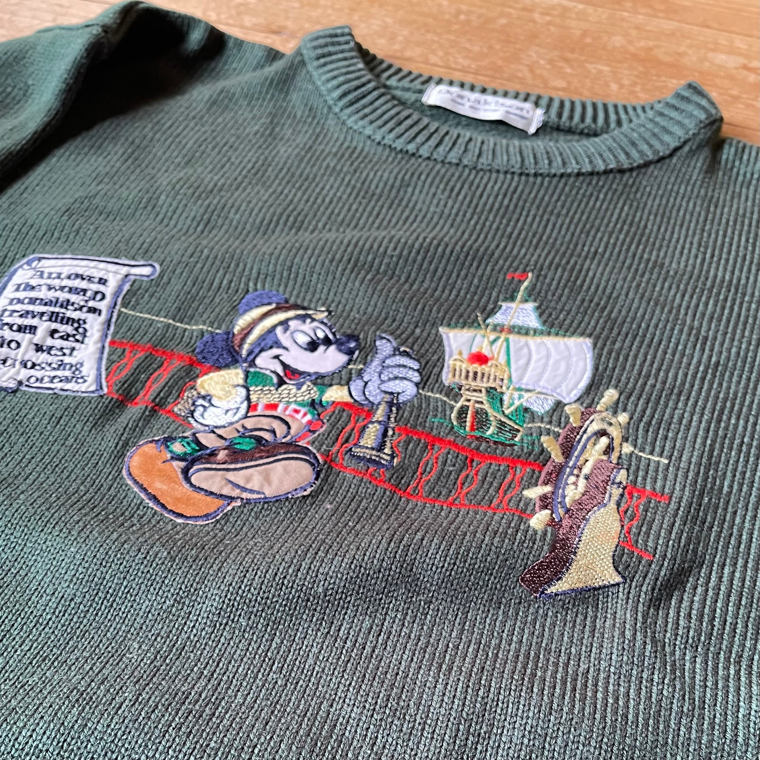 90's Disney Mickey Mouse embroidery knit. The Walt Disney company. Donaldson. ディズニー ミッキー 刺繍 ニット セーター グリーン 緑 古着 メンズ レディース