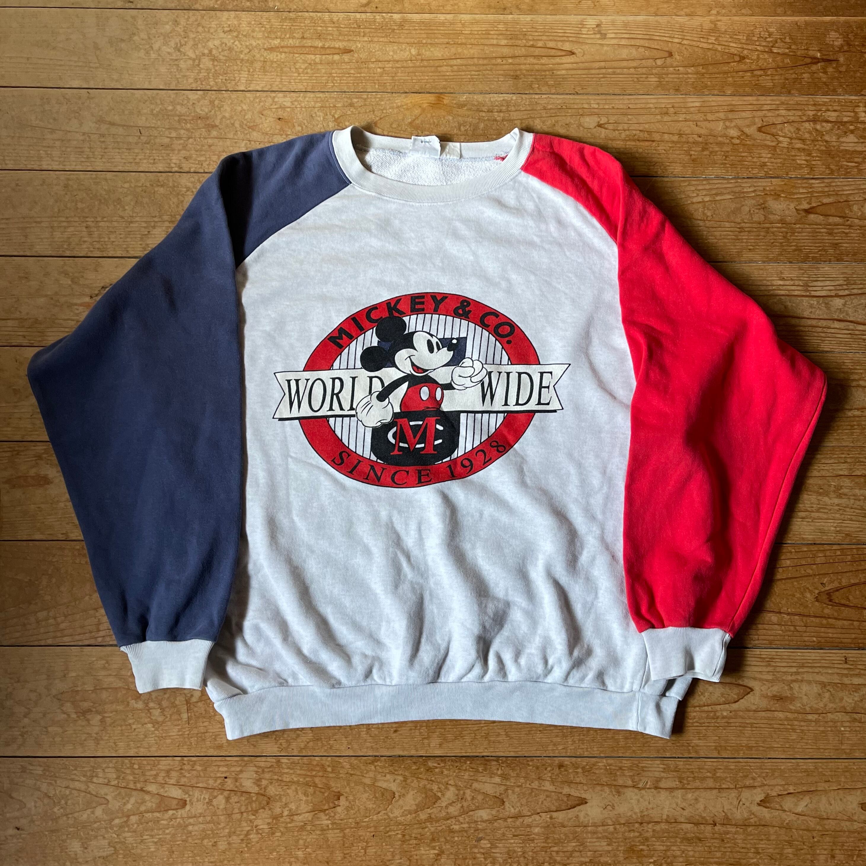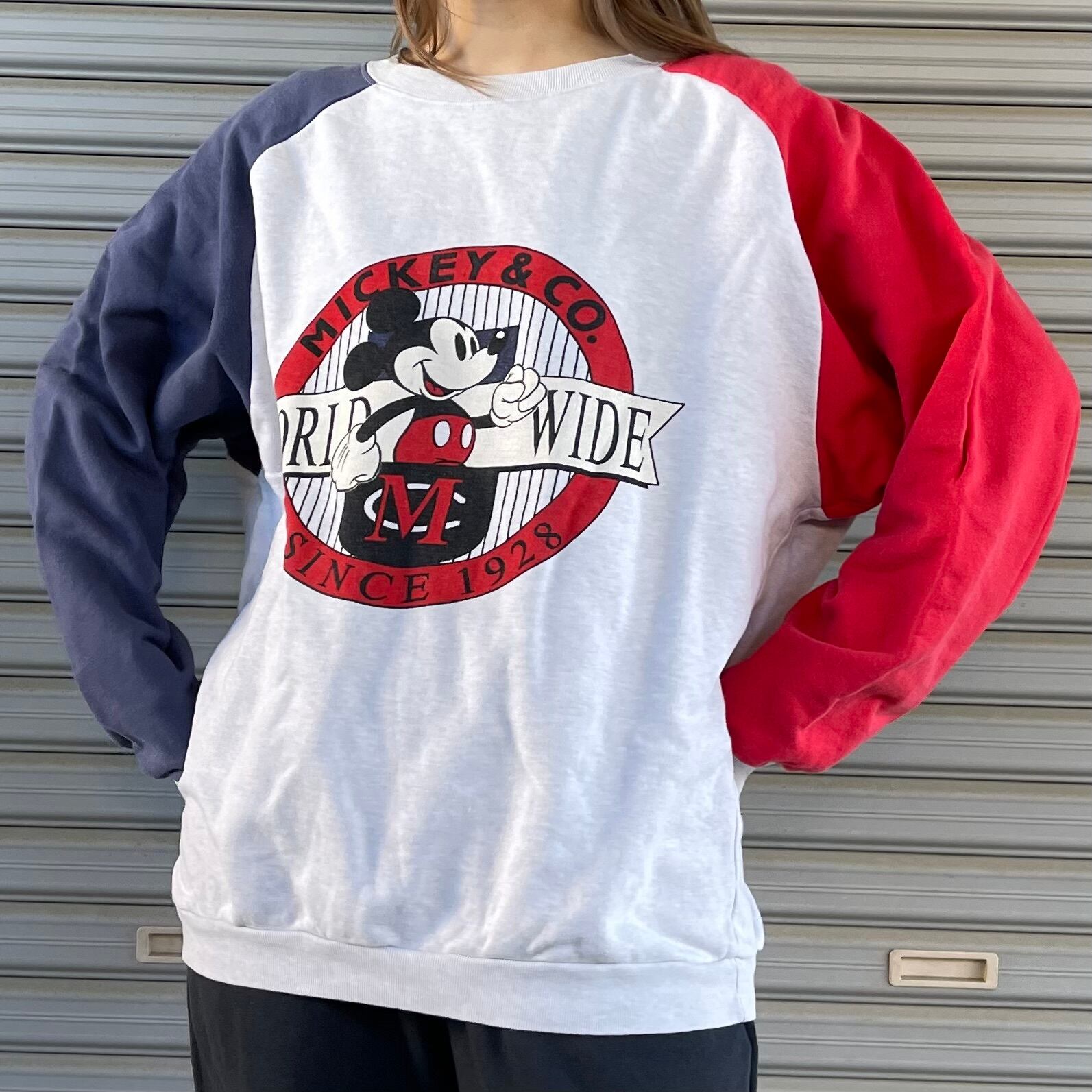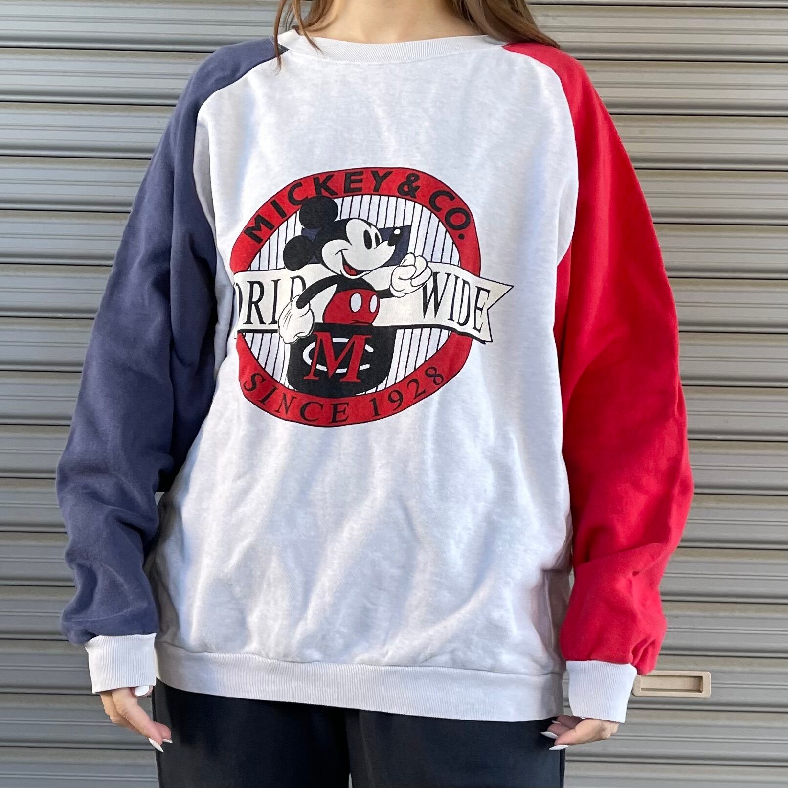 90's Disney Mickey & Co. crazy raglan sleeve sweat. ディズニー ミッキー スウェット USA 古着 メンズ レディース グレー L