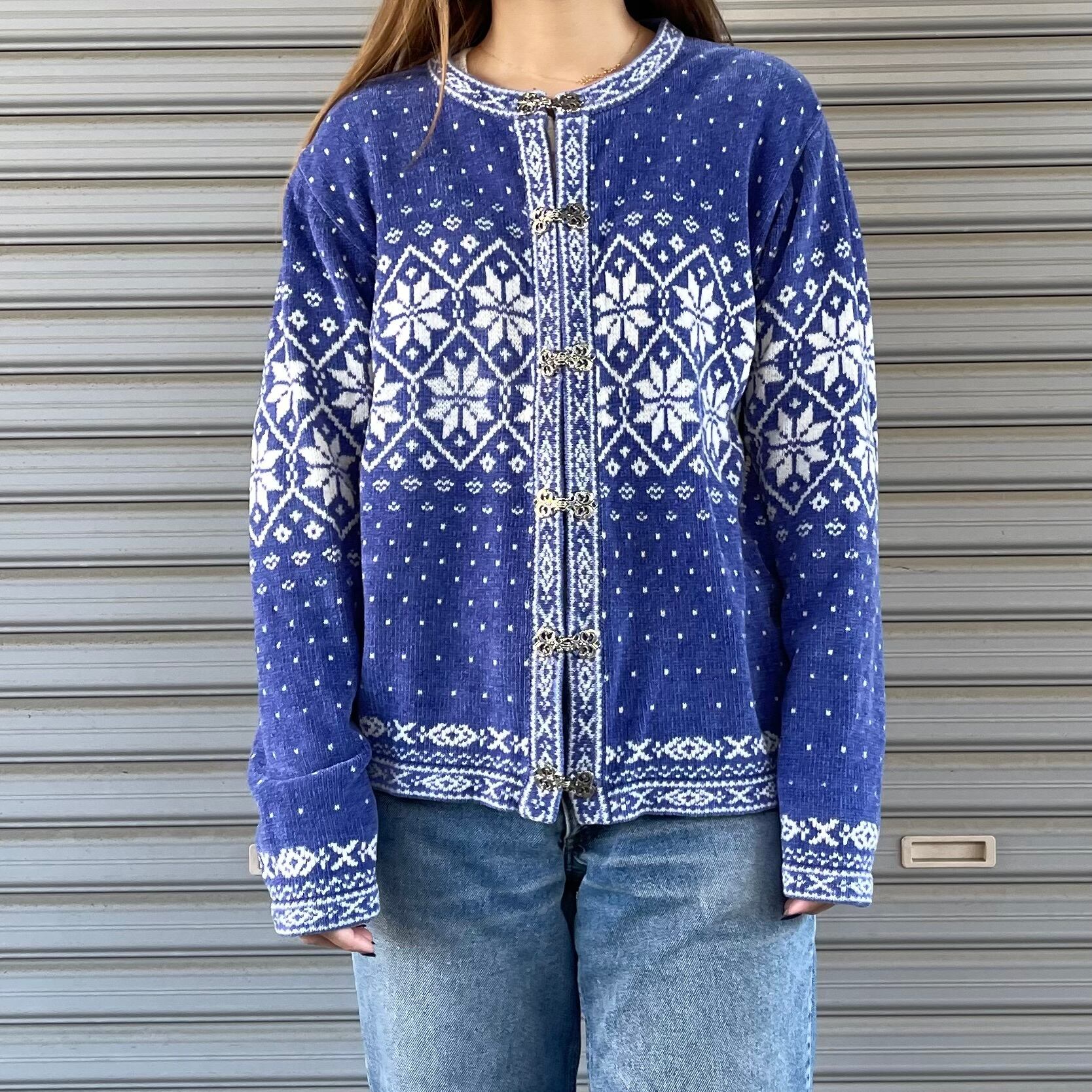00's craft & barrow Tyrolean Knit cardigan. 古着 チロリアン ニットカーディガン ブルー メタルボタン ノルディック 青