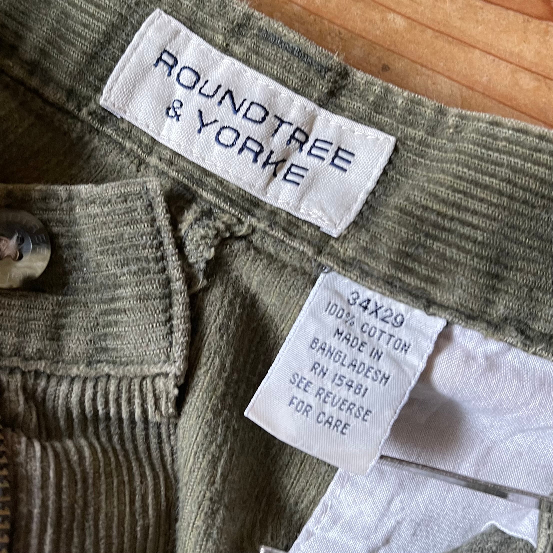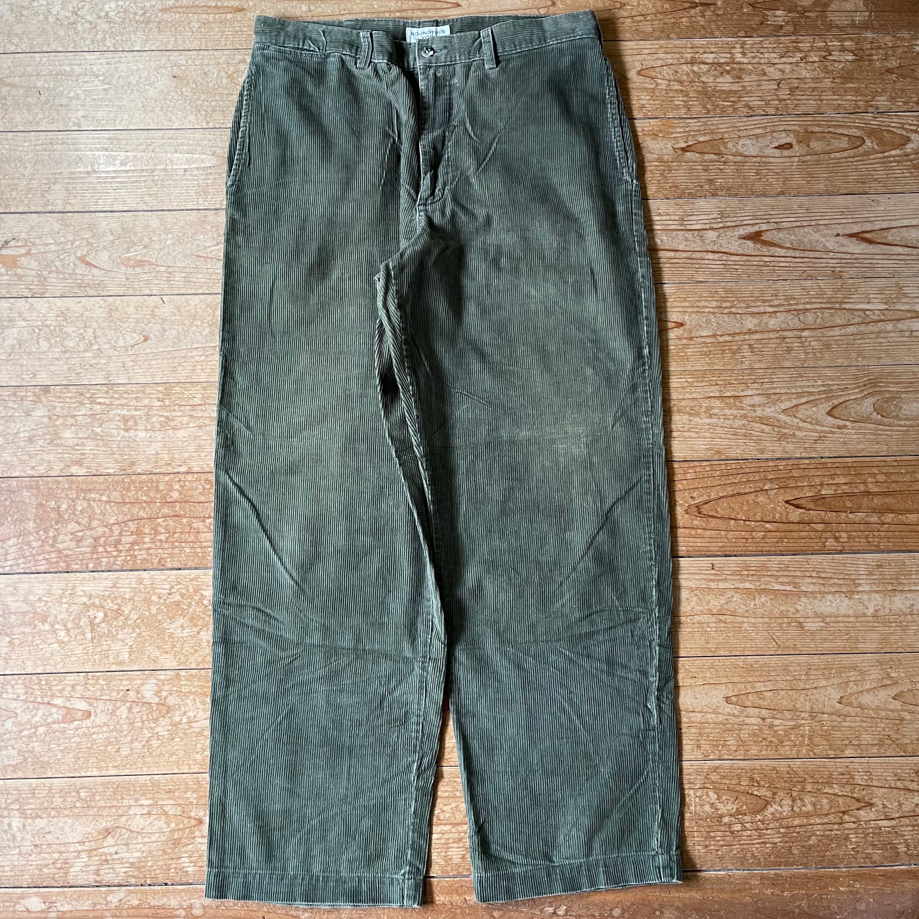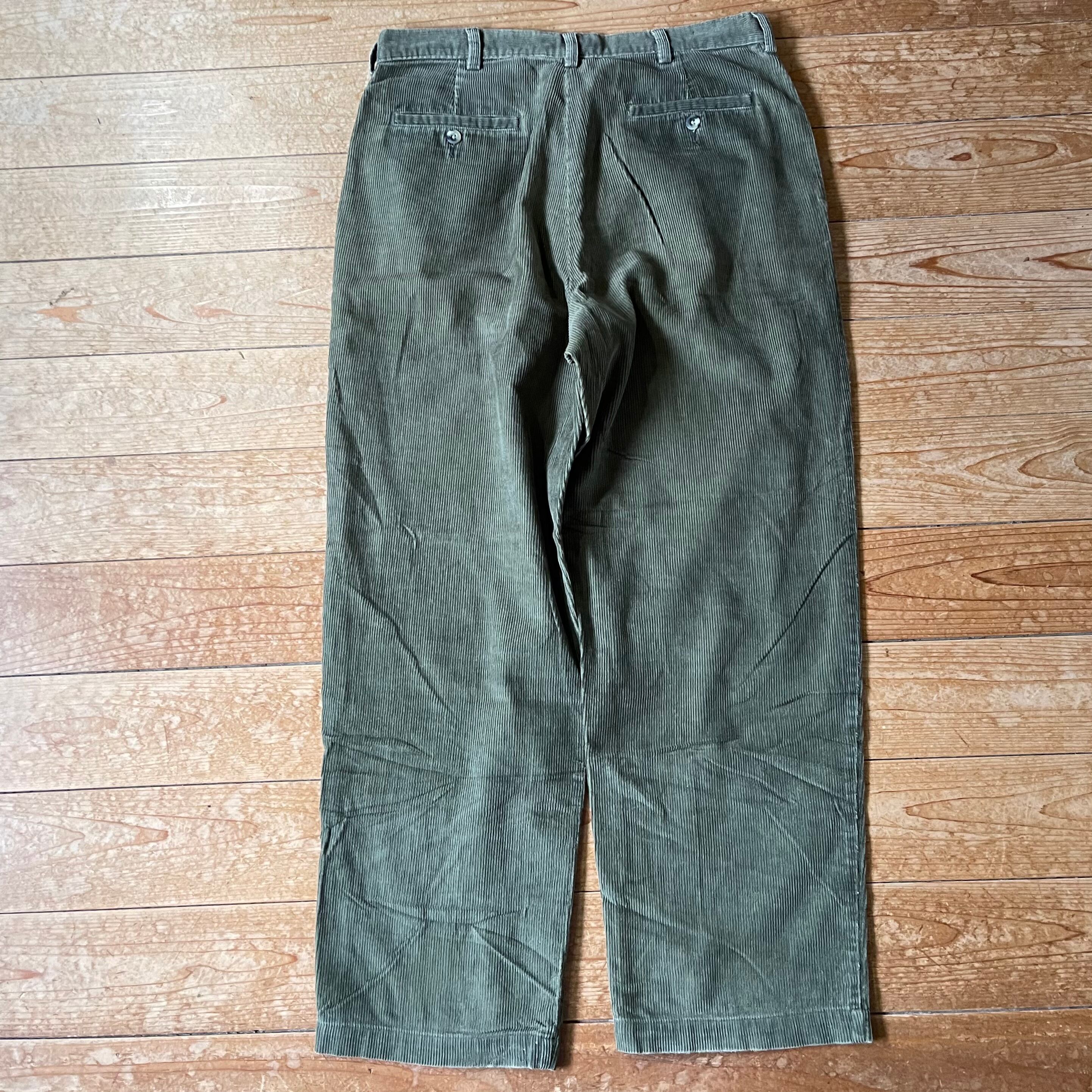00's ROUNDTREE & YORKE corduroy wide pants. コーデュロイパンツ ダークグリーン カーキ 古着 緑 L