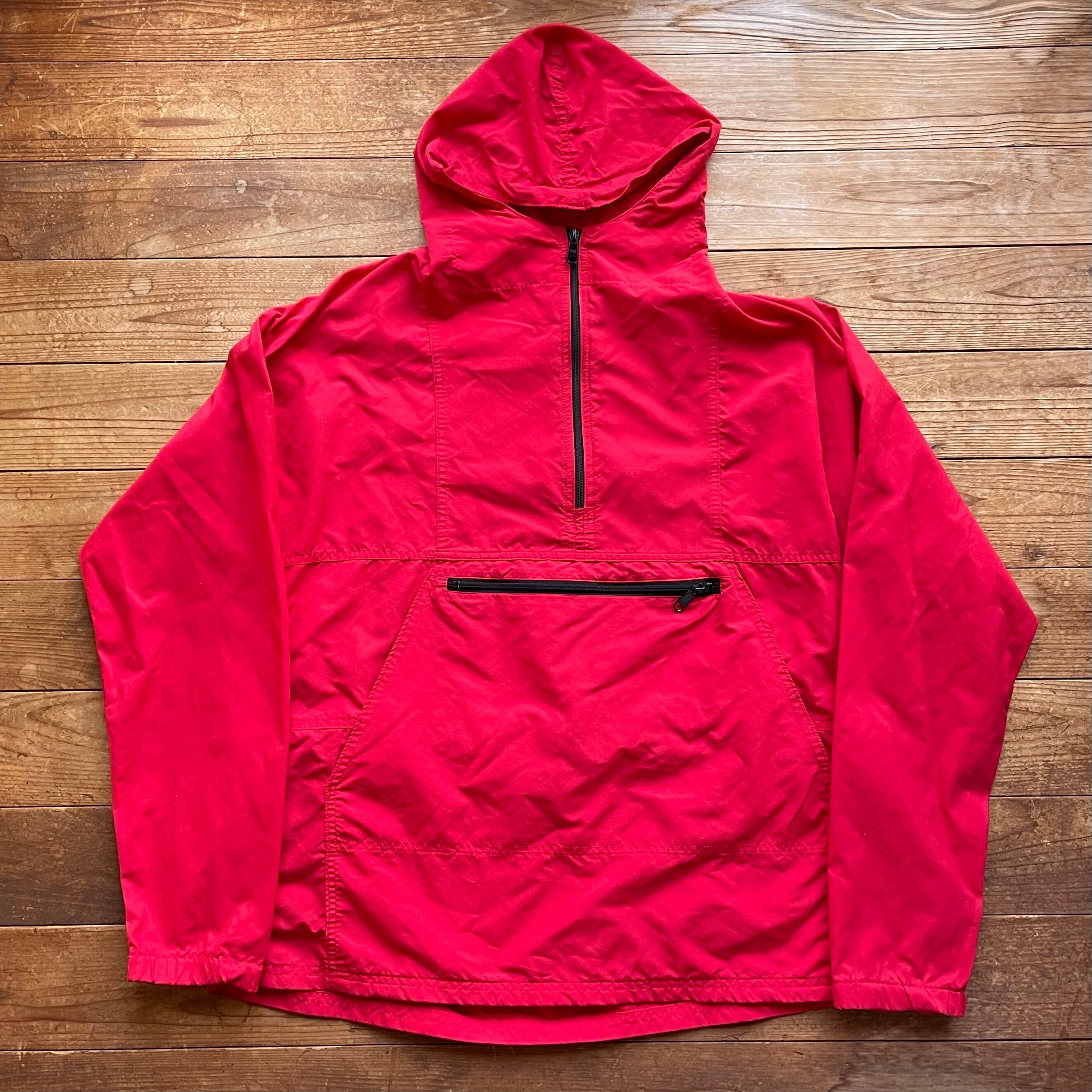 80's USA製 Nylon Anorak jacket. 古着 ナイロンアノラック ハーフジップ 赤 レッド L