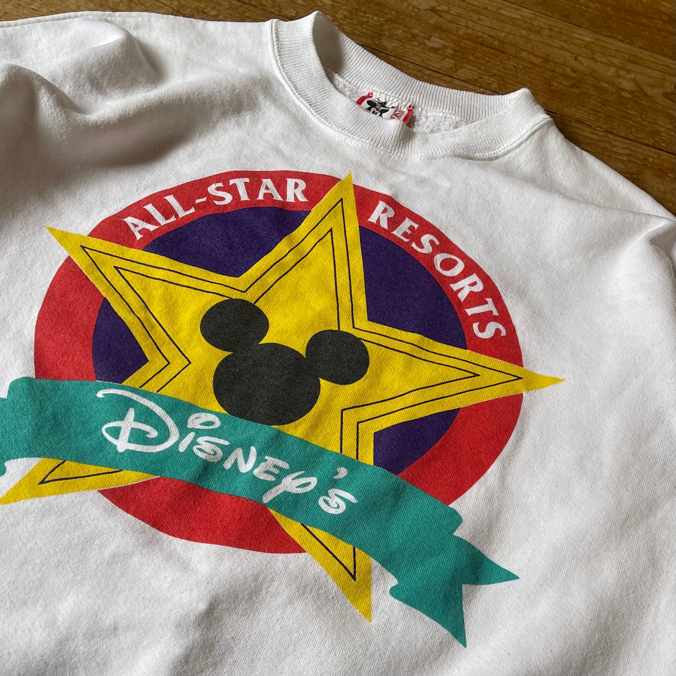 90's Disney ALL STAR RESORTS スウェット 古着 USA製 ホワイト 白 XL walt disney world ミッキー 星