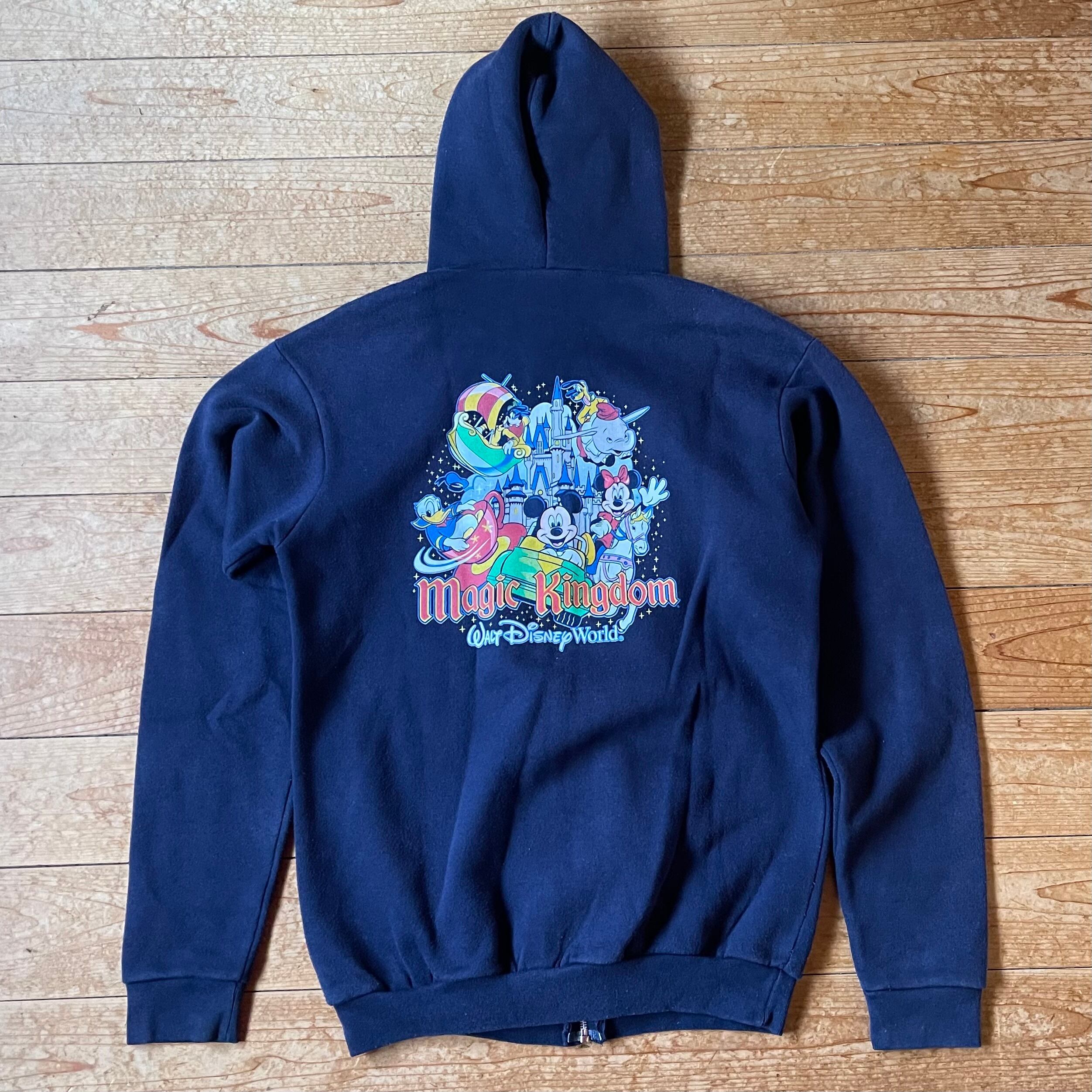 00's Walt Disney World Magic Kingdom ジップアップパーカー 古着 ネイビー ミッキー ディズニー ダンボ 紺