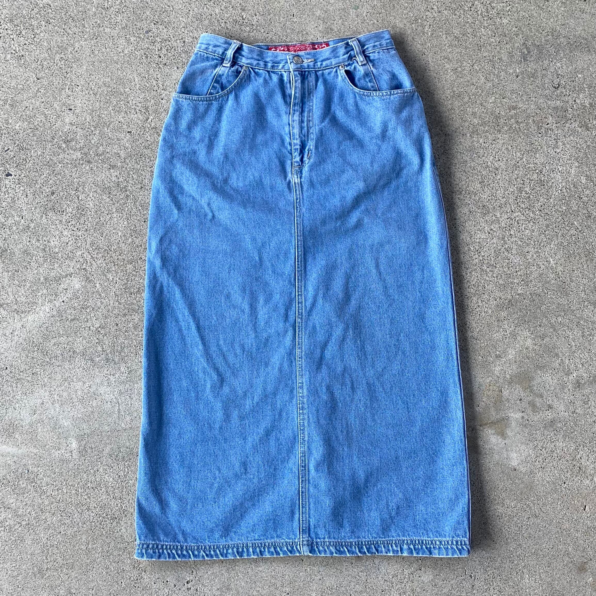 90's no excuses Denim long skirt. 古着 デニムロングスカート スナップボタン レディース