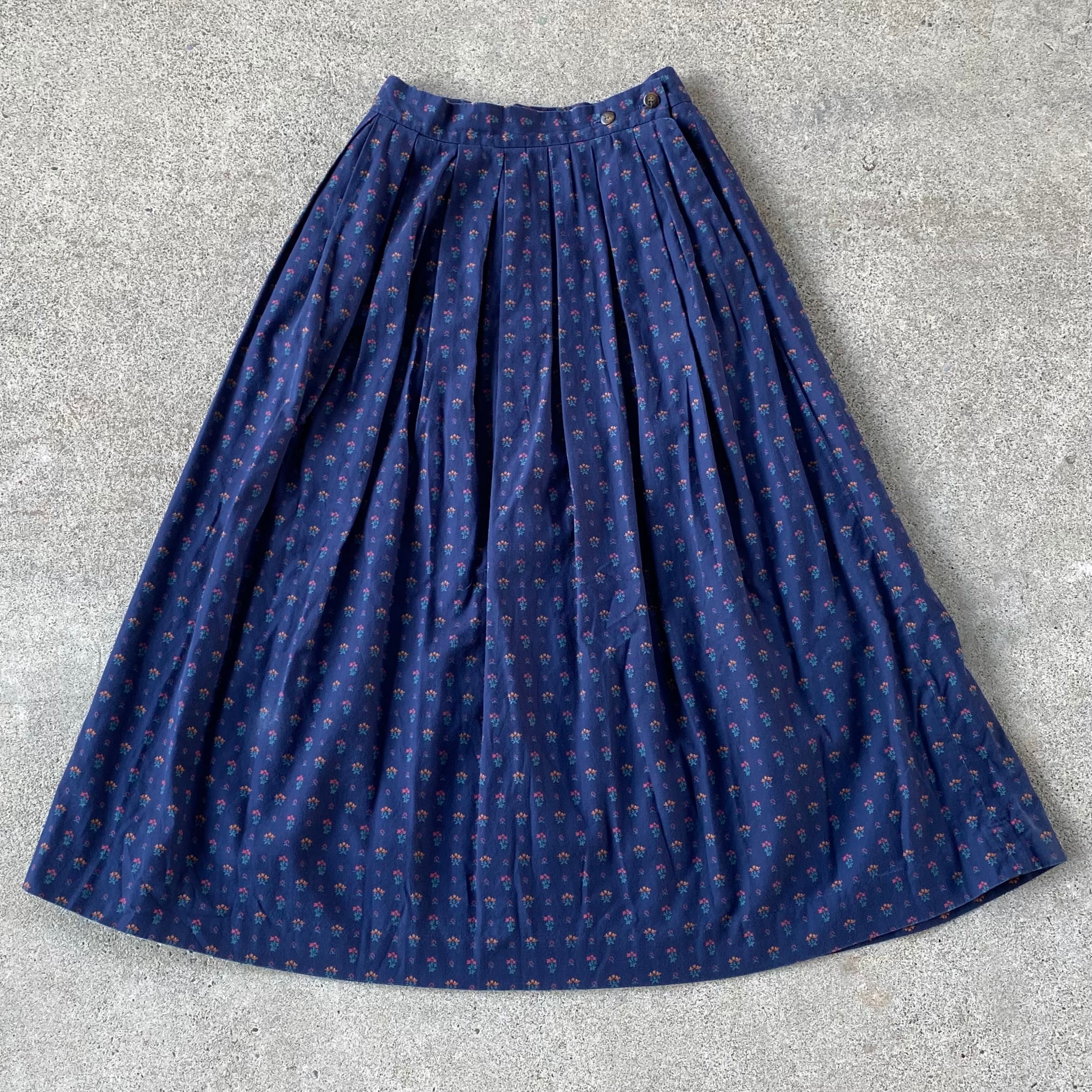 ネイビーに小花柄のオールドスカート。