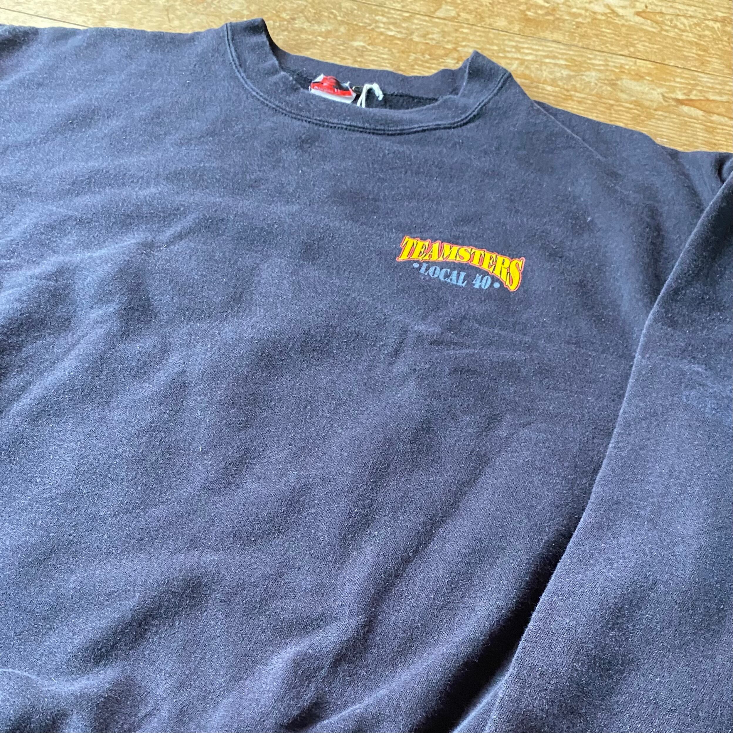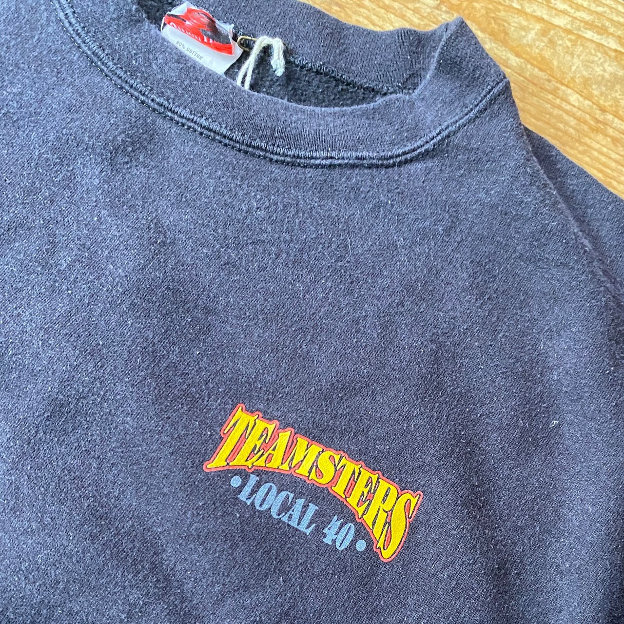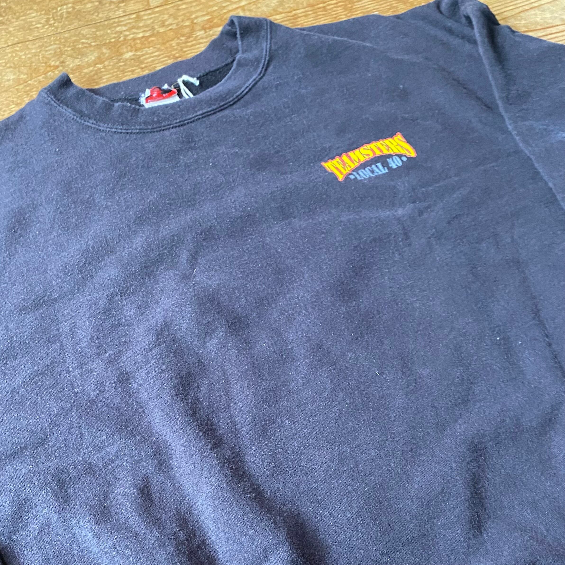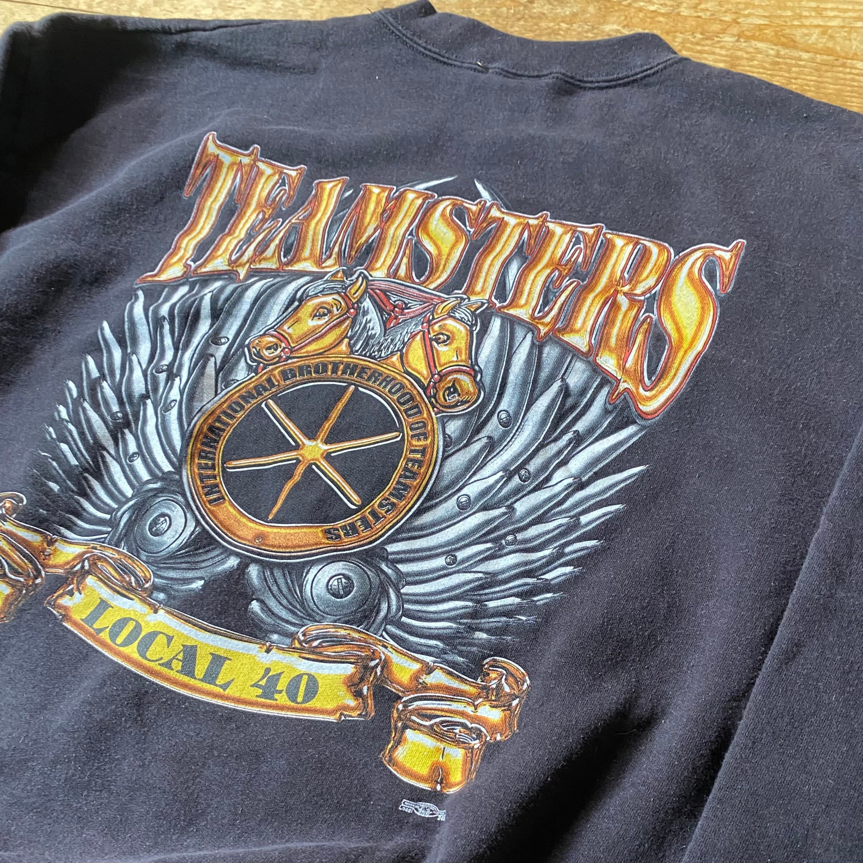 90's USA製 TEAMSTERS Local 40 double sideprint sweat. 古着 スウェット ブラック 黒 XL 馬 トラックドライバー