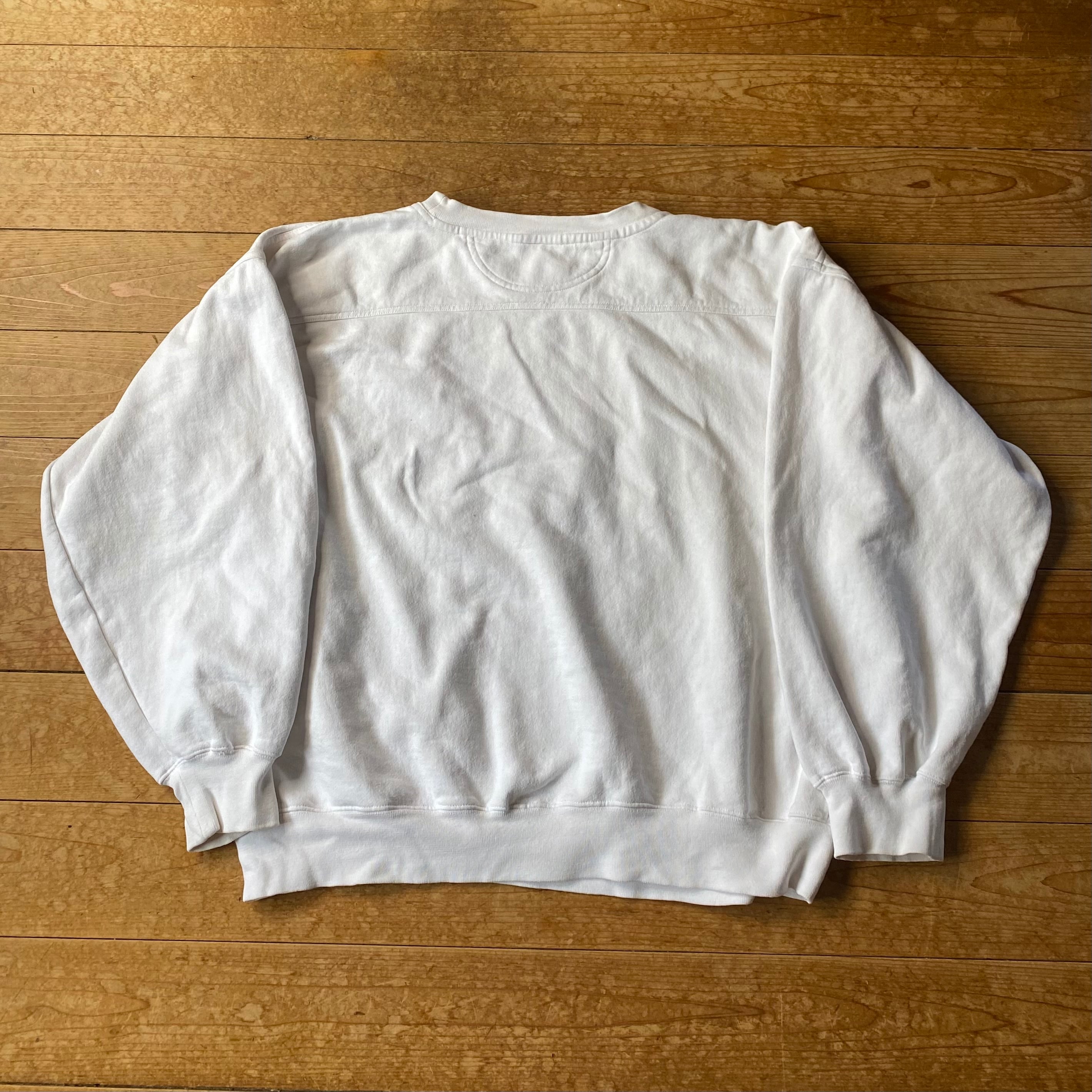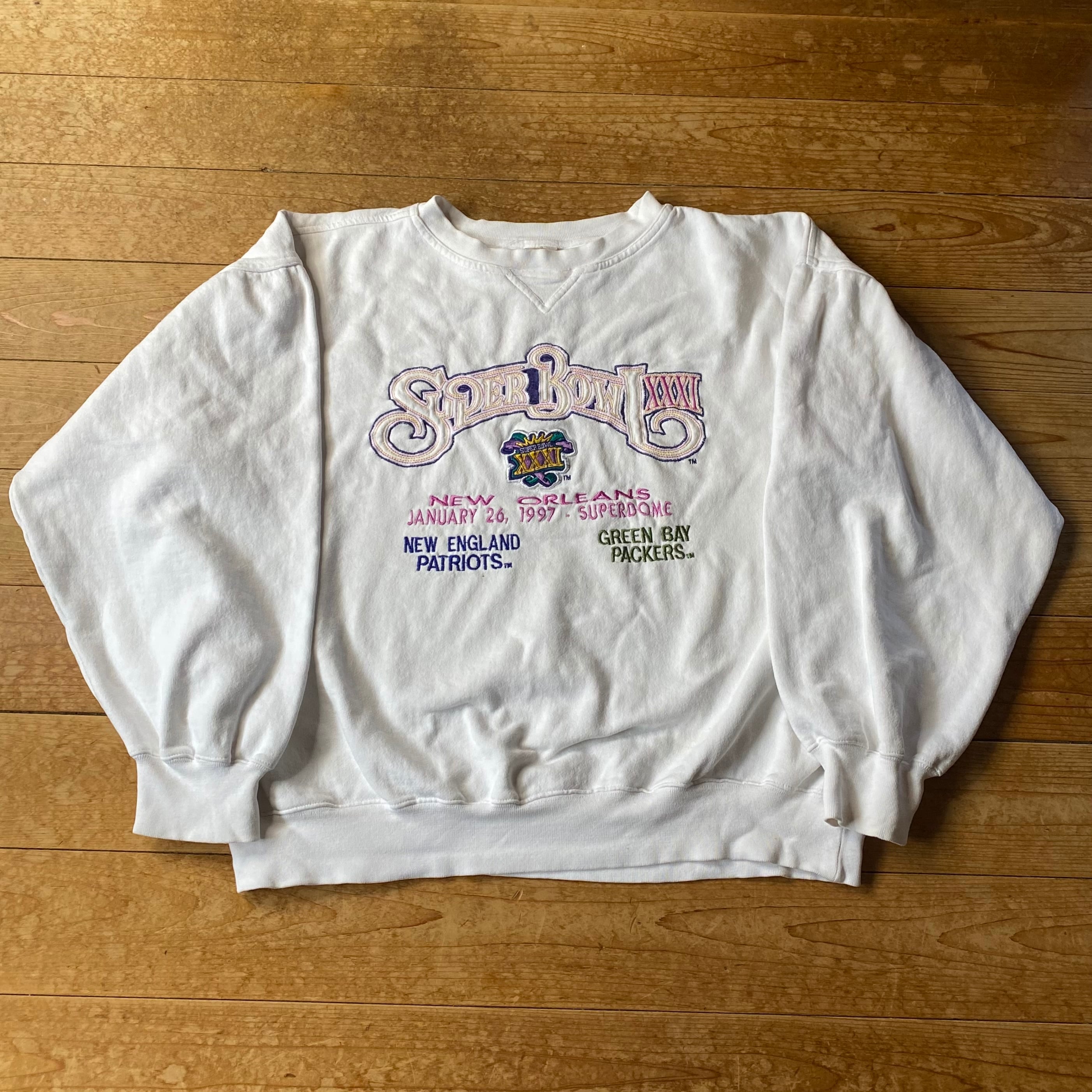 90's NFL SUPER BOWL sweat. 古着 刺繍スウェット ホワイト USA古着 スーパーボール アメフト NEW ORLEANS PATRIOTS PACKERS 白 L