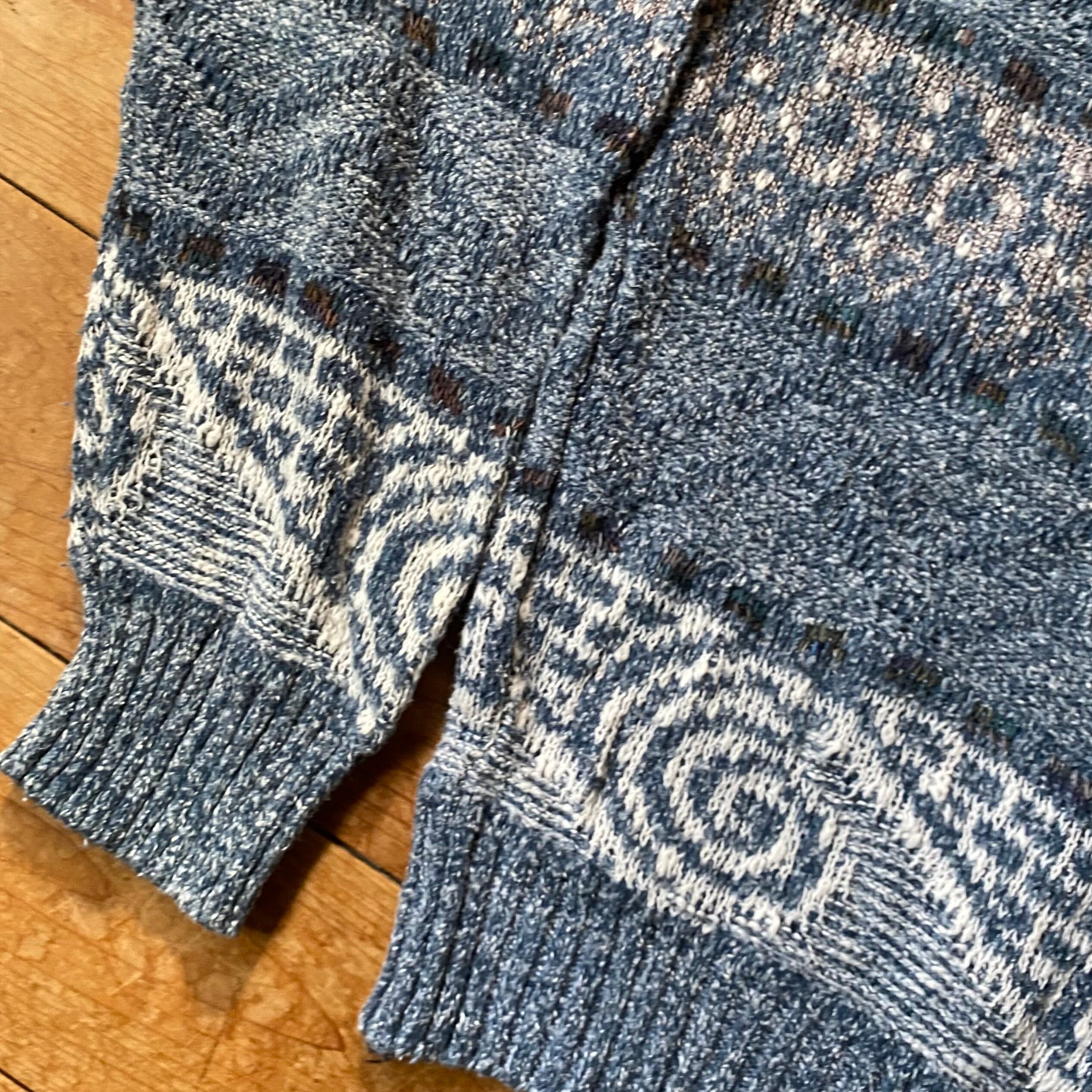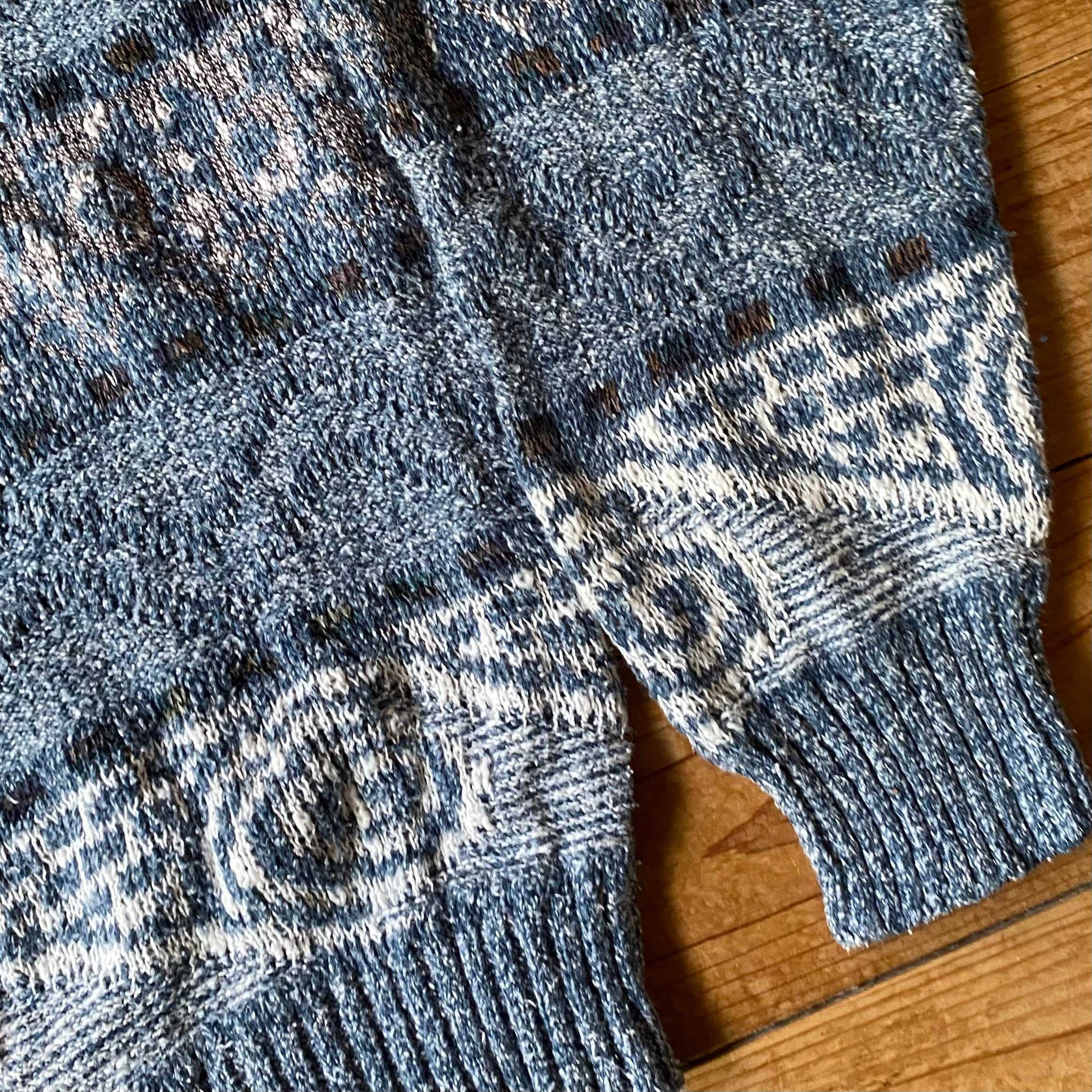 90's BUGLE BOY tribal pattern knit. 古着 トライバル柄ニット ボーダー総柄セーター vintage ブルー 青