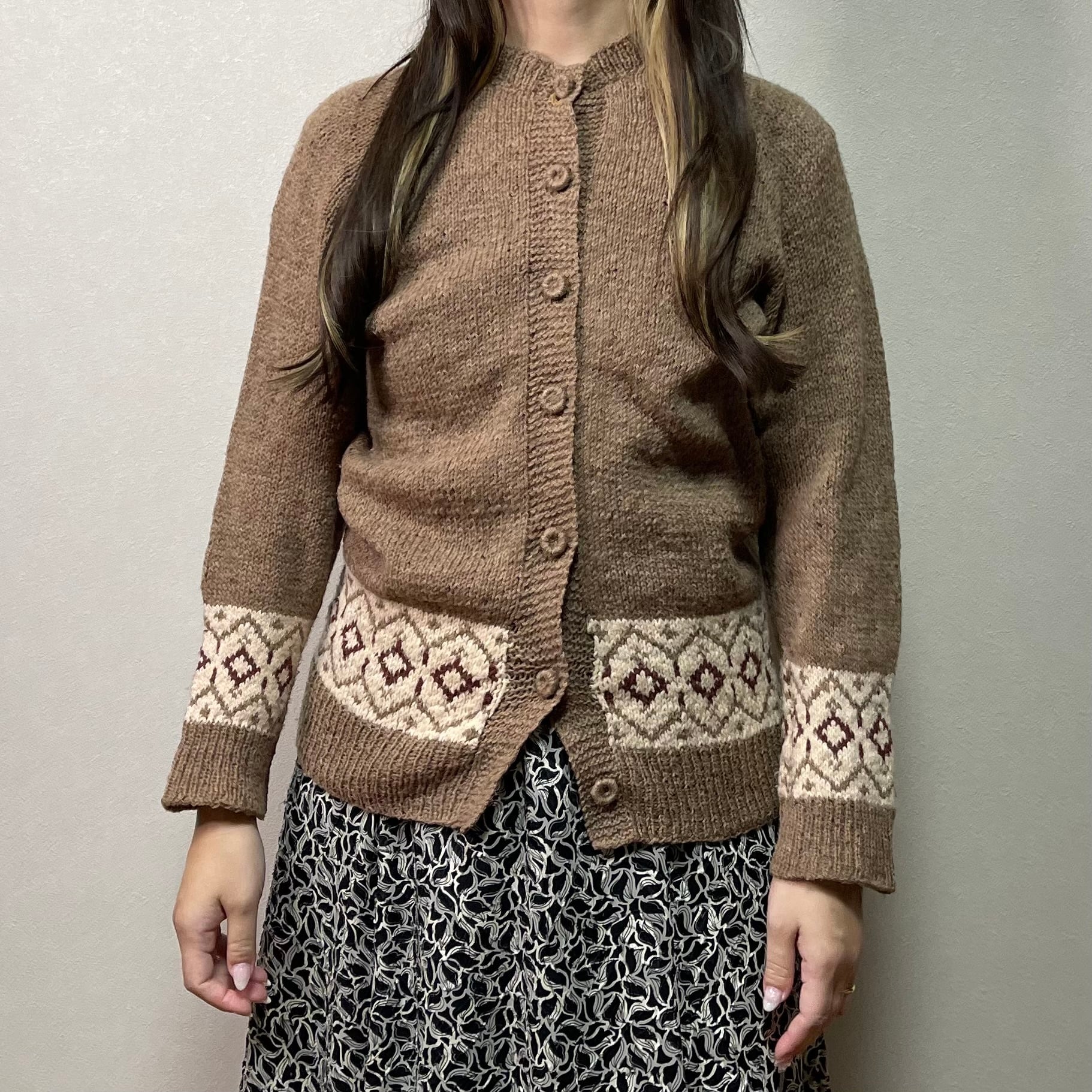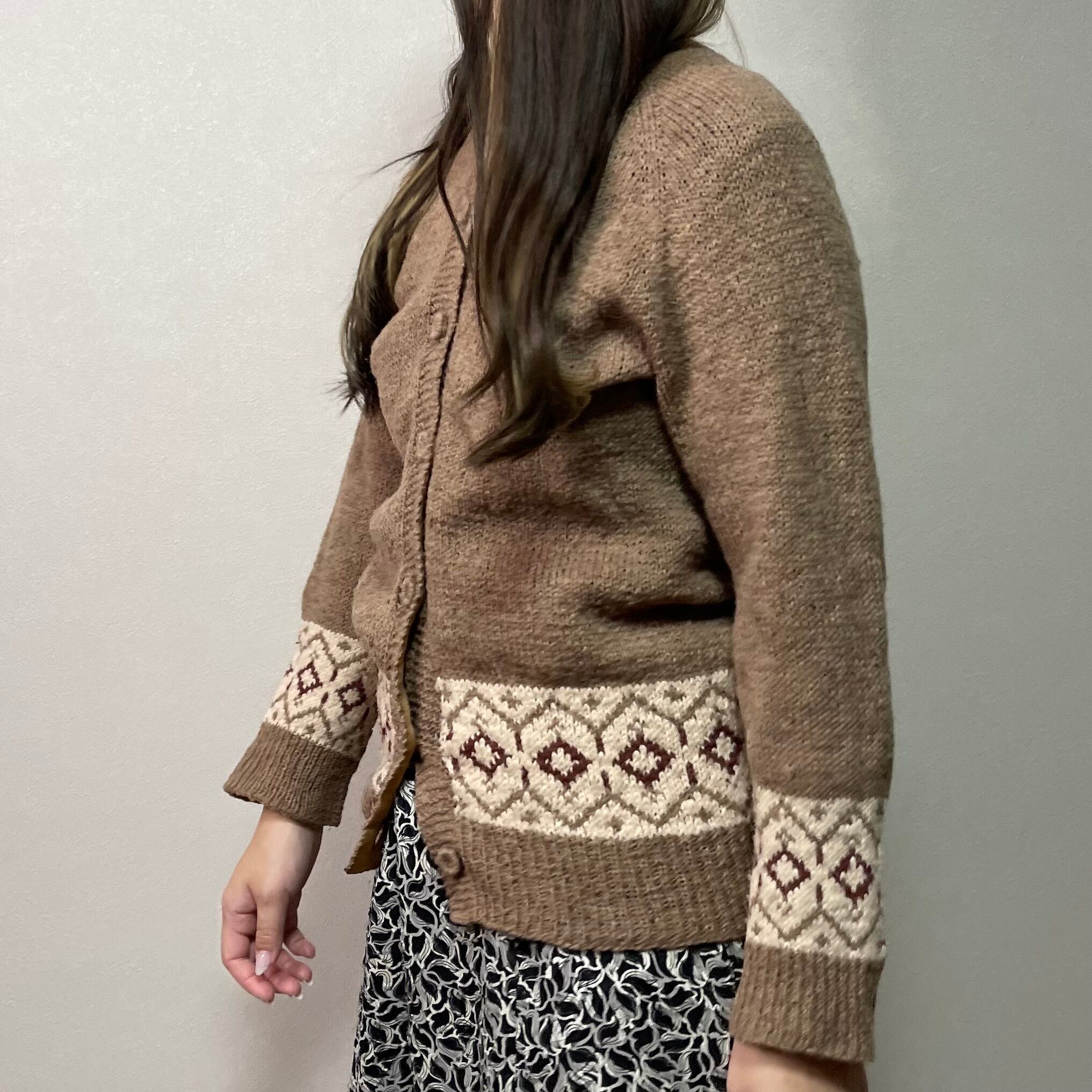70's Native pattern wool crew neck cardigan. 古着 ウールカラーネックカーディガン ベージュ レディース ネイティブ柄