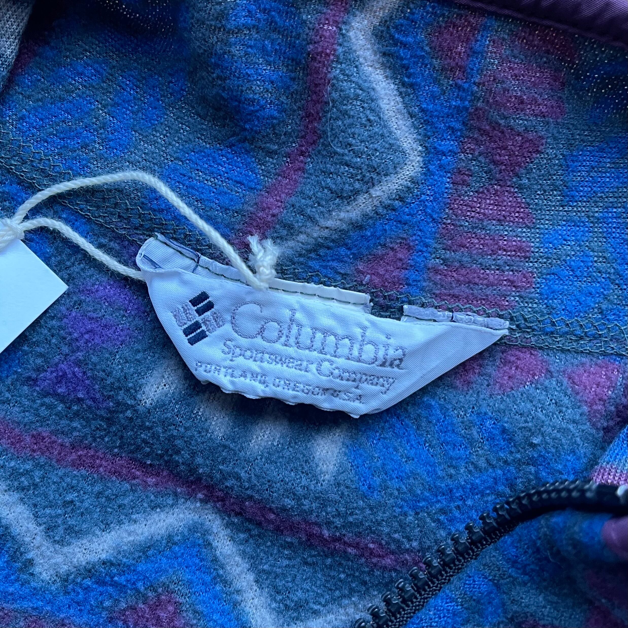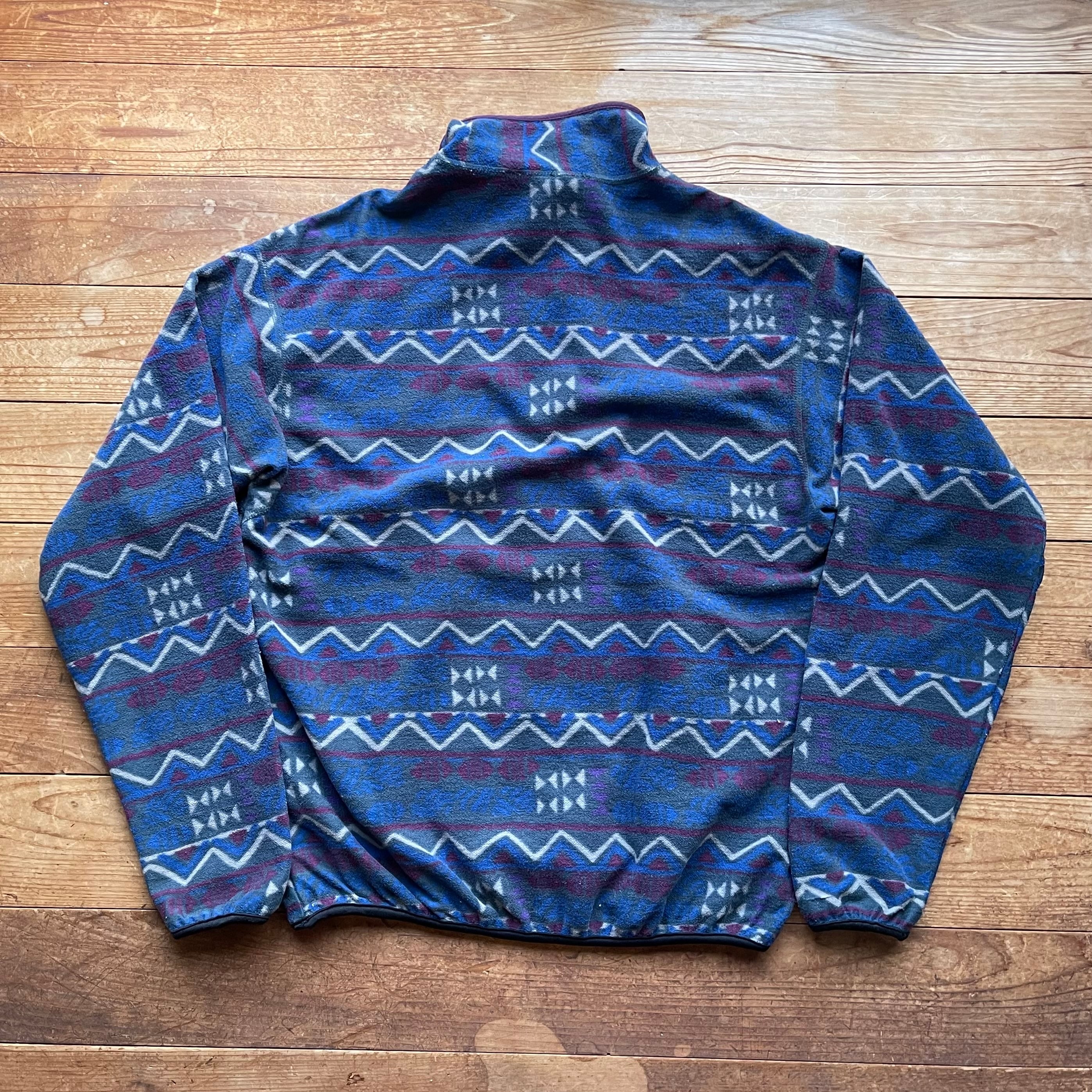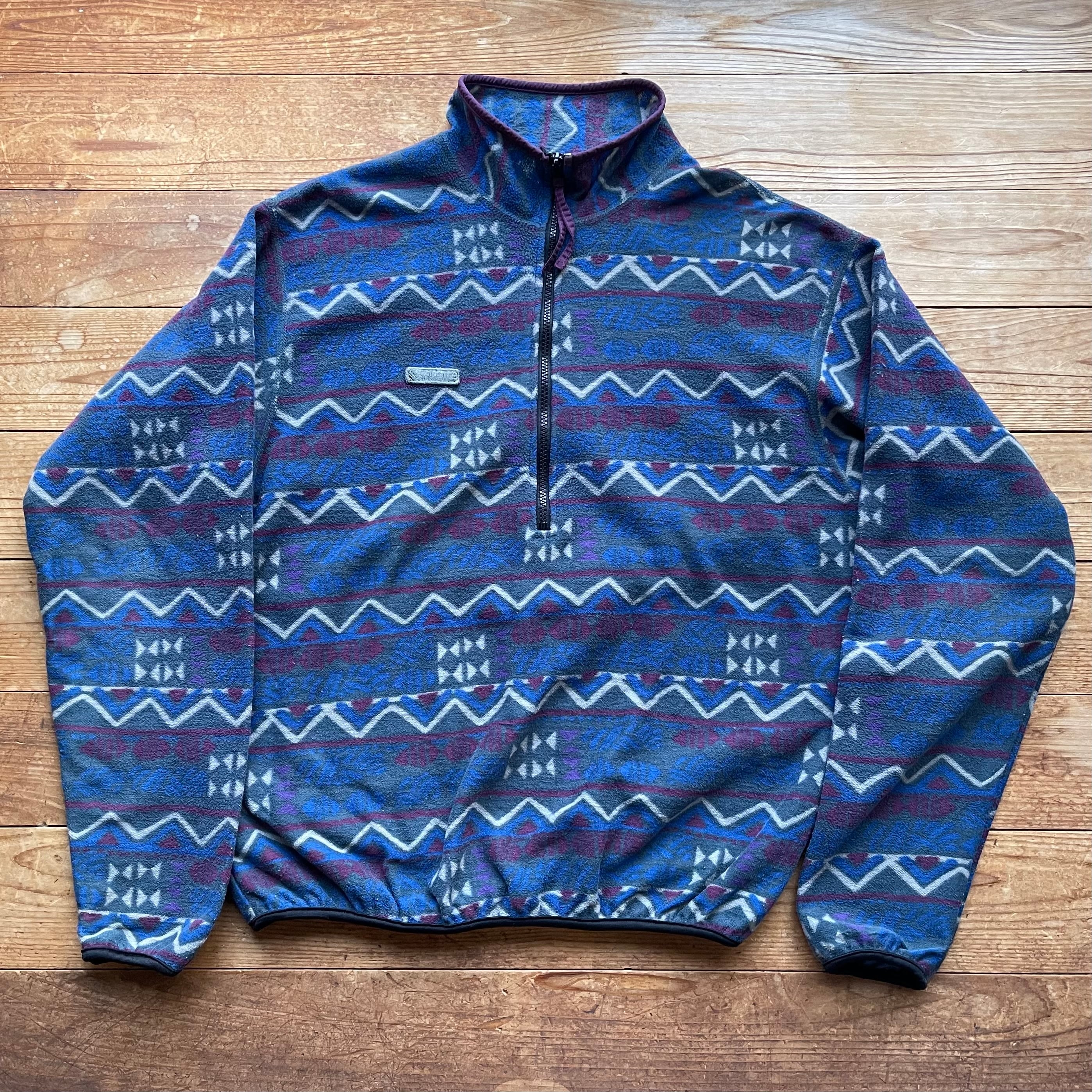 90's USA製 Columbia all over pattern fleece jacket. 古着 コロンビア 総柄 ハーフジップ フリース ネイビー