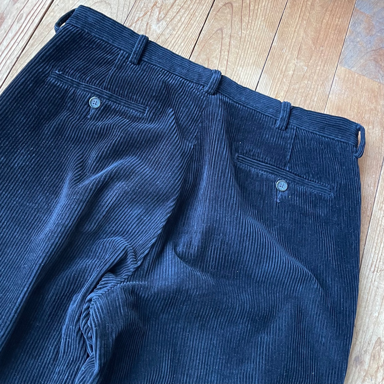 00's BROOKS BROTHERS corduroy wide pants. 古着 太畆 コーデュロイパンツ ブラック 黒 W34 2タック ワイド ブルックスブラザーズ