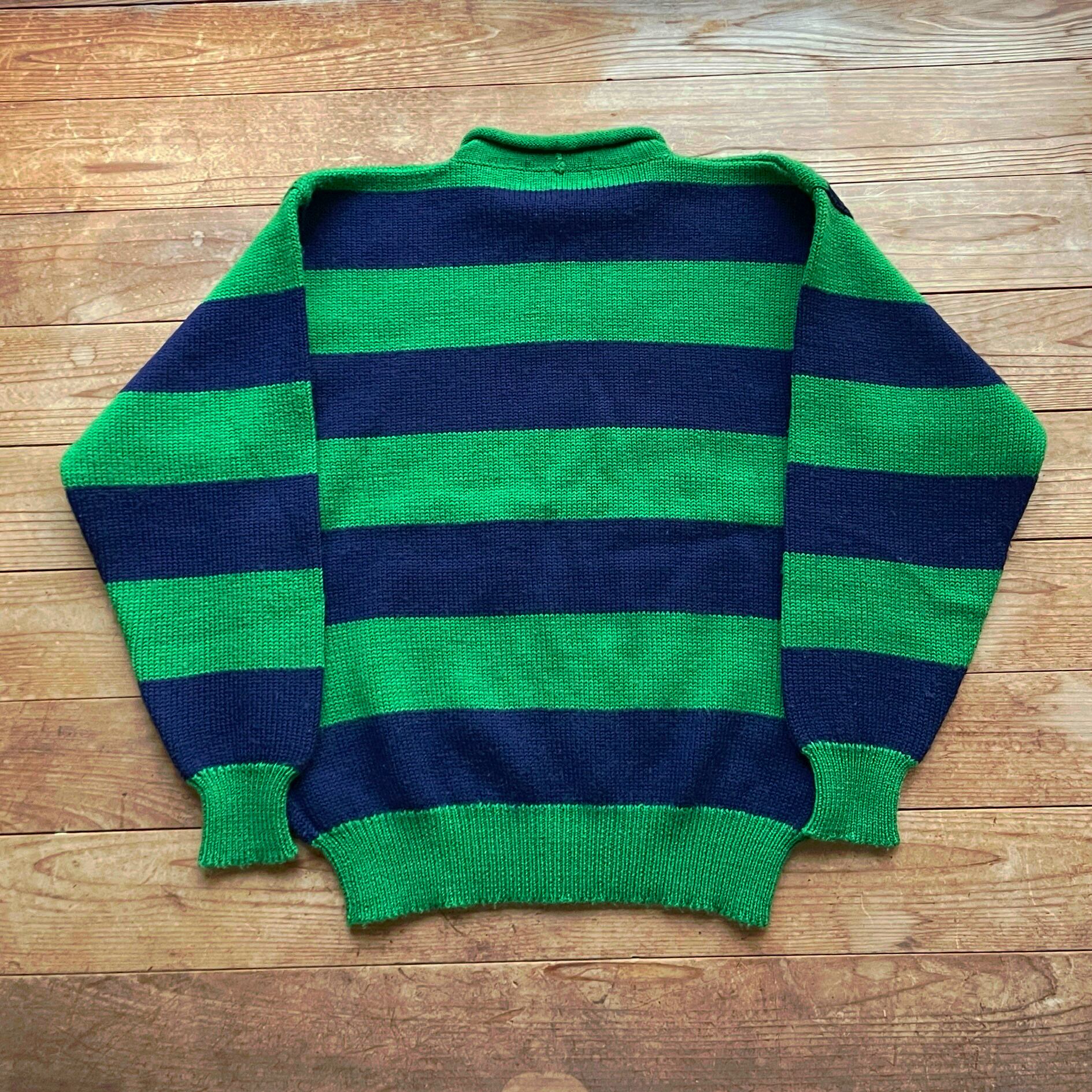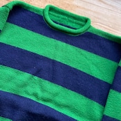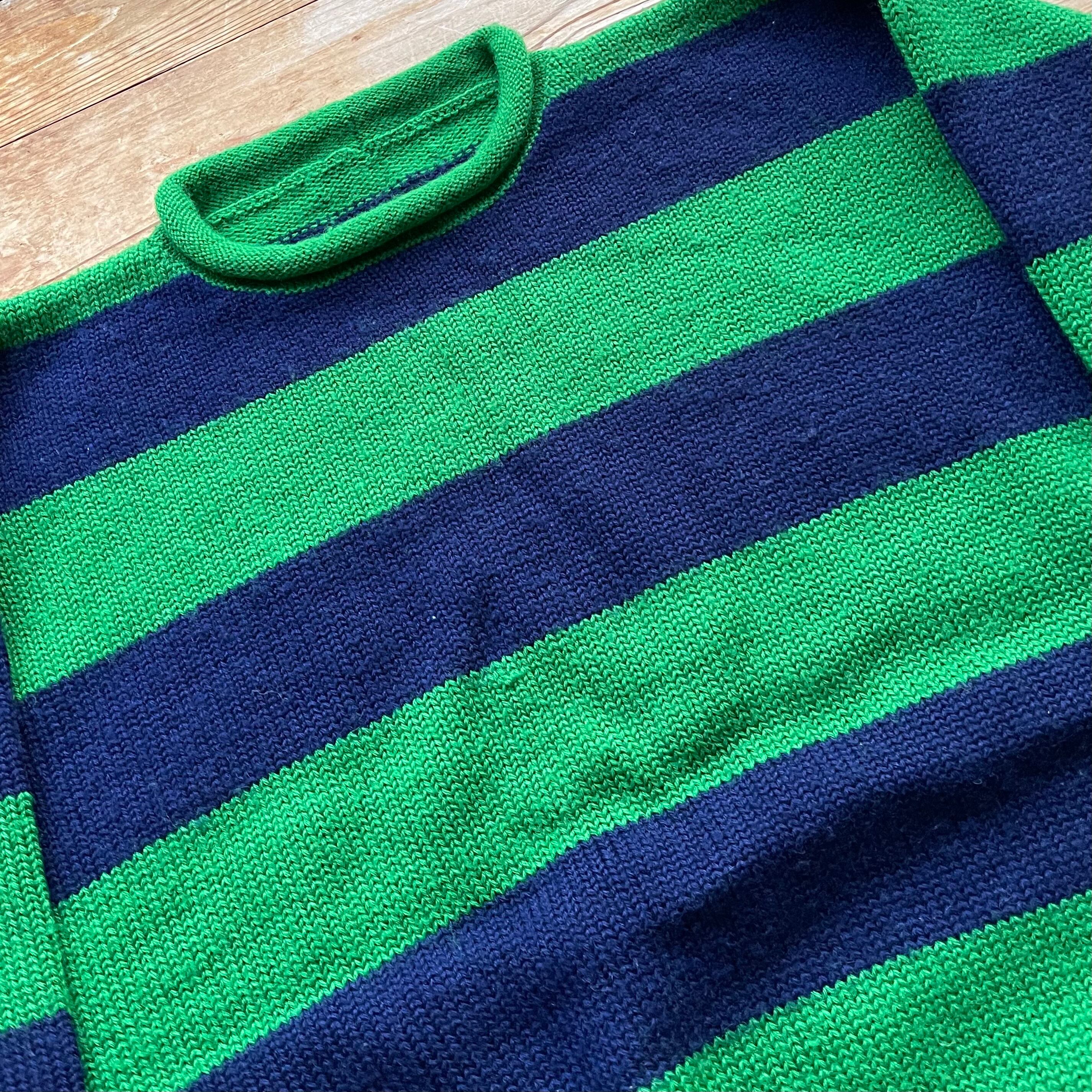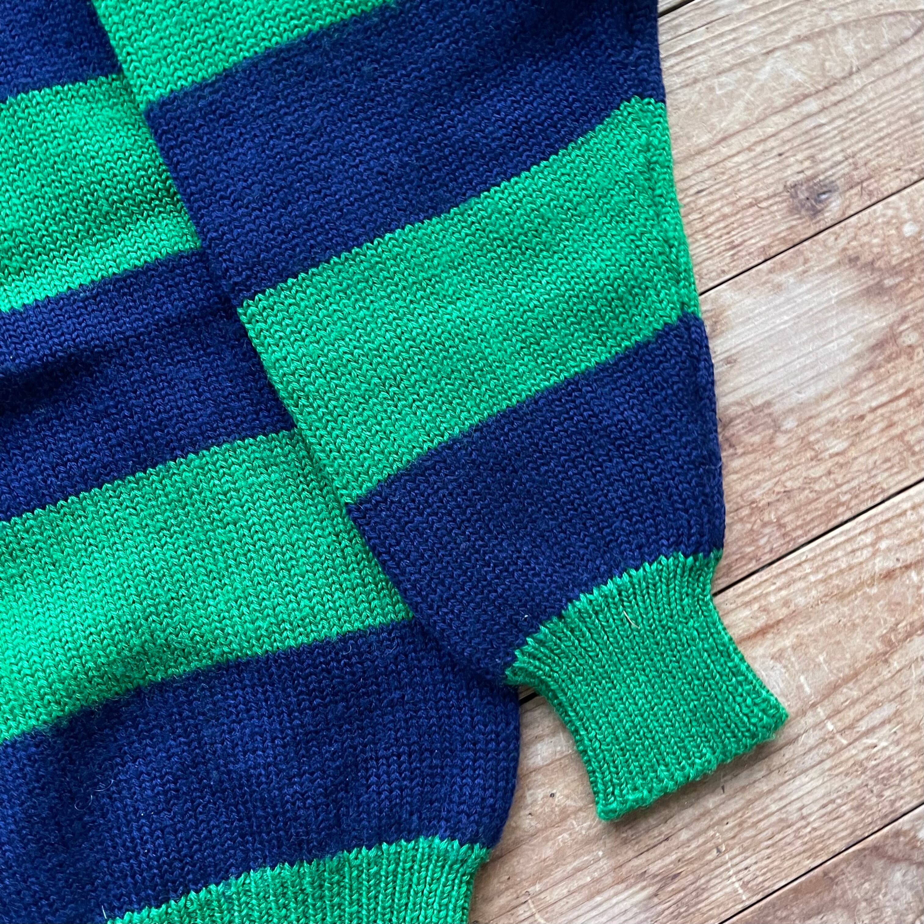90's wide border roll neck knit. 古着 ワイドボーダーニット ロールネックセーター グリーン ネイビー 緑