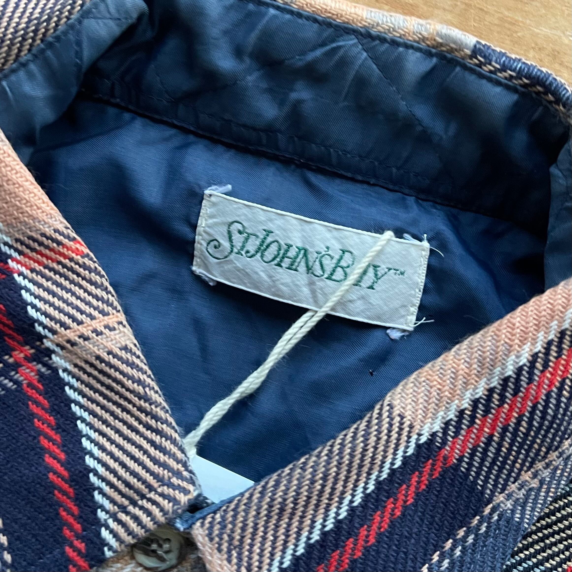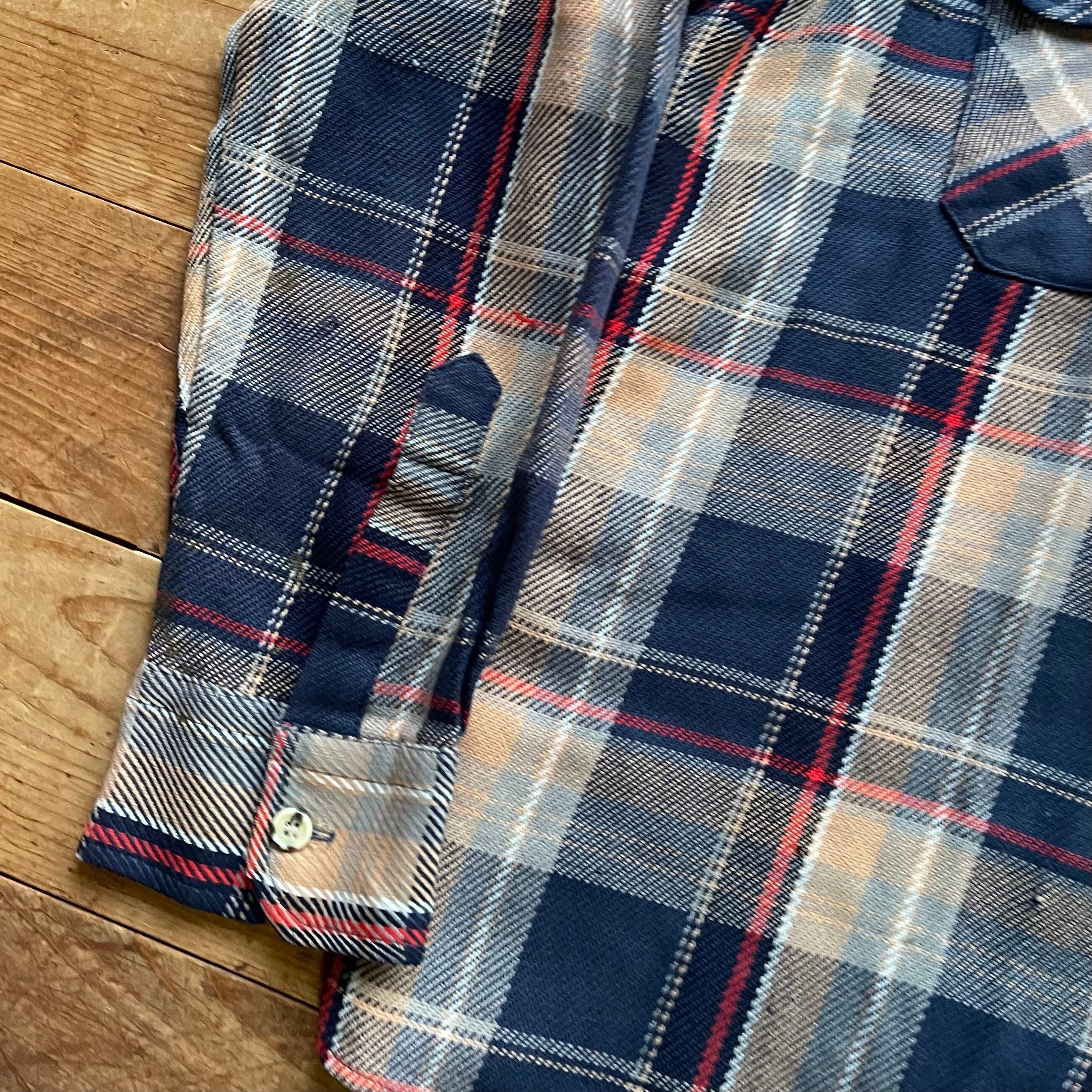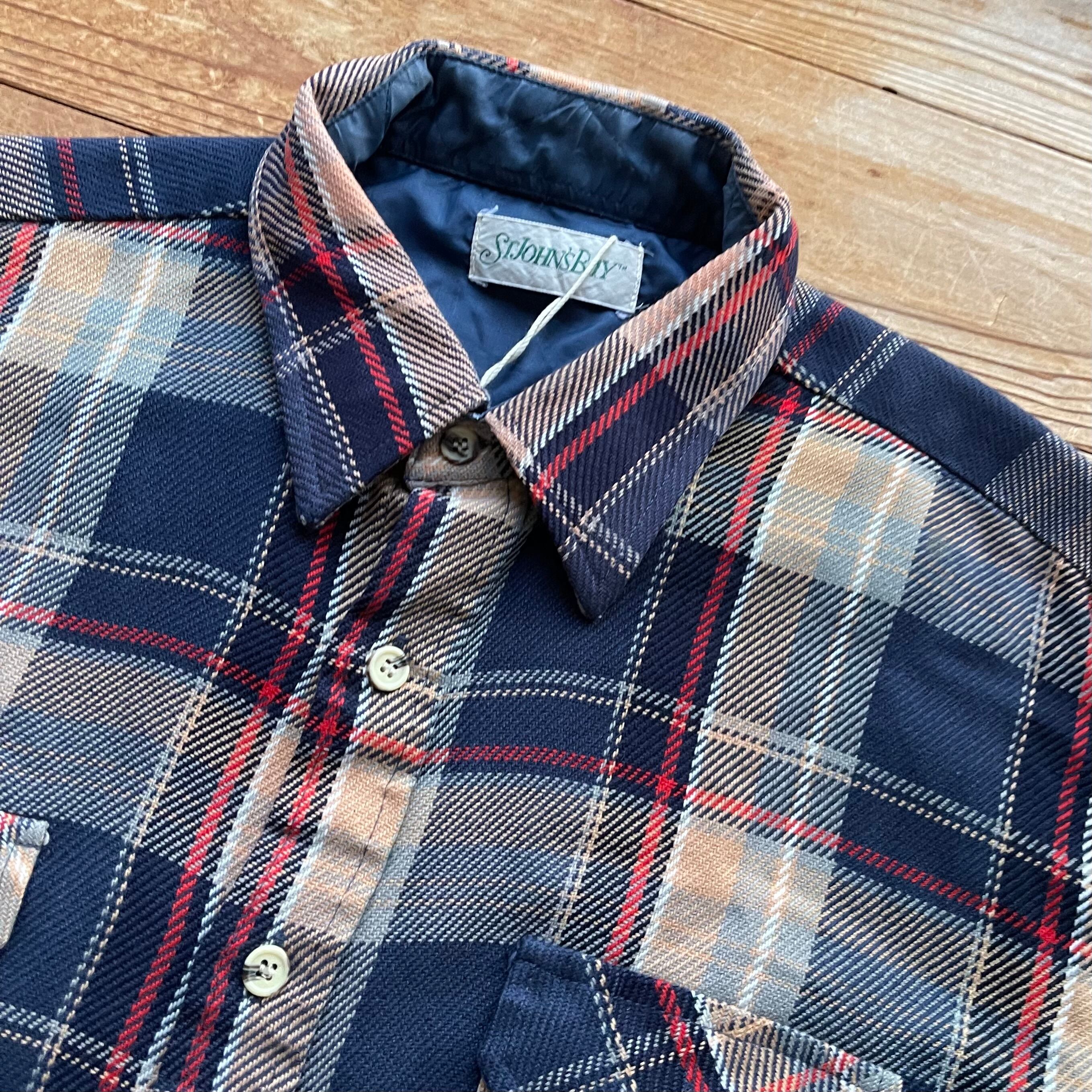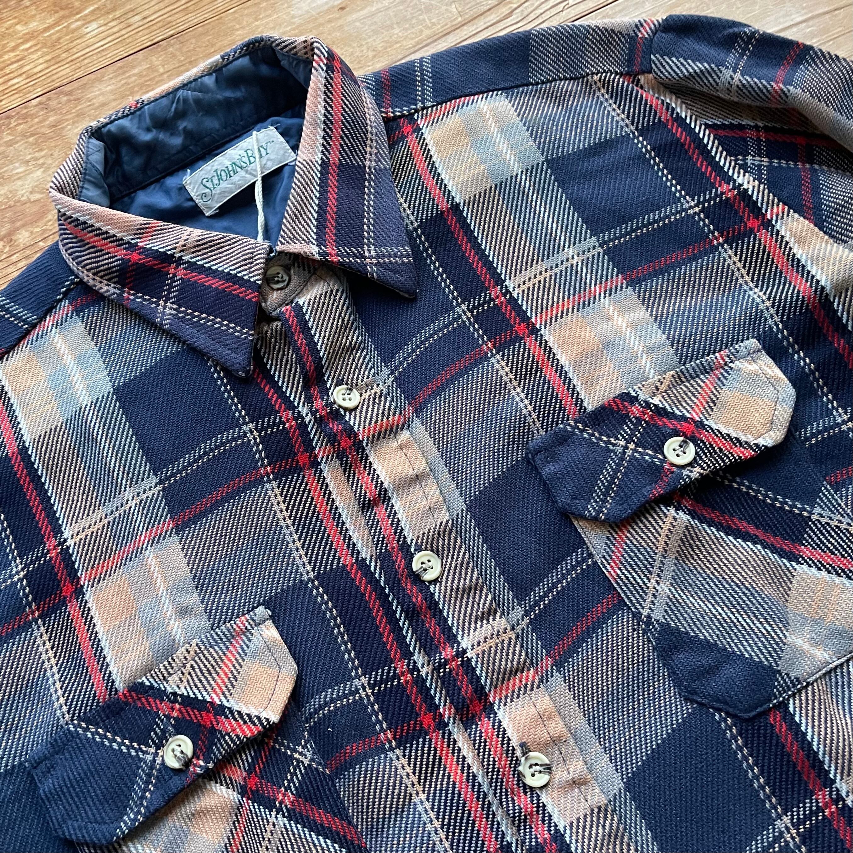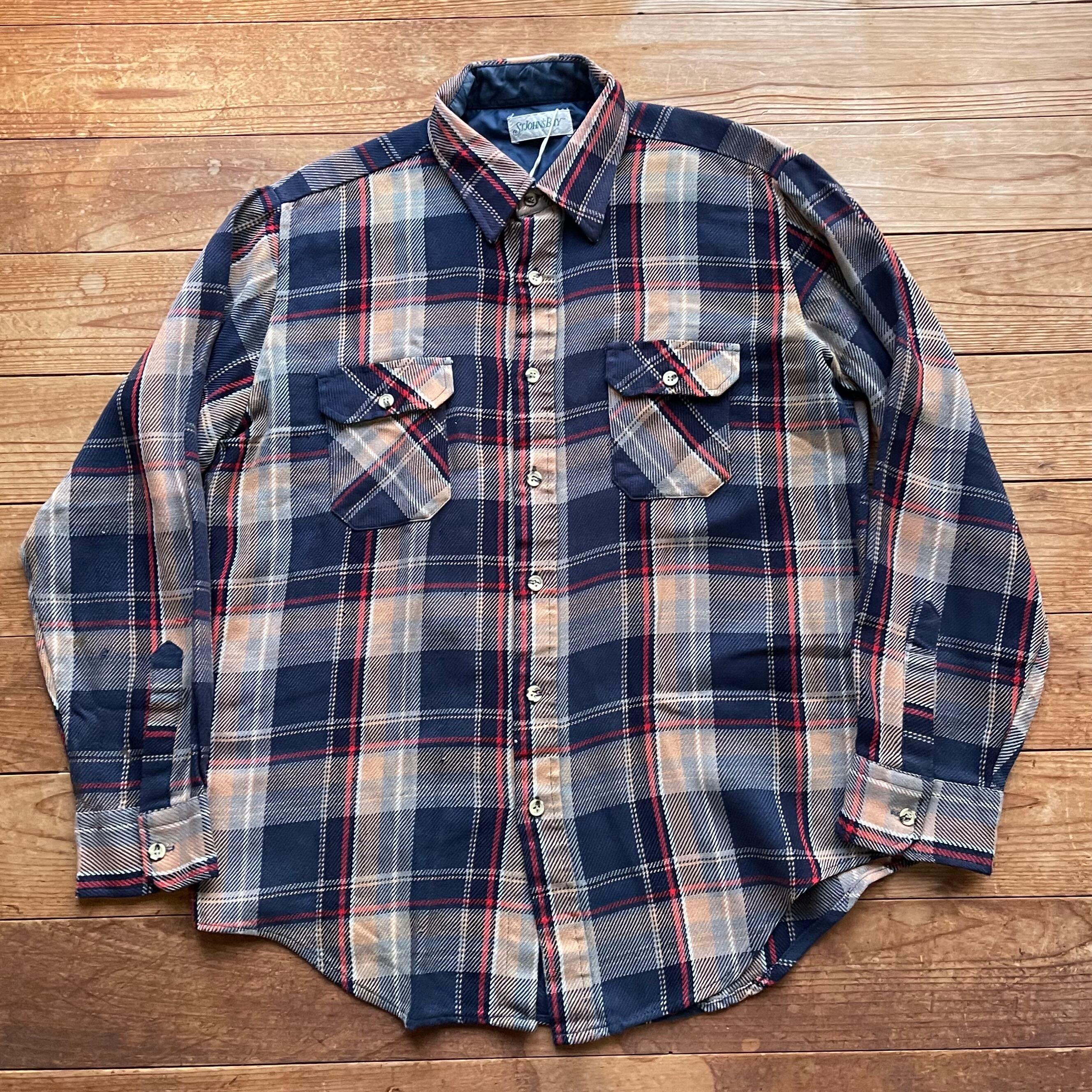 80's ST JOHN'S BAY check flannel shirt. 古着 チェック ヘビネル ネルシャツ 長袖 ネイビー ベージュ