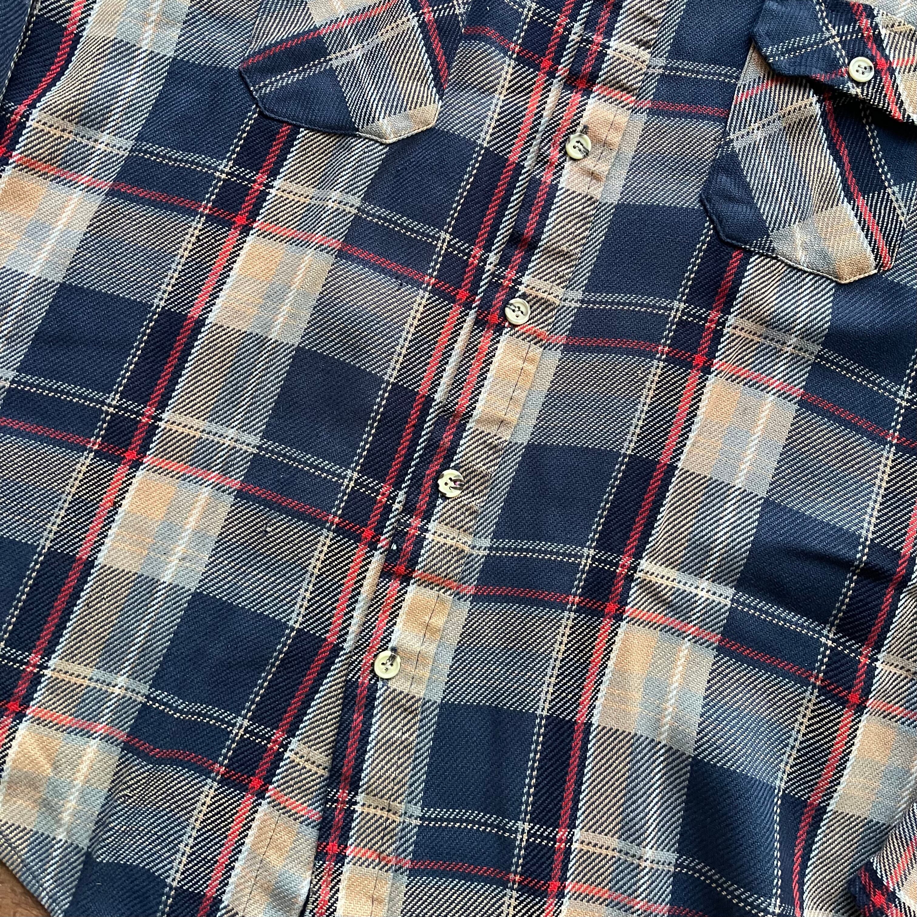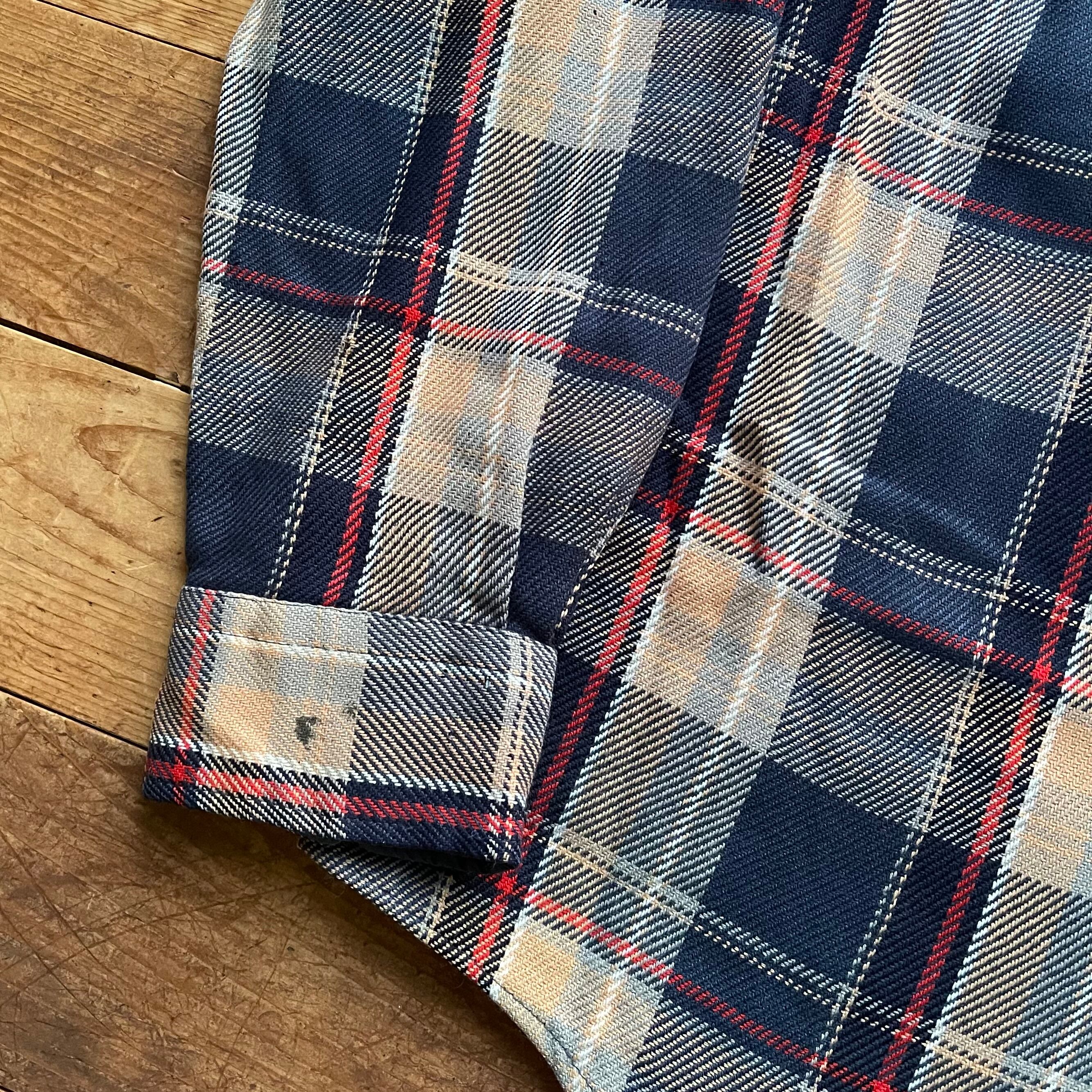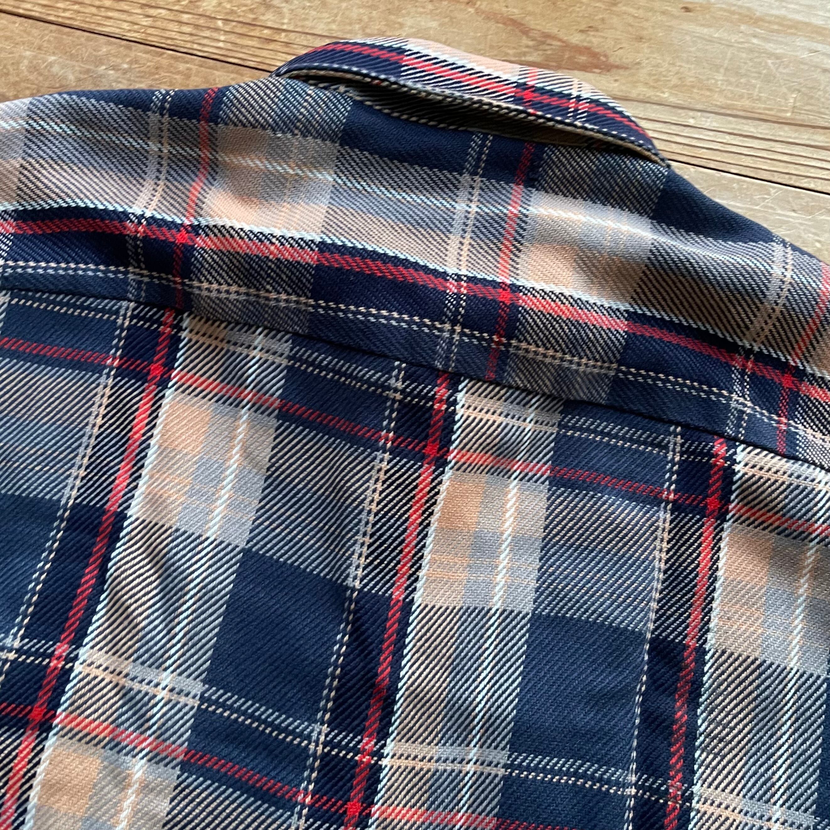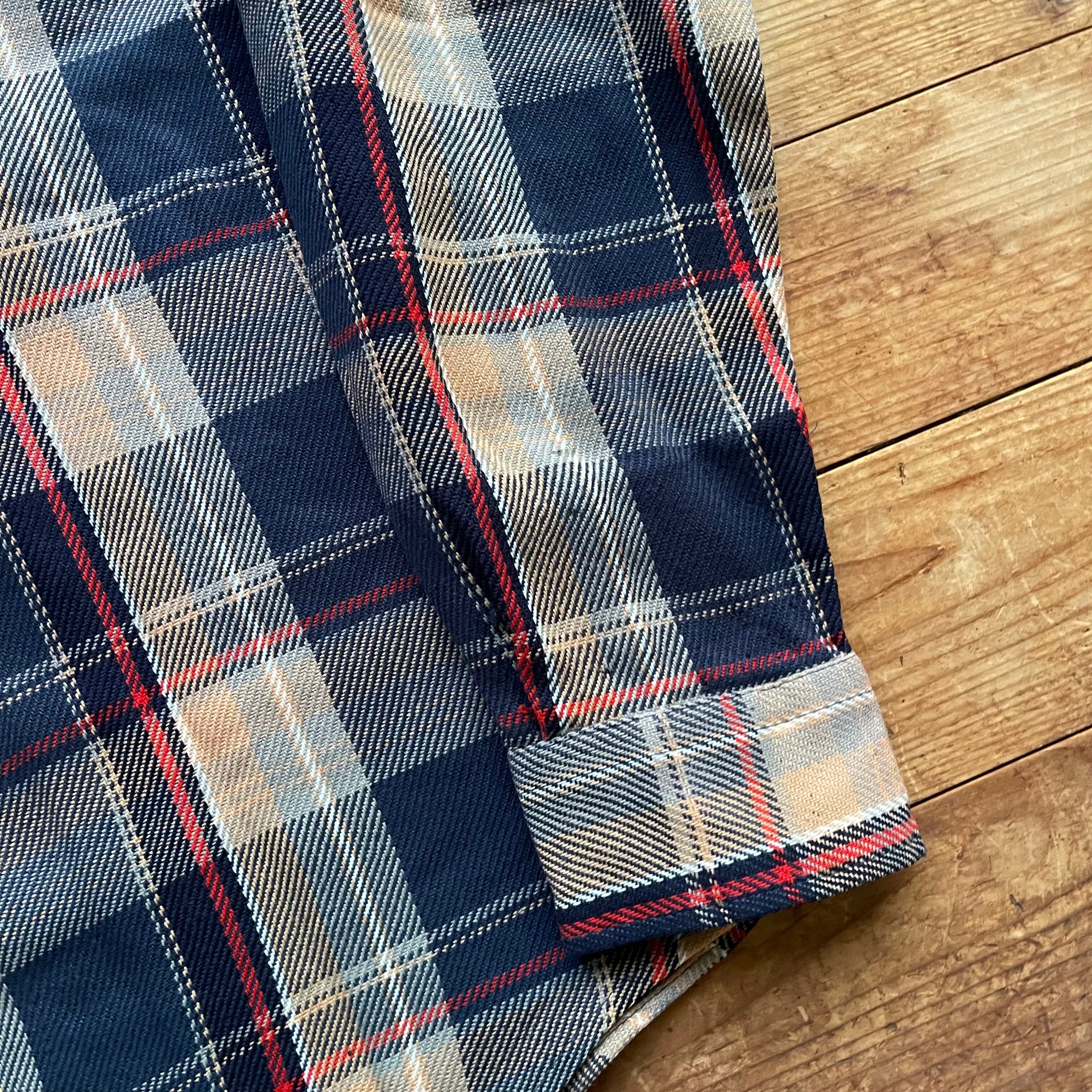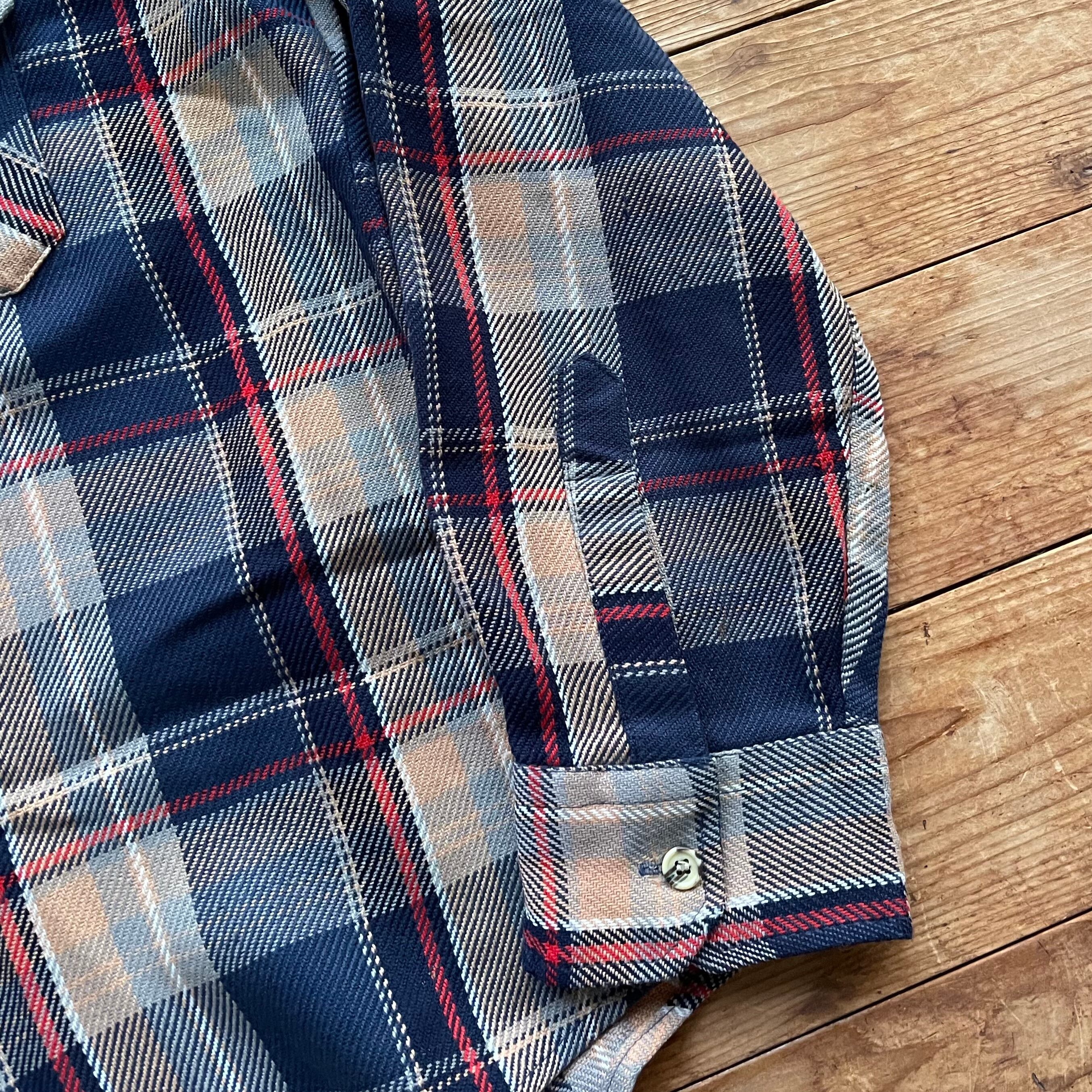 80's ST JOHN'S BAY check flannel shirt. 古着 チェック ヘビネル ネルシャツ 長袖 ネイビー ベージュ