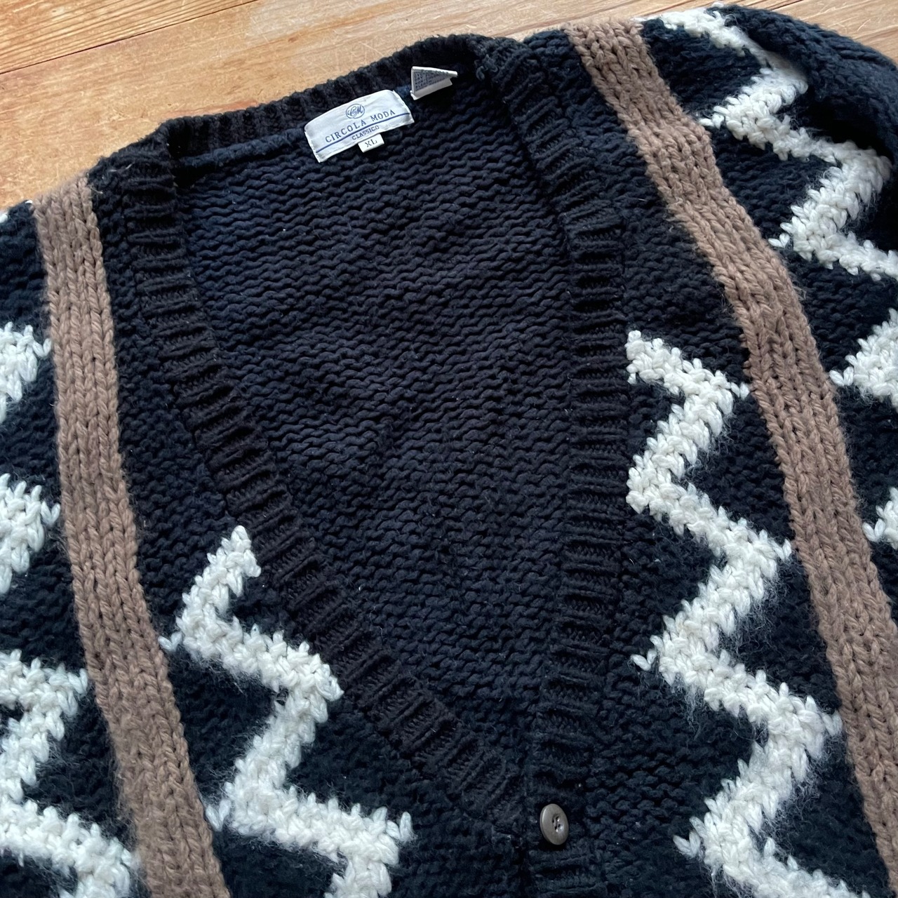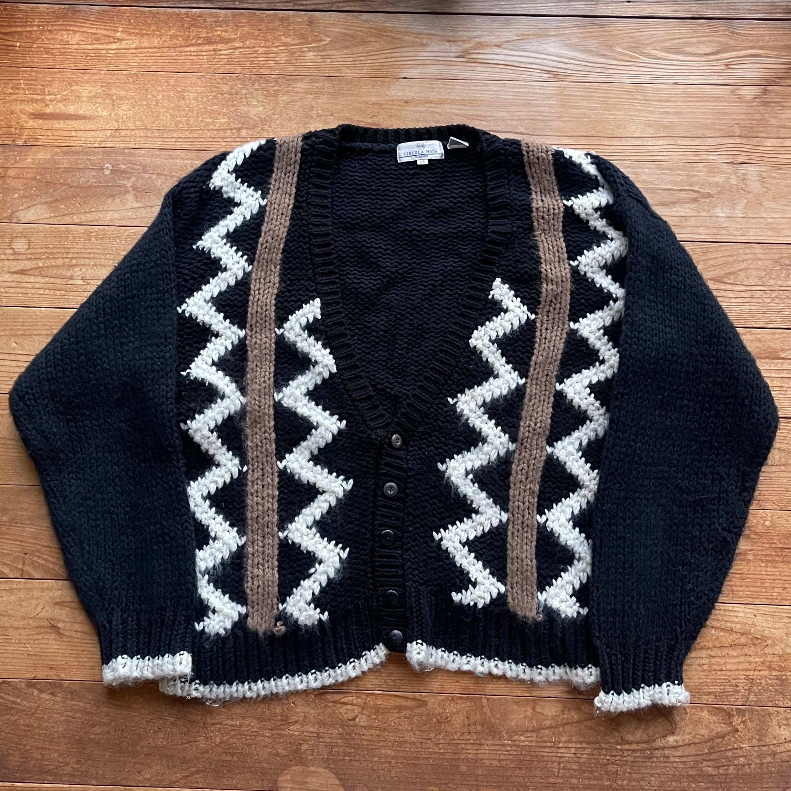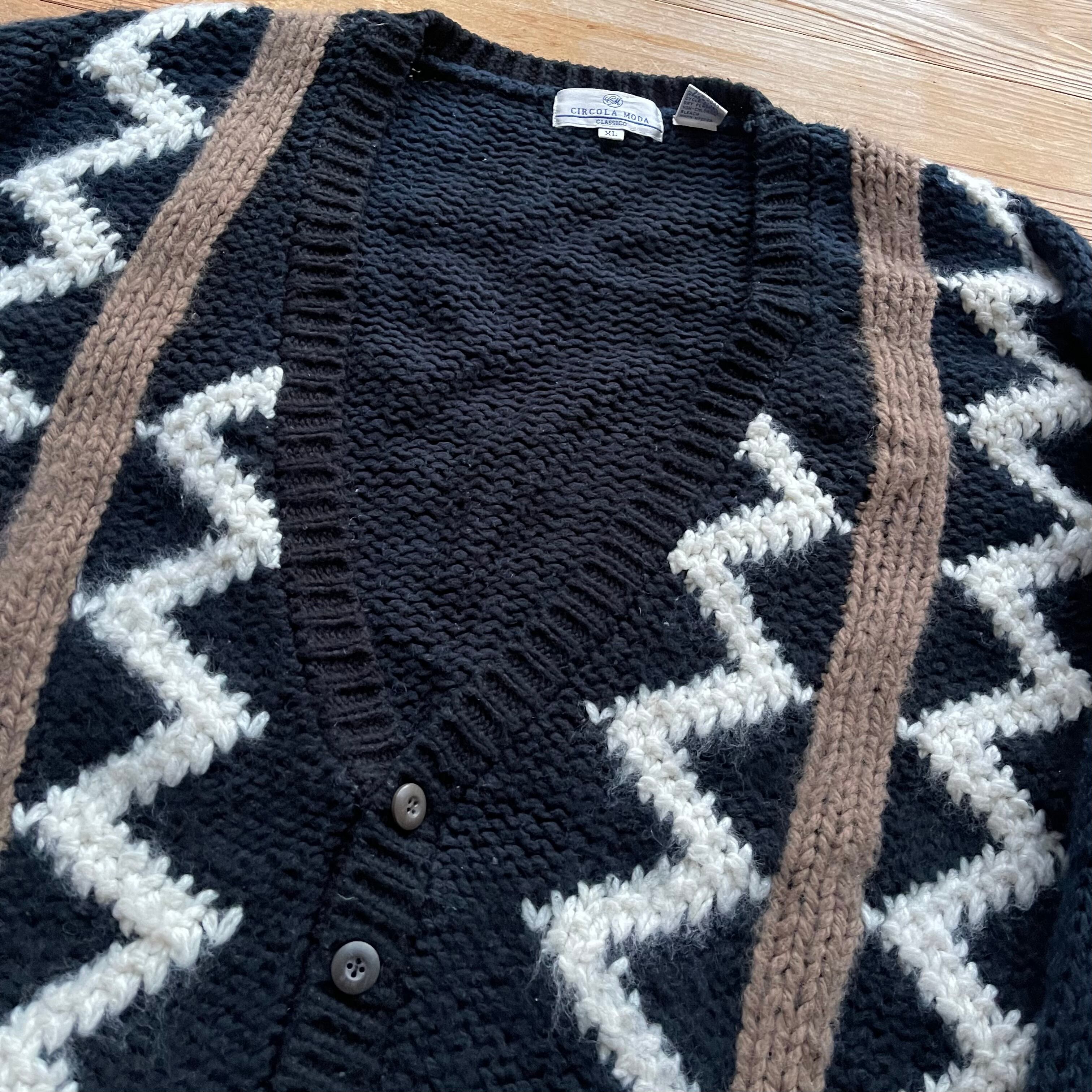 90's geometric patterns knit cardigan. 古着 幾何学総柄カーディガン ブラック 黒 XL