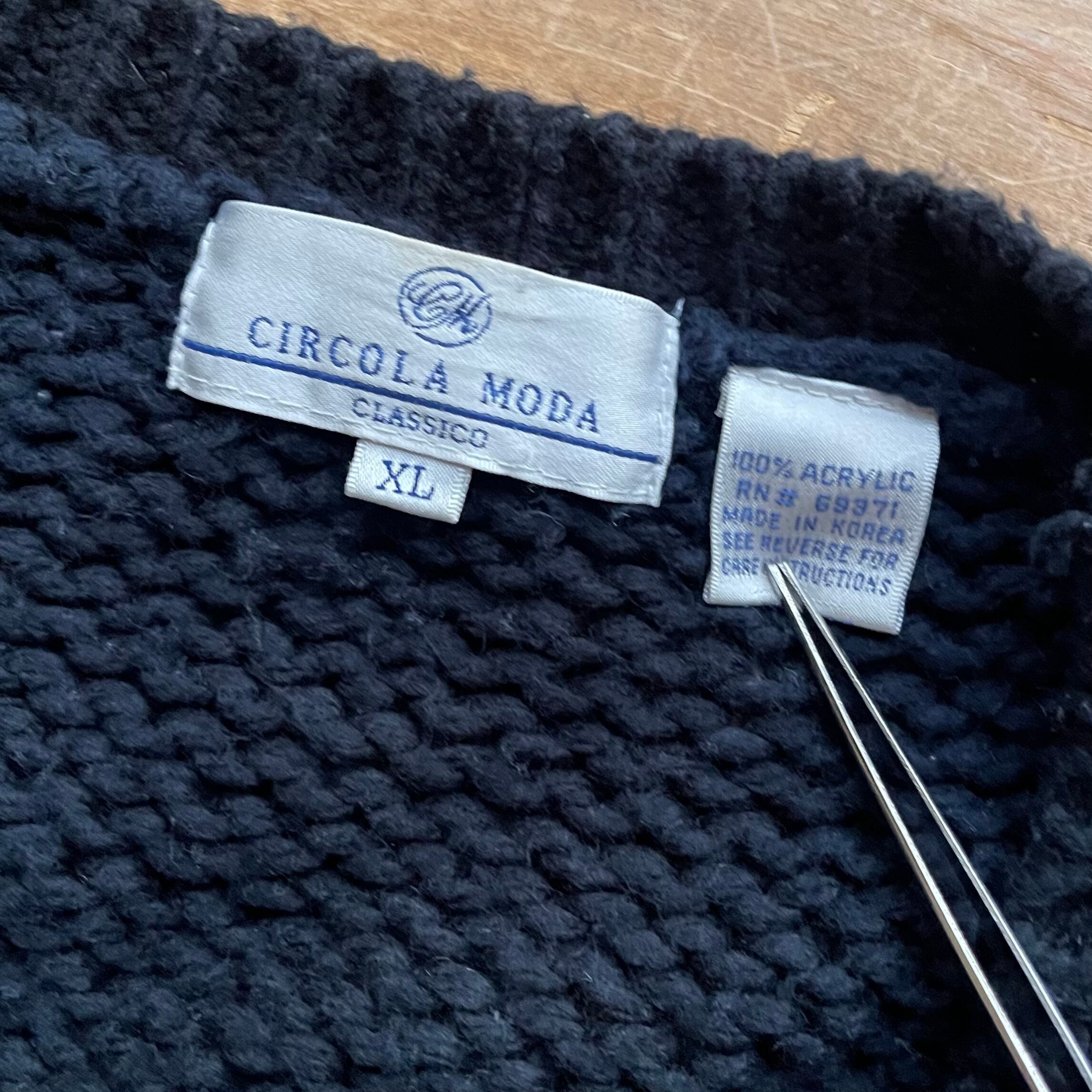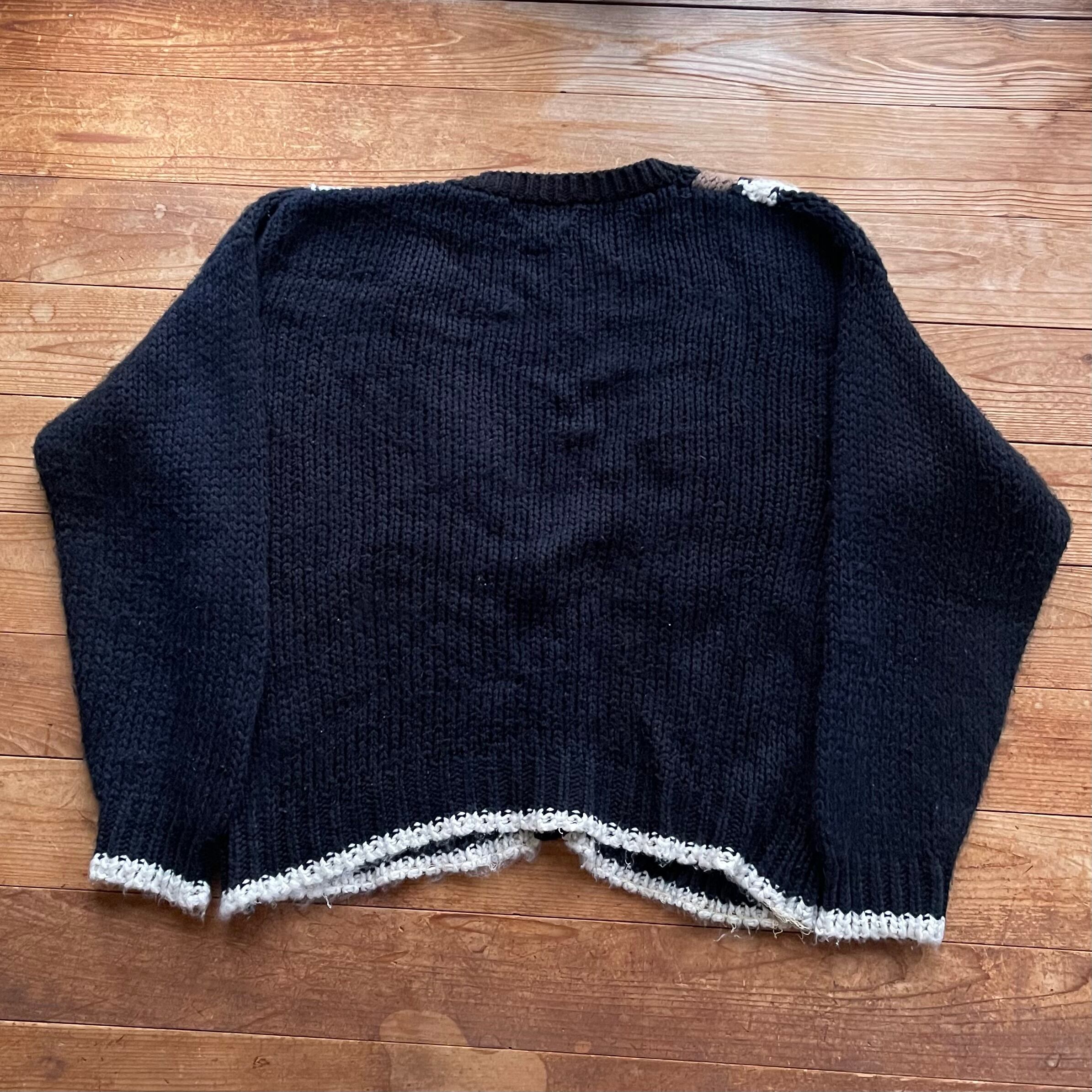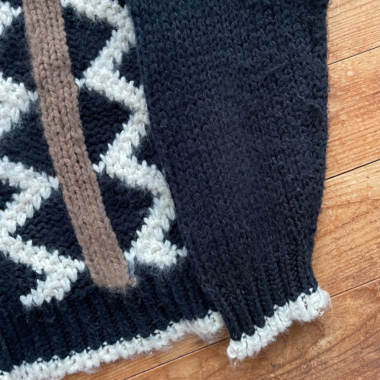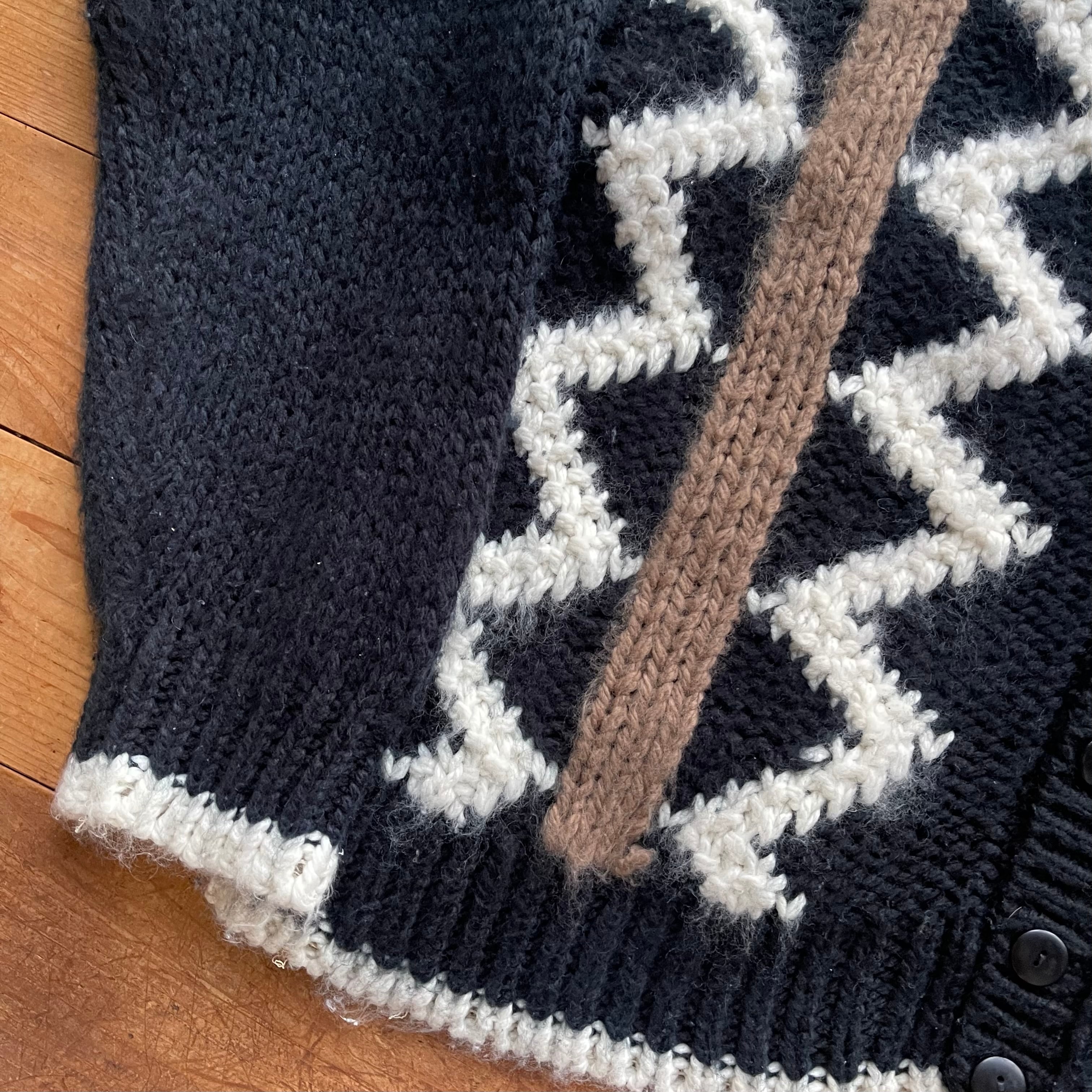 90's geometric patterns knit cardigan. 古着 幾何学総柄カーディガン ブラック 黒 XL