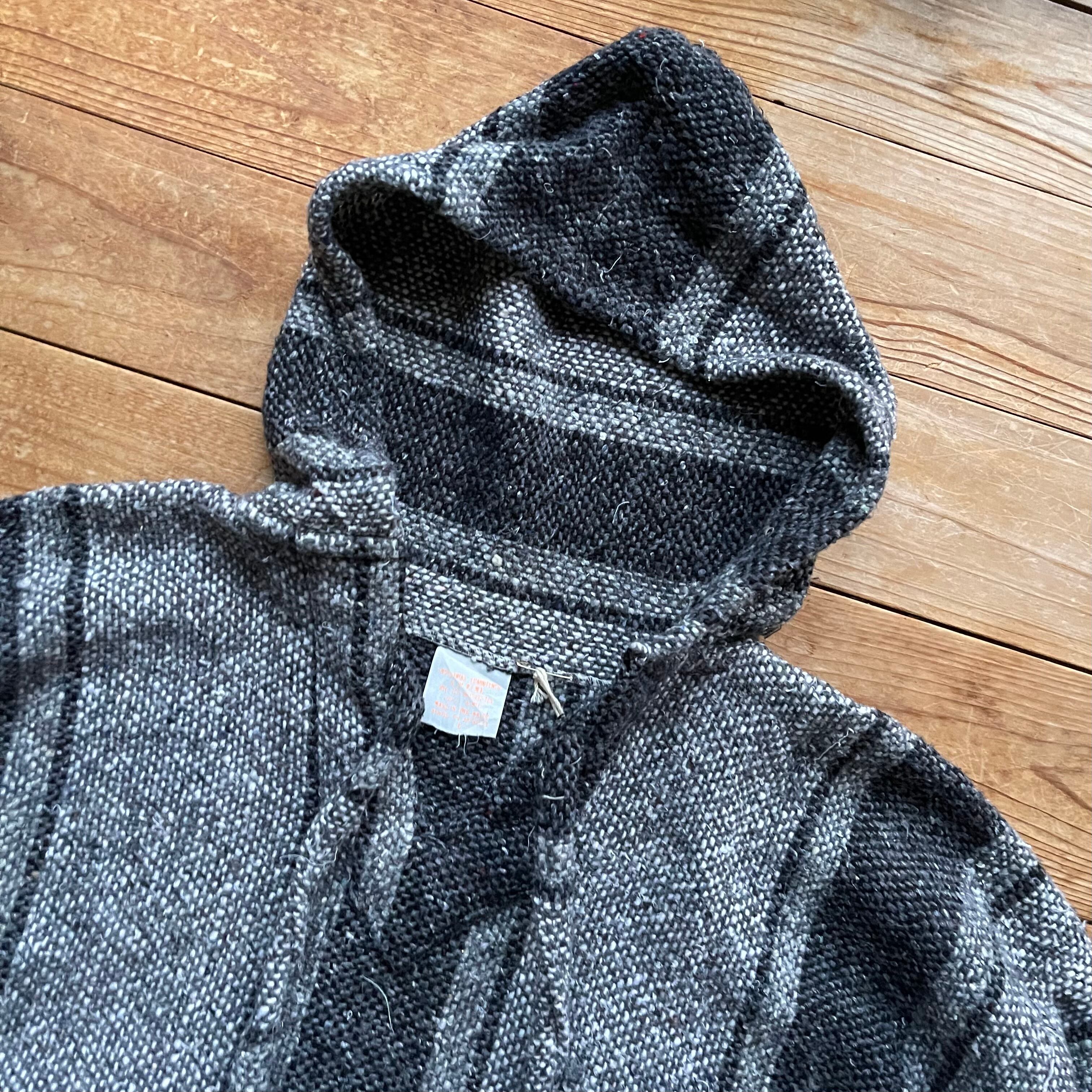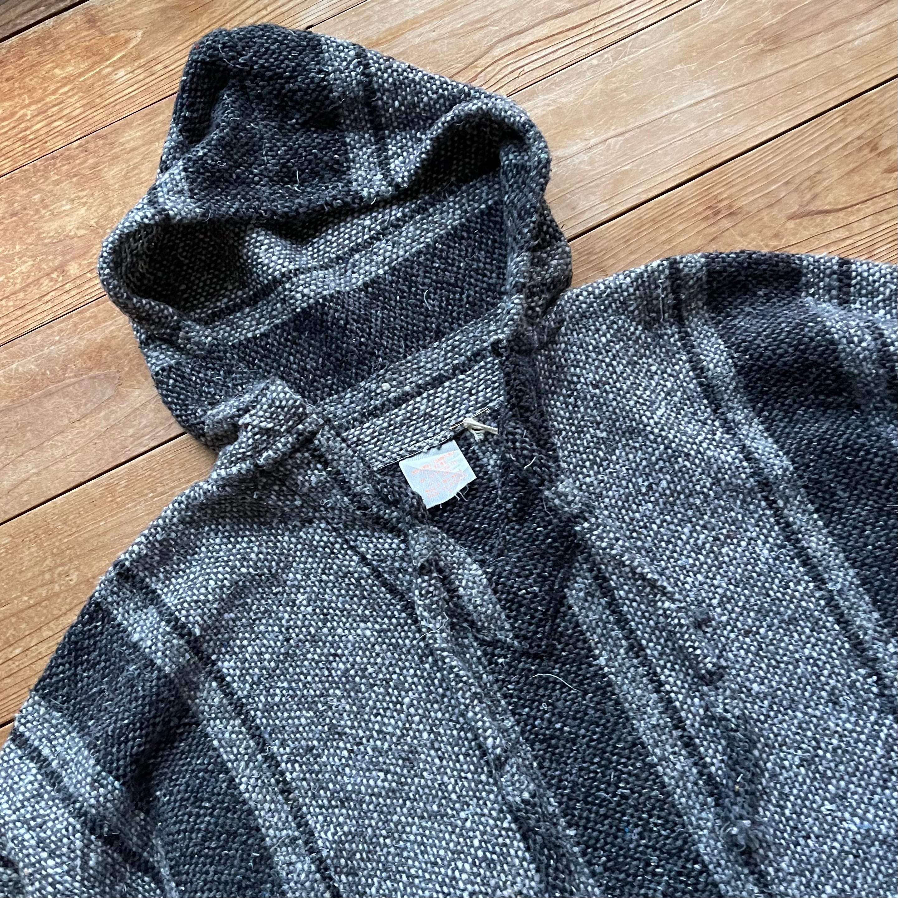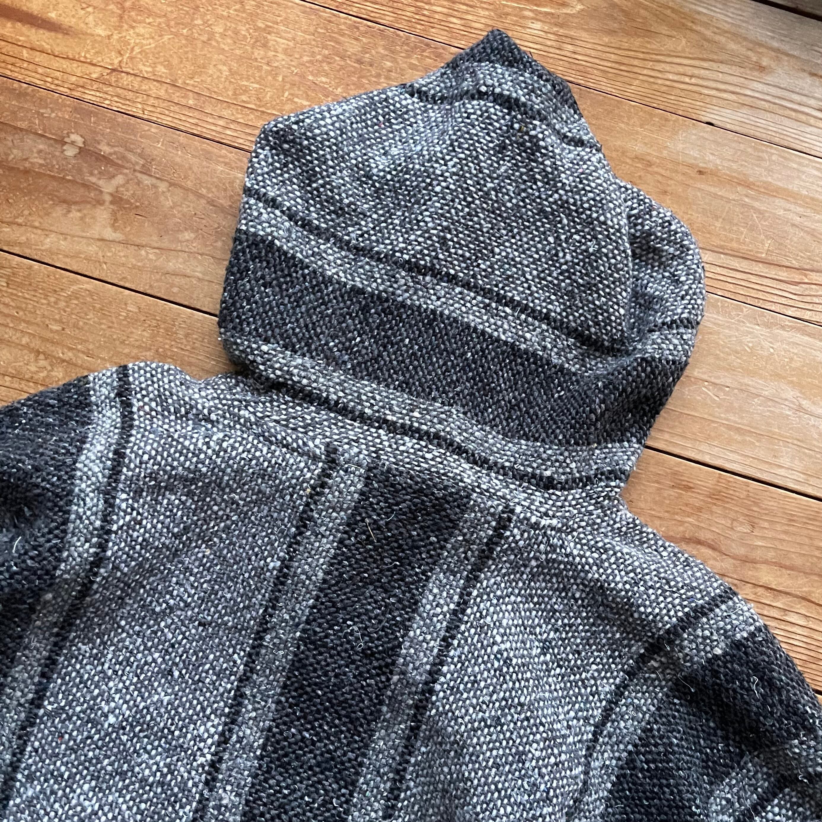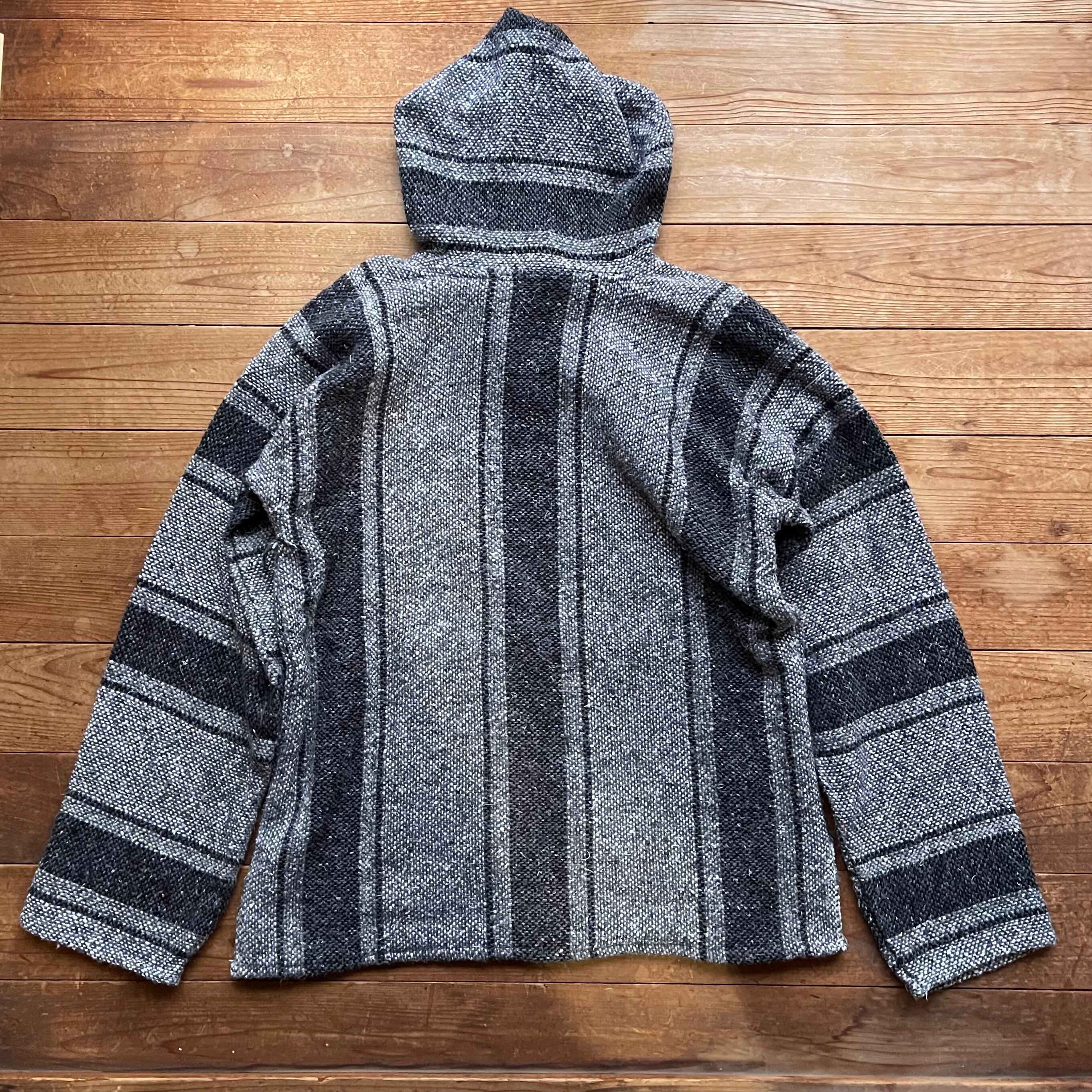90's mulch stripe Mexican parka. 古着 メキシカンパーカー マルチストライプ グレー ブラック 黒 L
