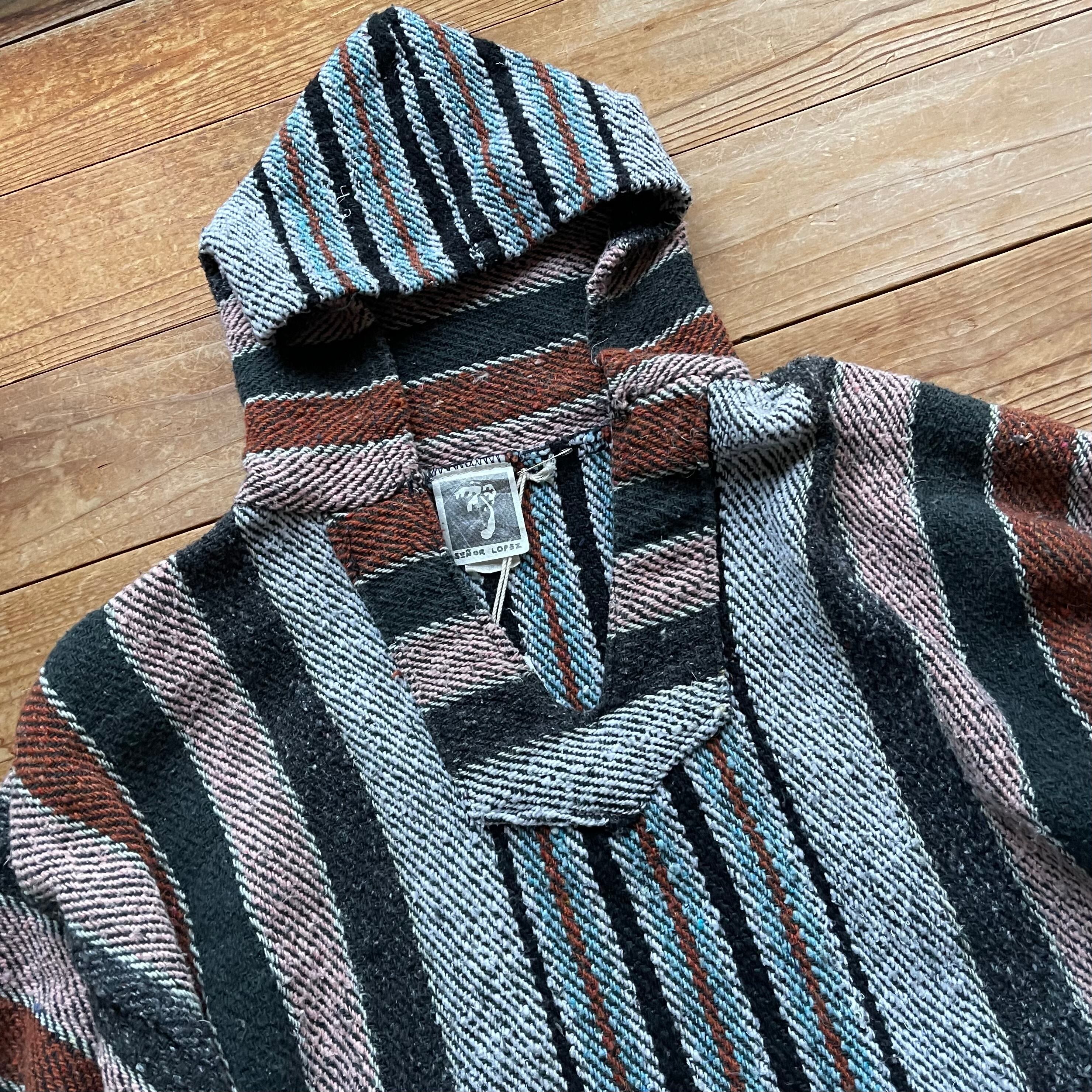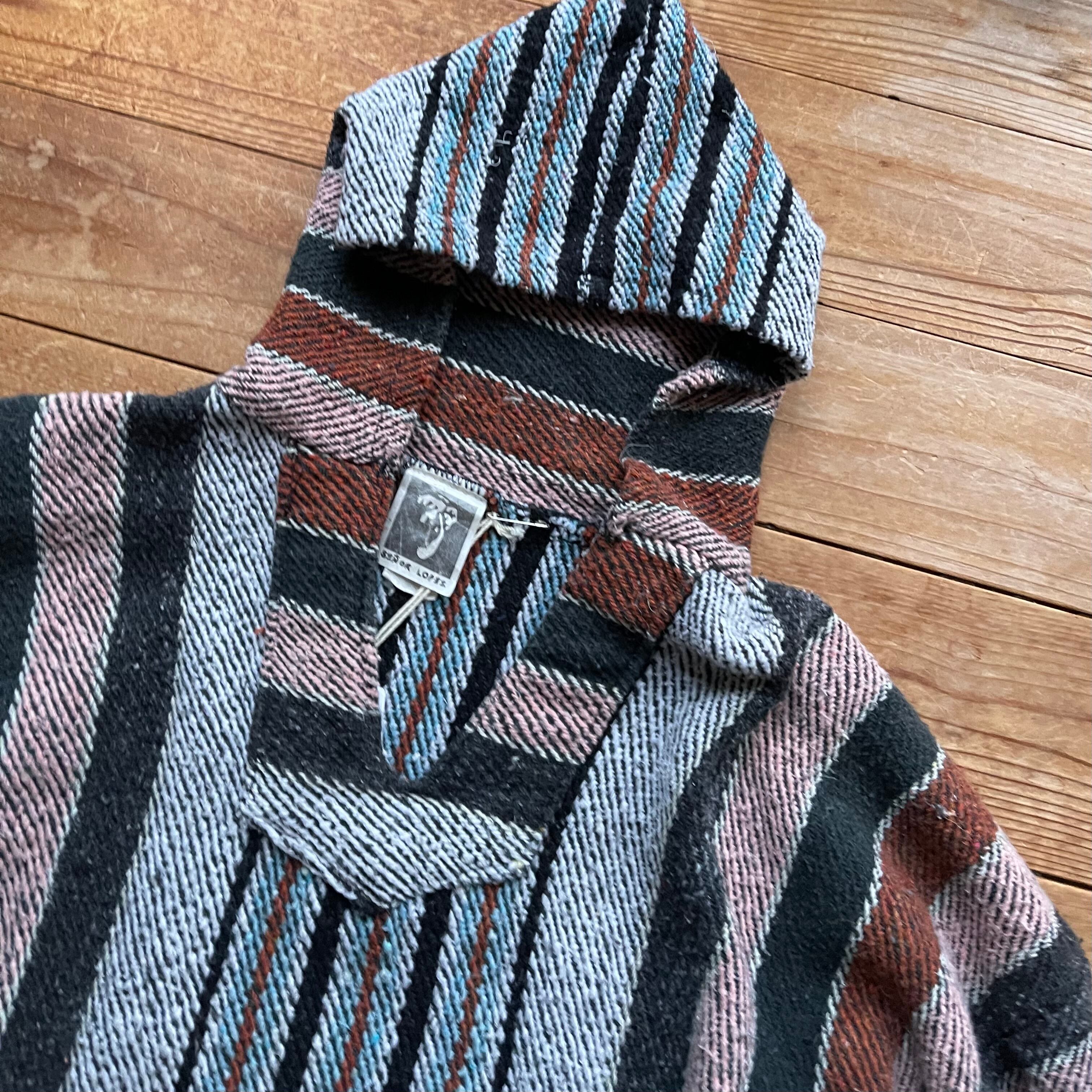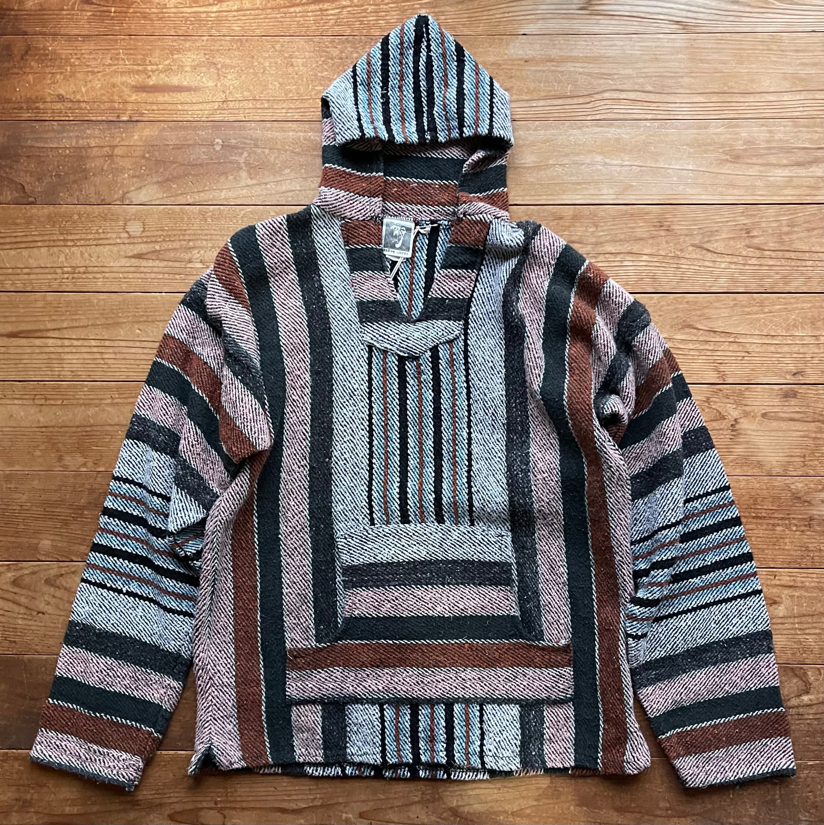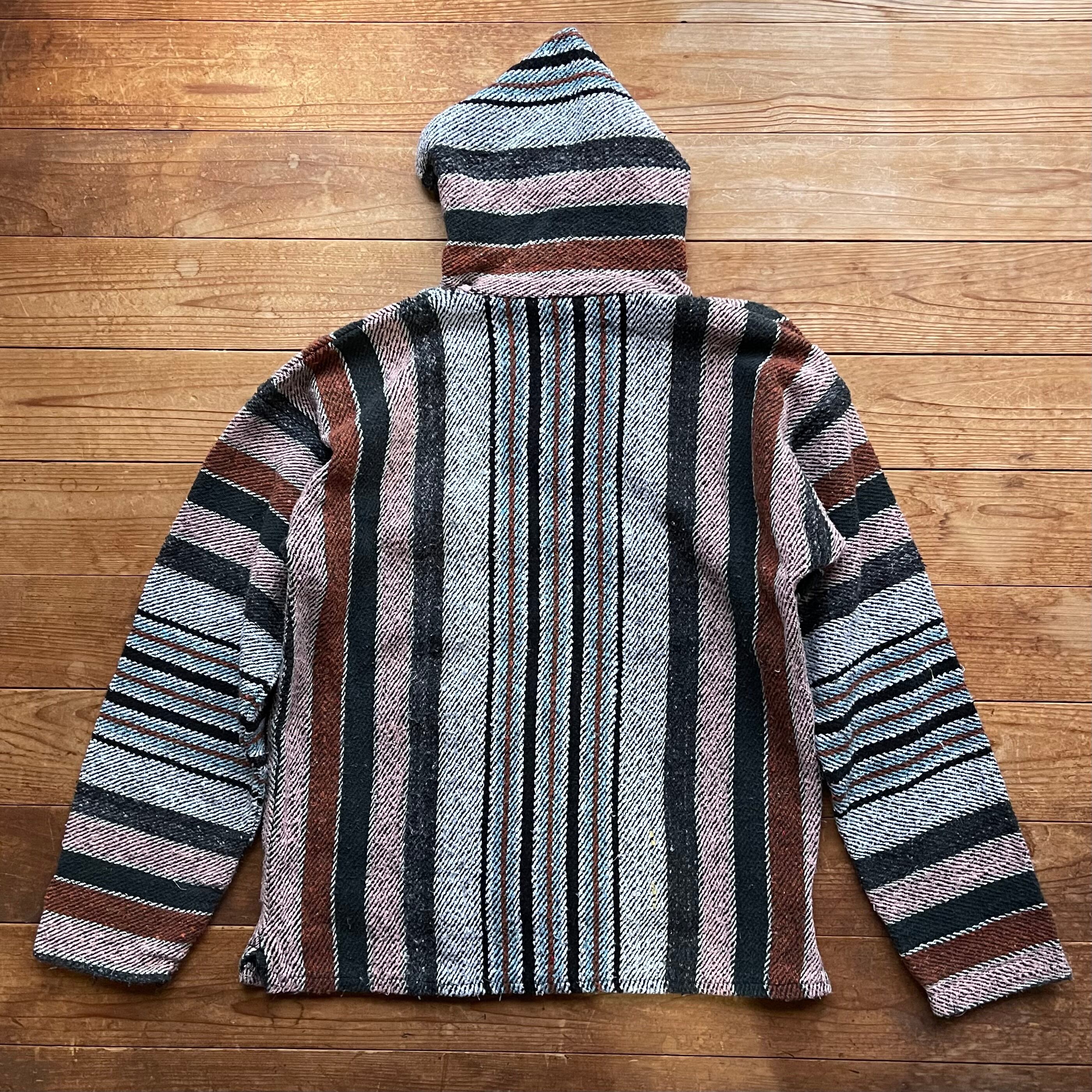 80's Señor Lopez mulch stripe Mexican parka. 古着 メキシカンパーカー マルチストライプ ブラック ブラウン L