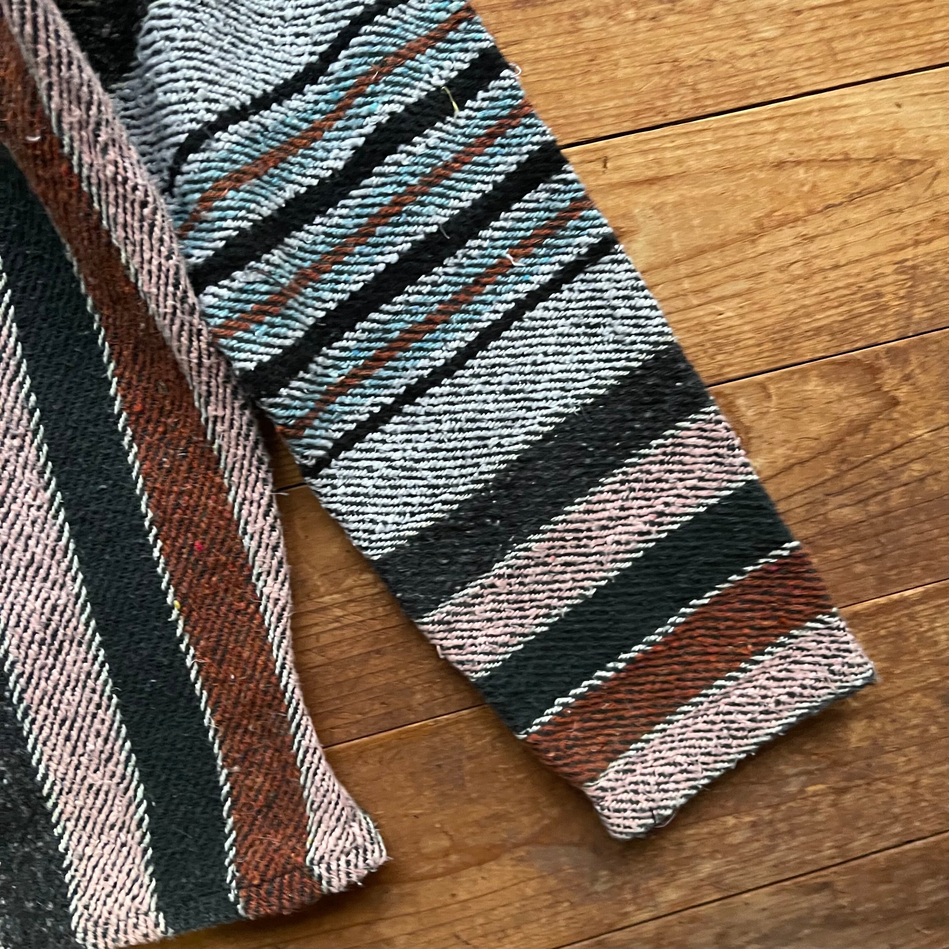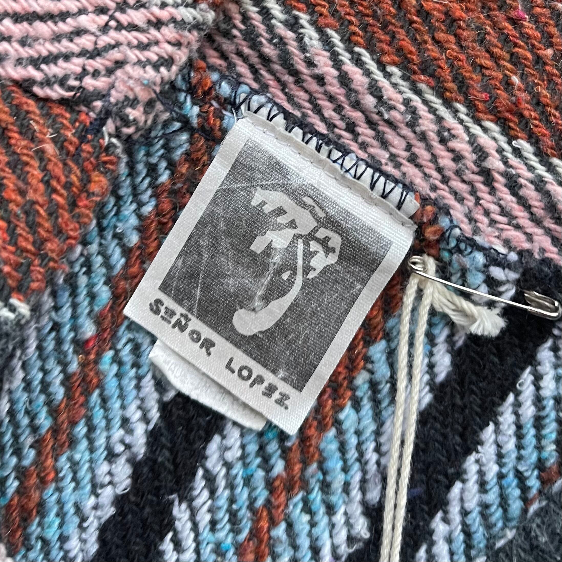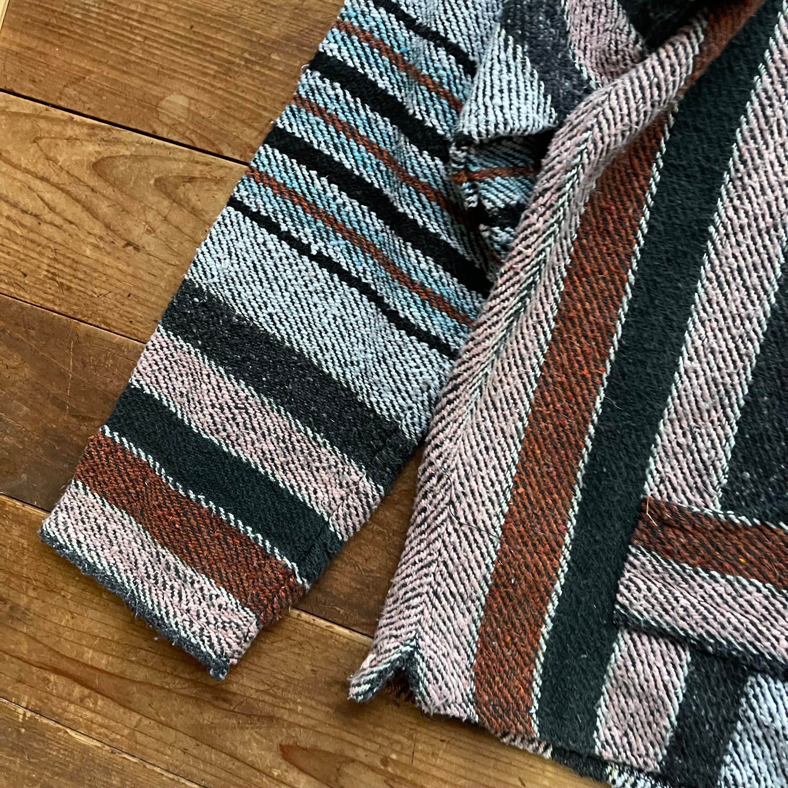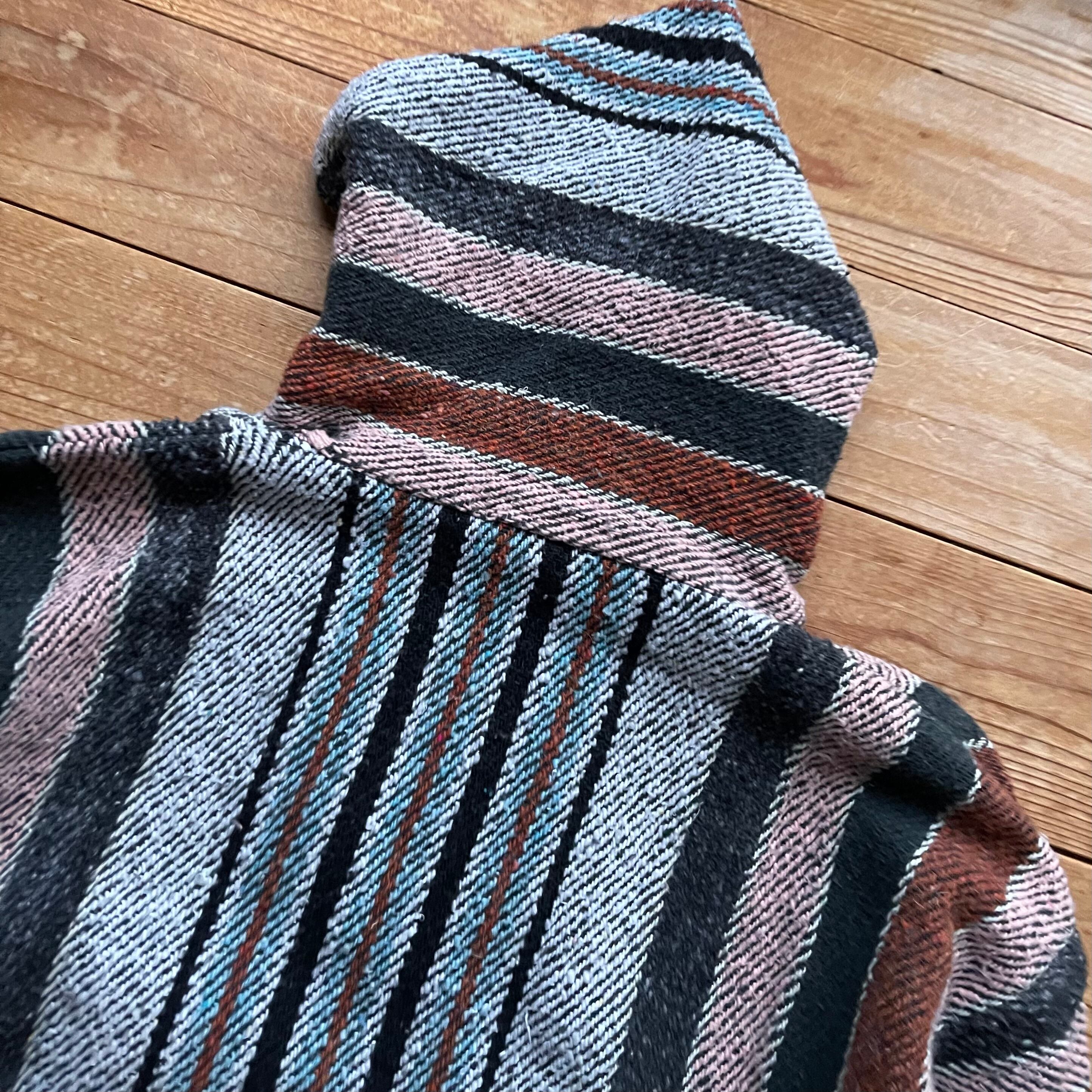80's Señor Lopez mulch stripe Mexican parka. 古着 メキシカンパーカー マルチストライプ ブラック ブラウン L
