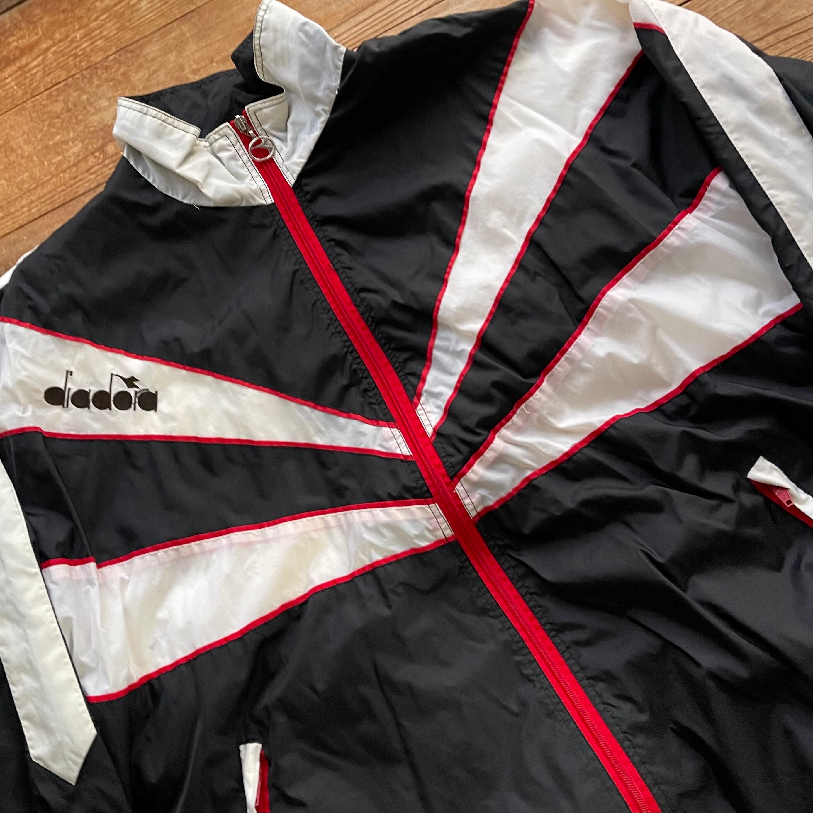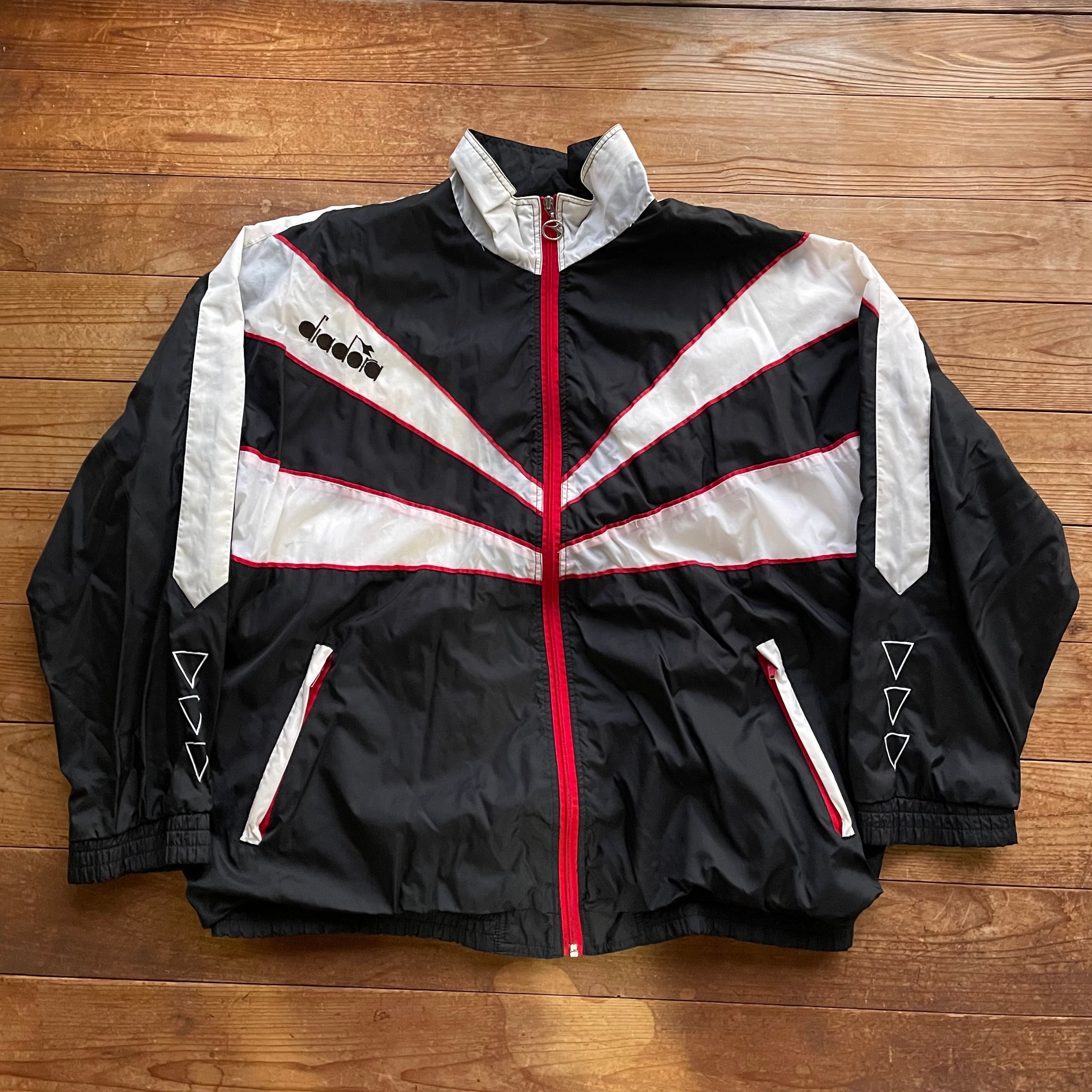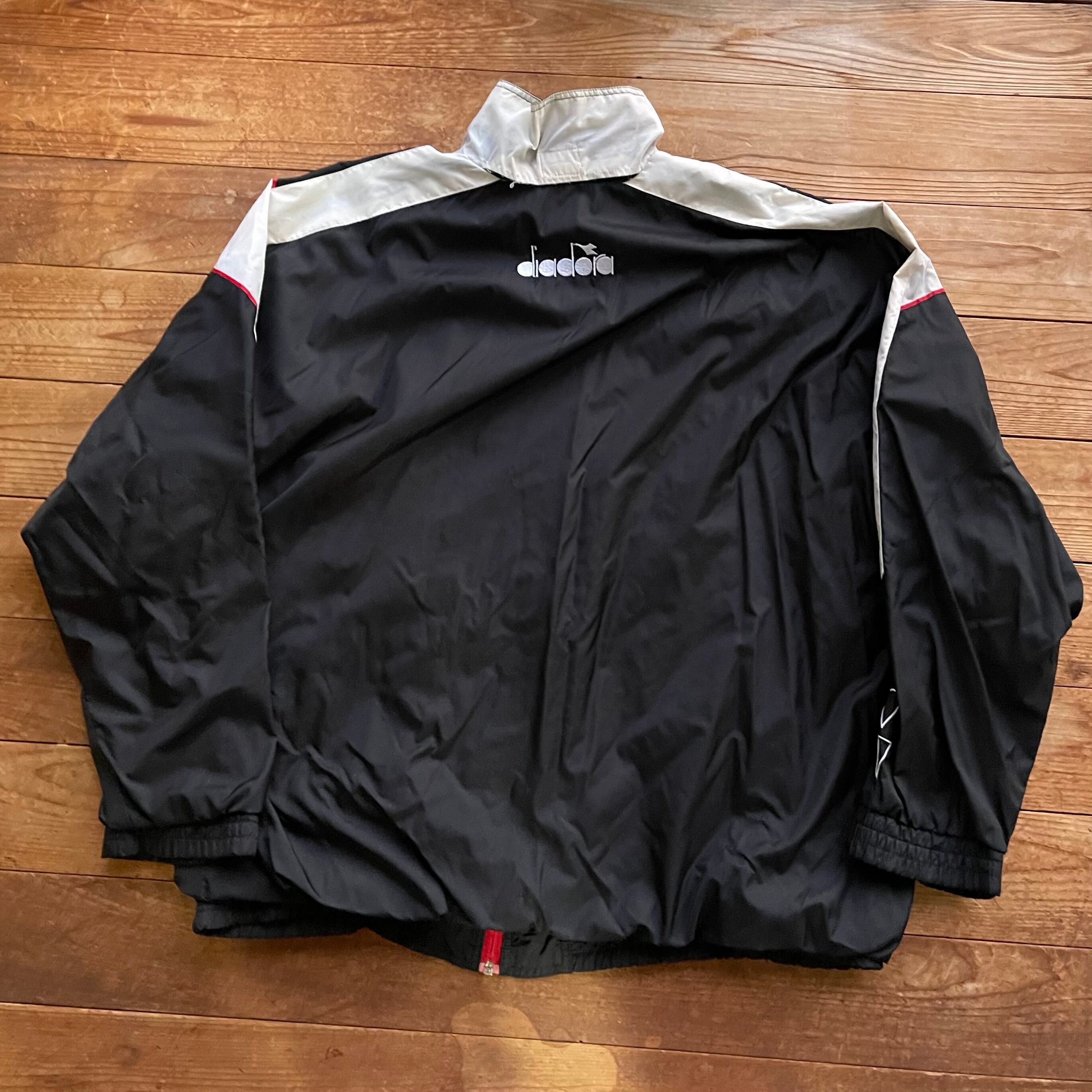 90's Diadora nylon track jacket. 古着 ディアドラ ナイロントラックジャケット ウーブン ブラック ホワイト 黒