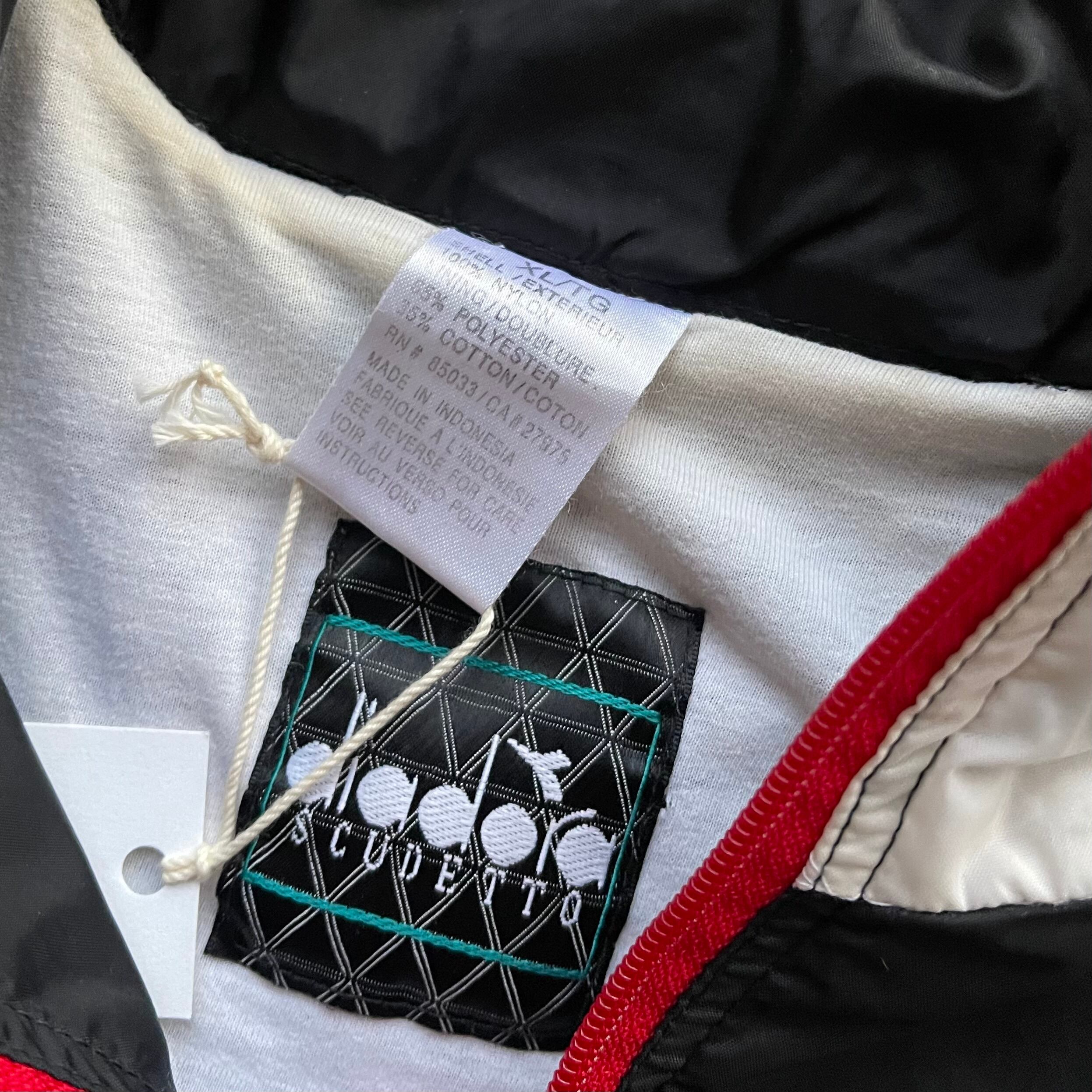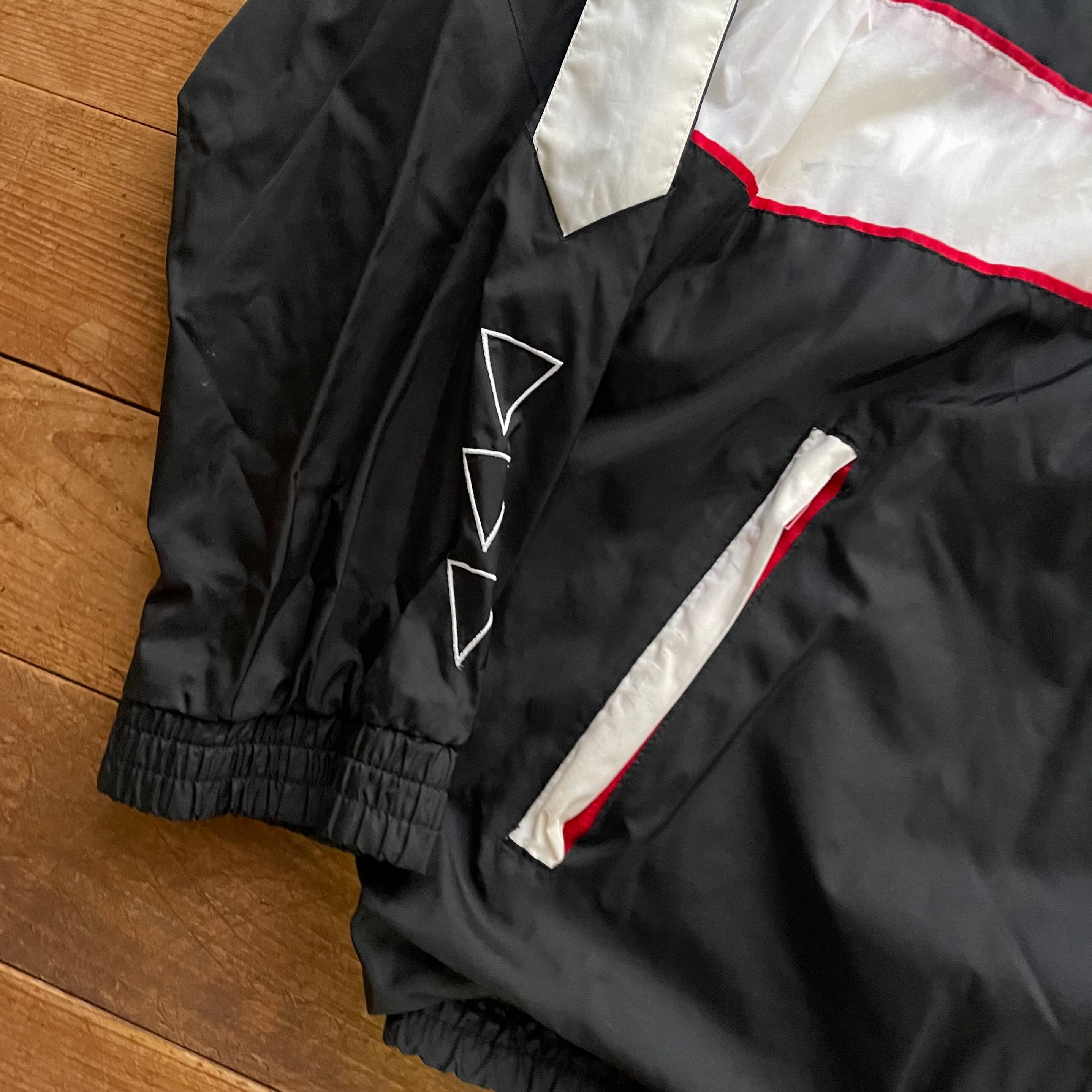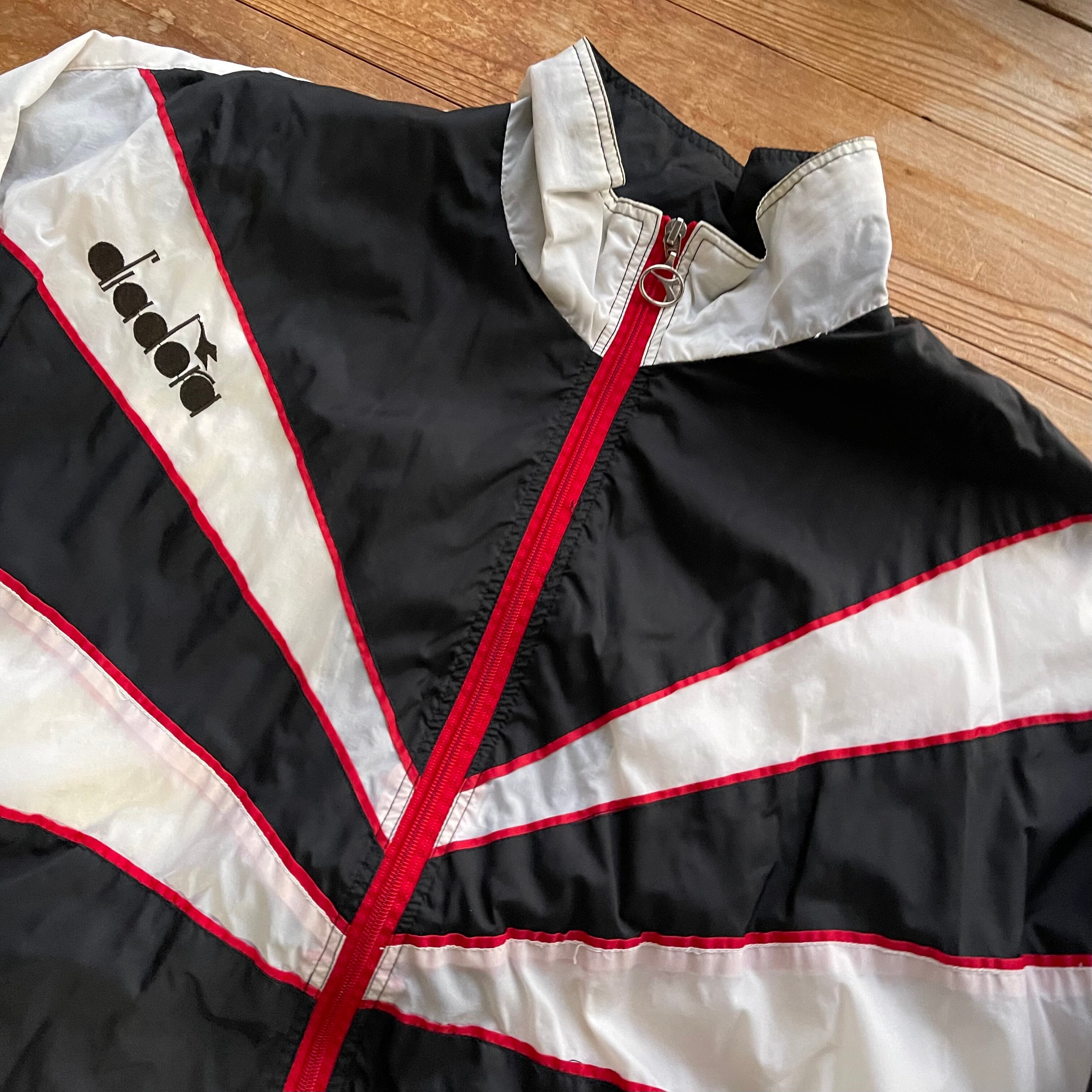 90's Diadora nylon track jacket. 古着 ディアドラ ナイロントラックジャケット ウーブン ブラック ホワイト 黒