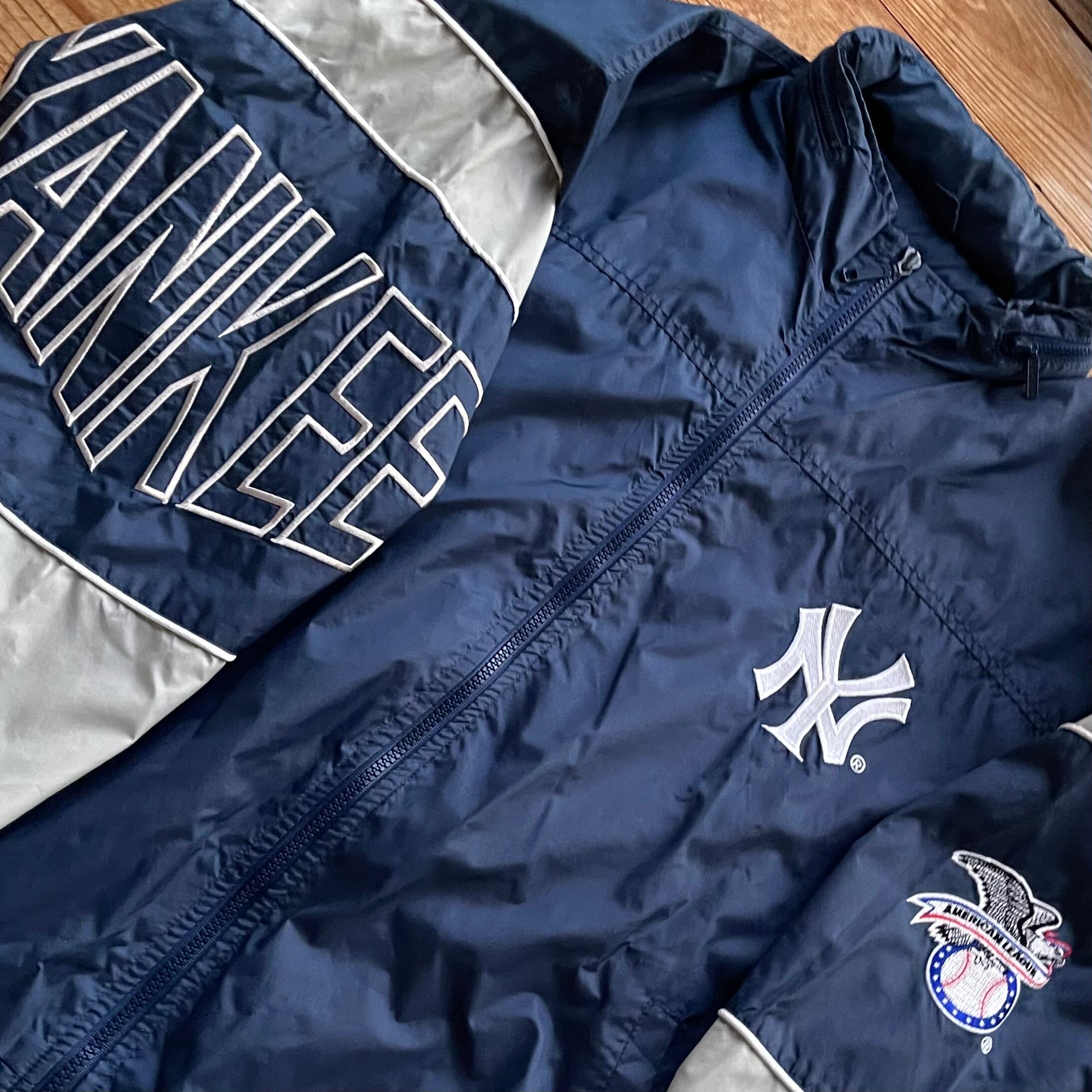 90's STARTER MLB New York Yankees nylon jacket. 古着 ニューヨーク・ヤンキースナイロンジャケット ネイビー 紺