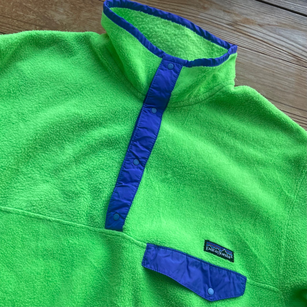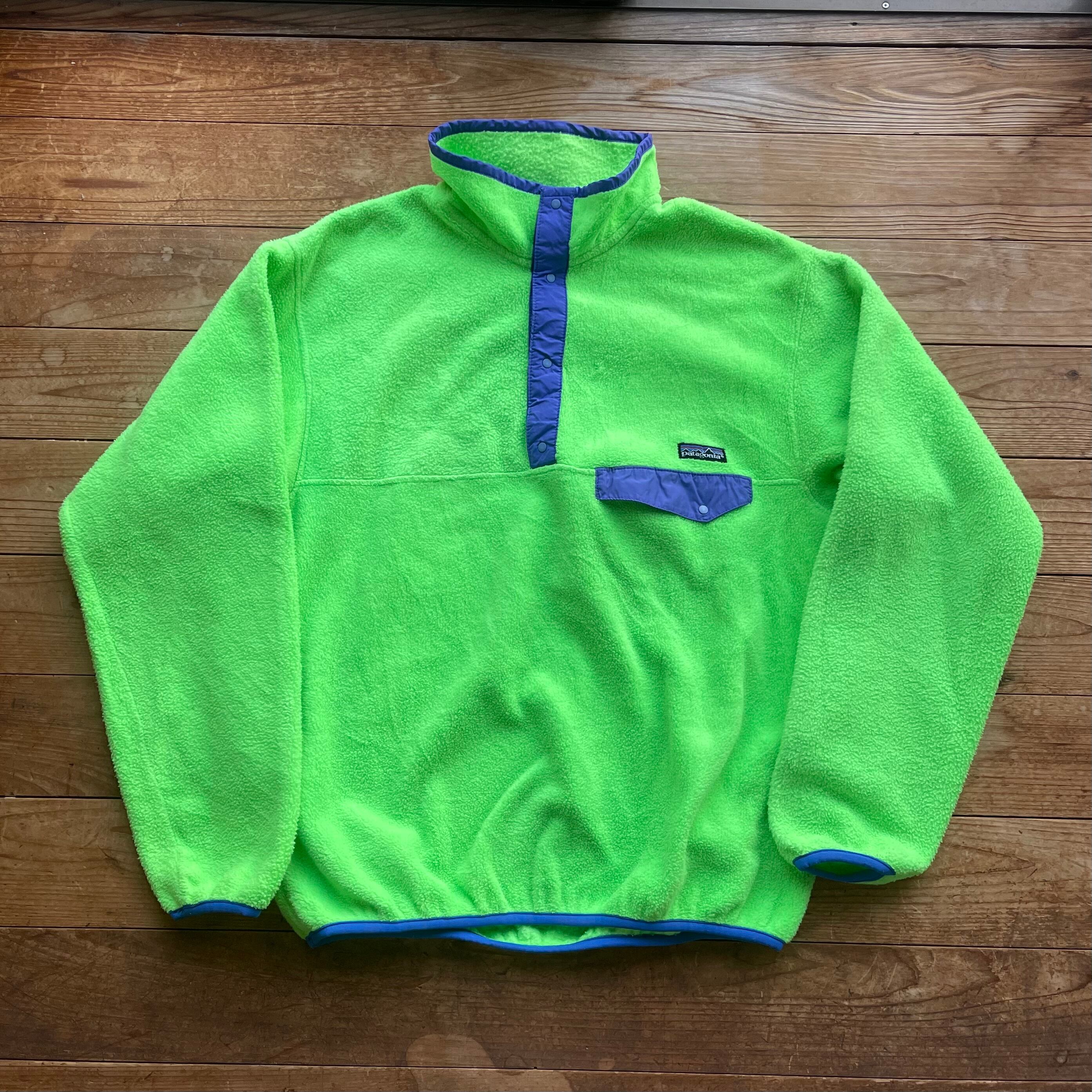 80's Patagonia Snap-T Pullover. 古着 パタゴニア スナップT フリース 黄緑 ライトグリーン ライム