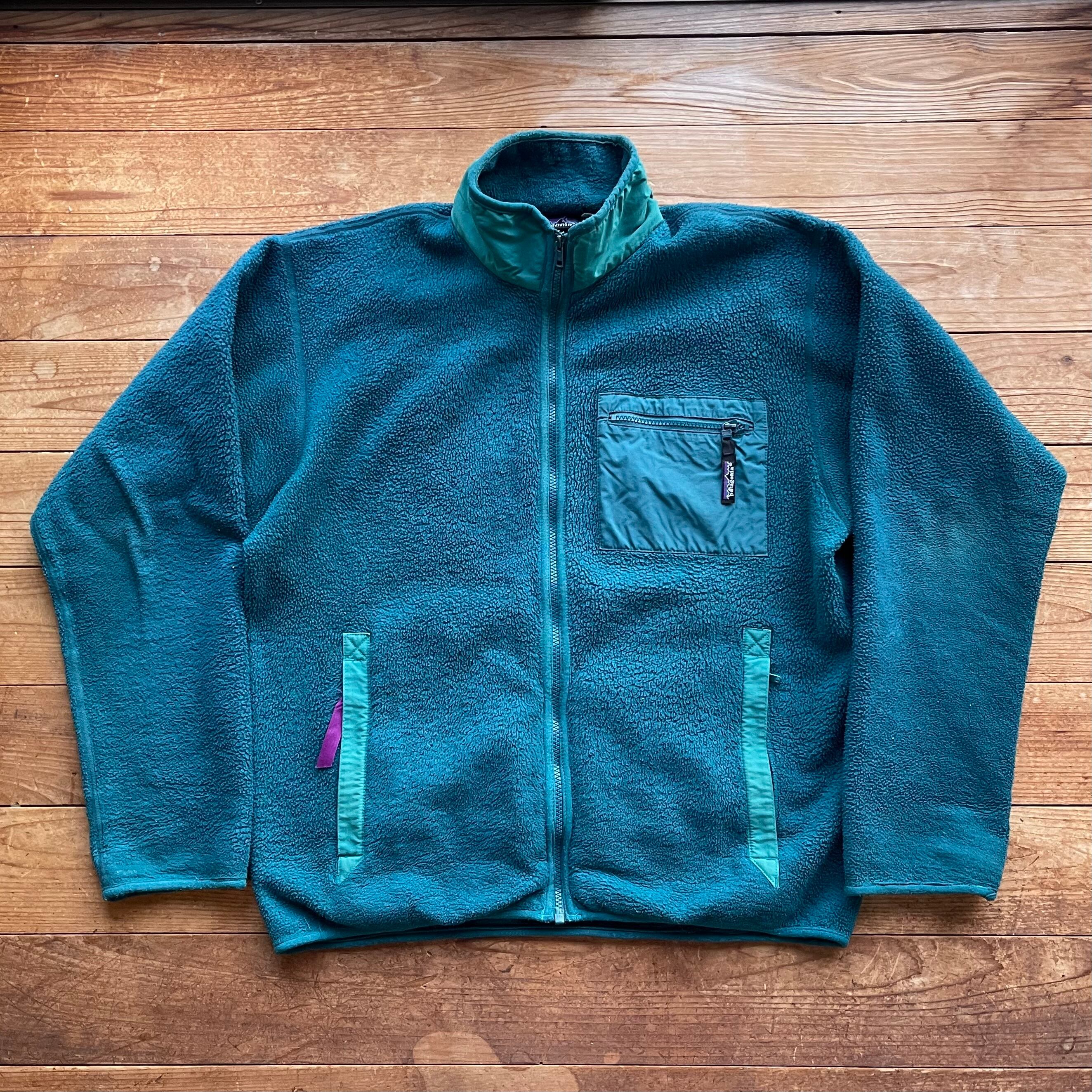 80's Patagonia zip up fleece jacket. 古着 パタゴニア グリーン フリースカーディガン ジップアップ 緑 L
