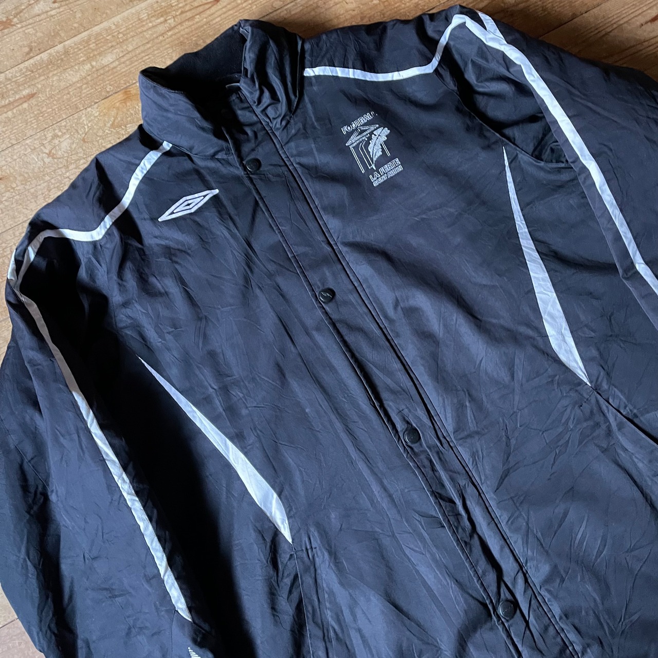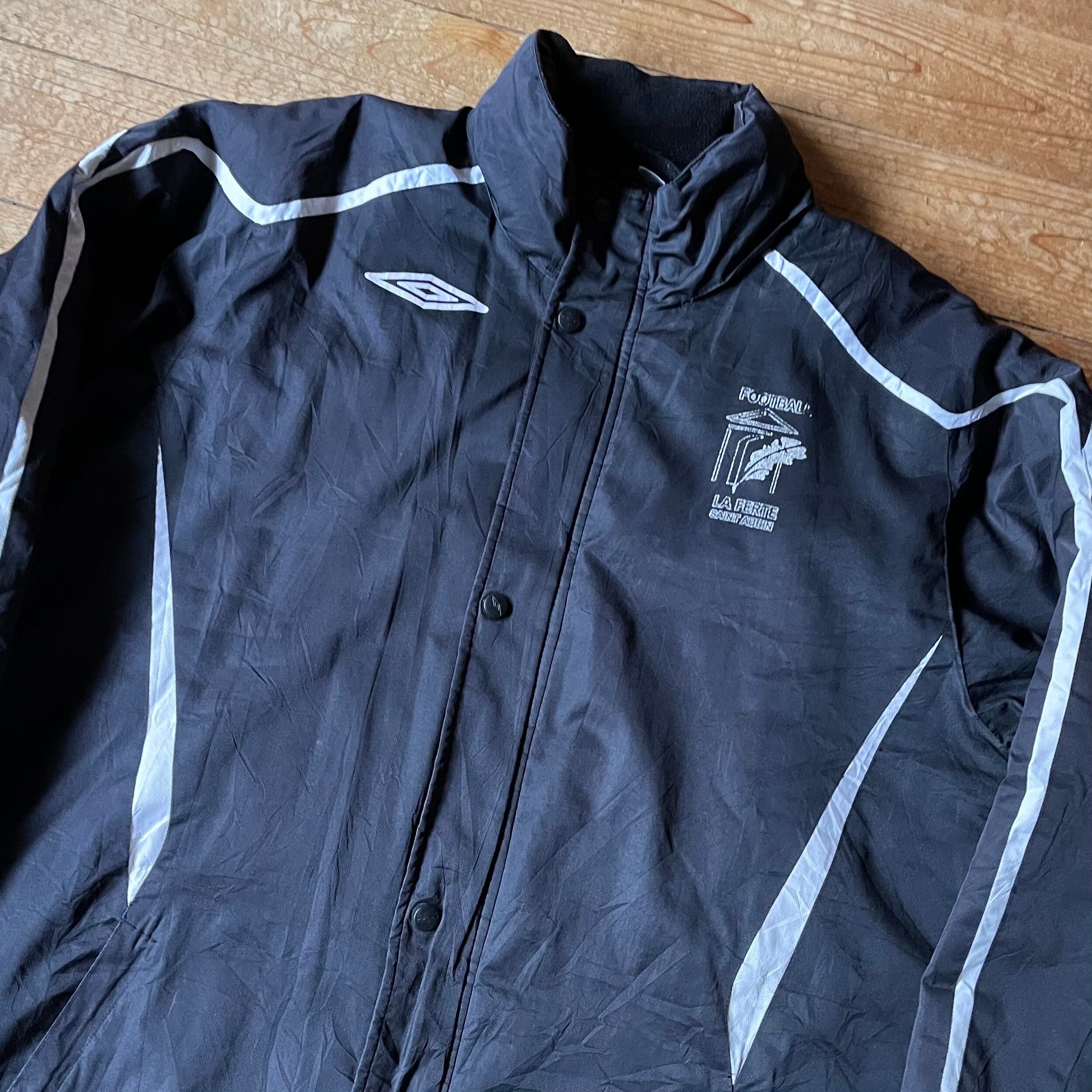 00's UMBRO padded fleece lining jacket. ユーロ古着 アンブロ 中綿ジャケット 裏フリース サッカー ブラック 黒 XL