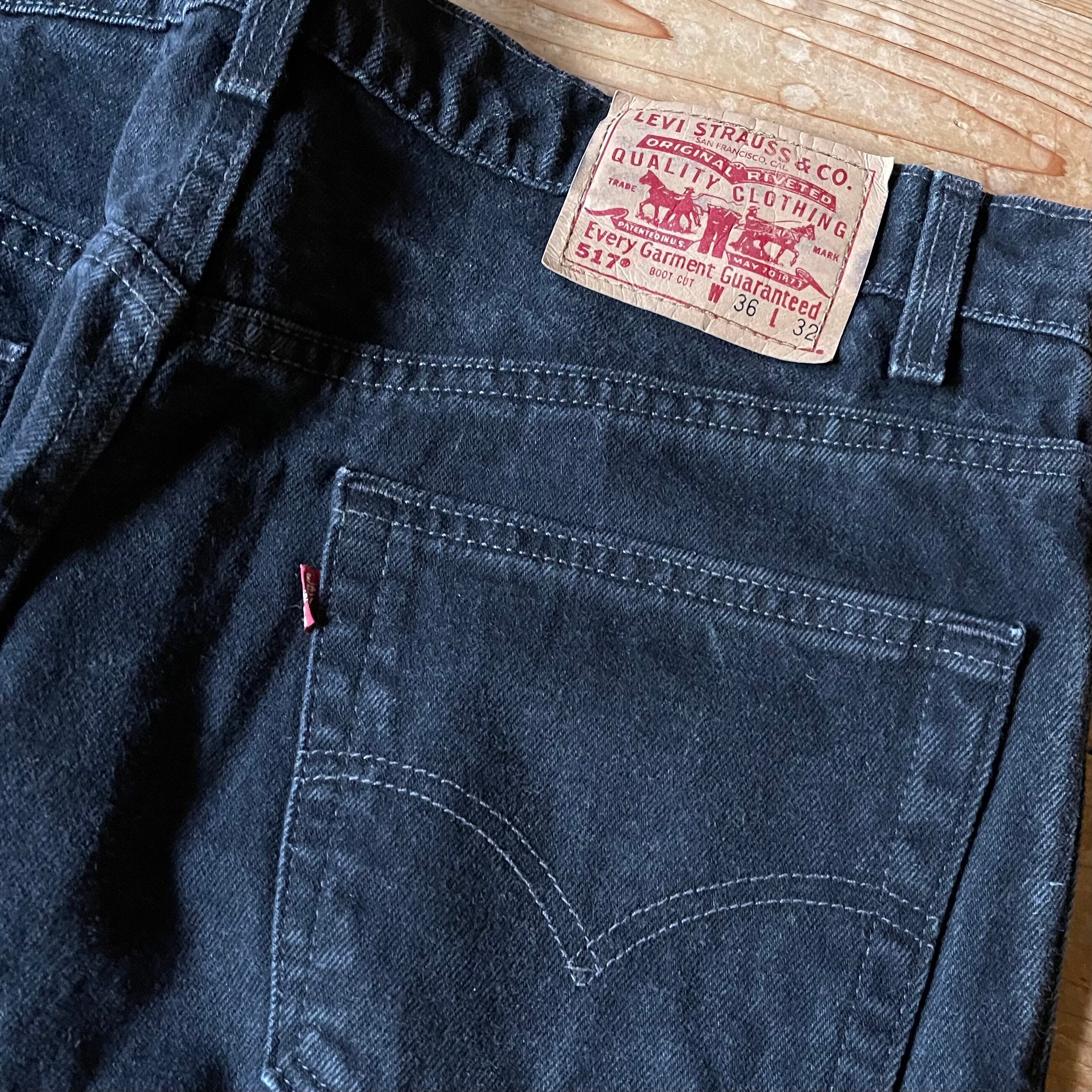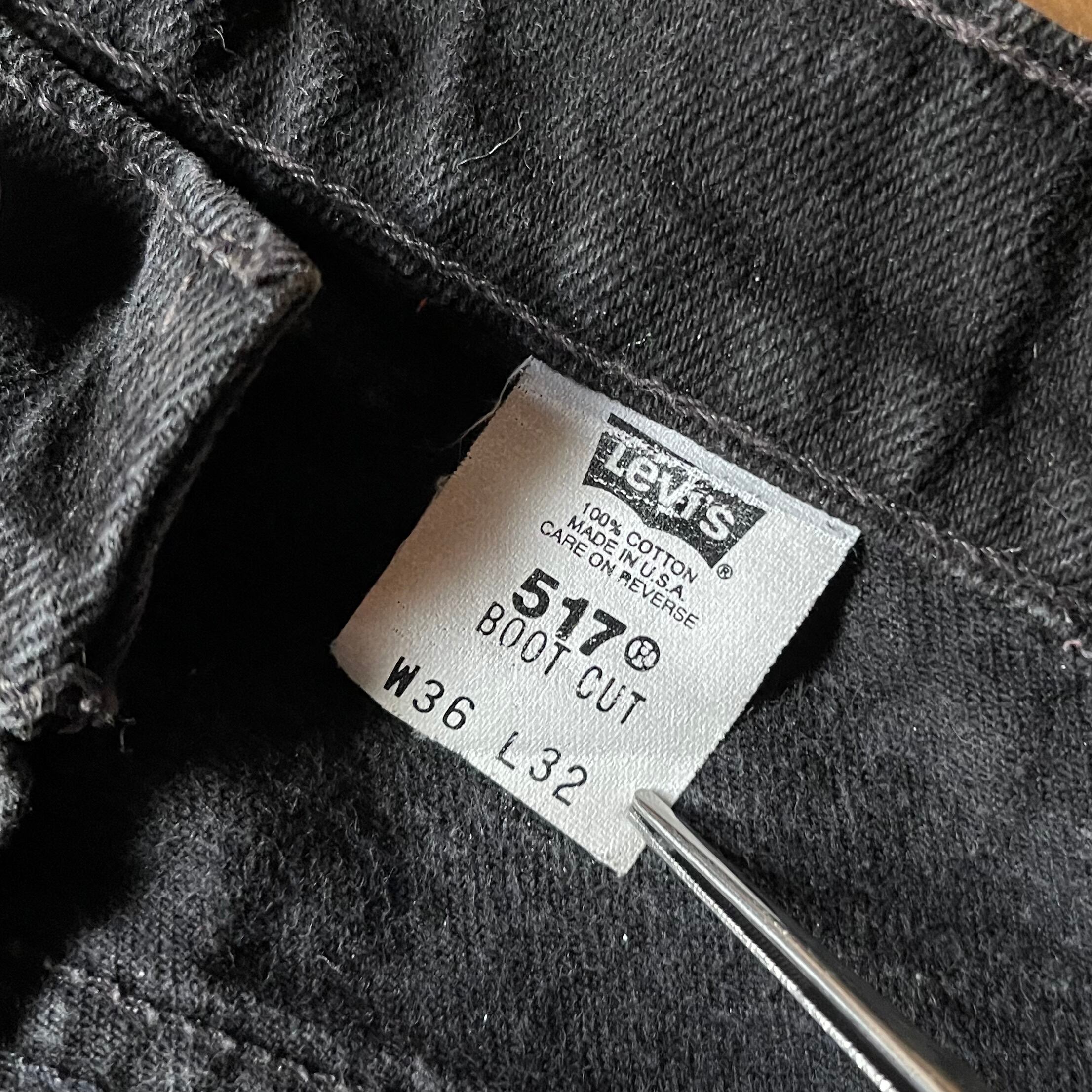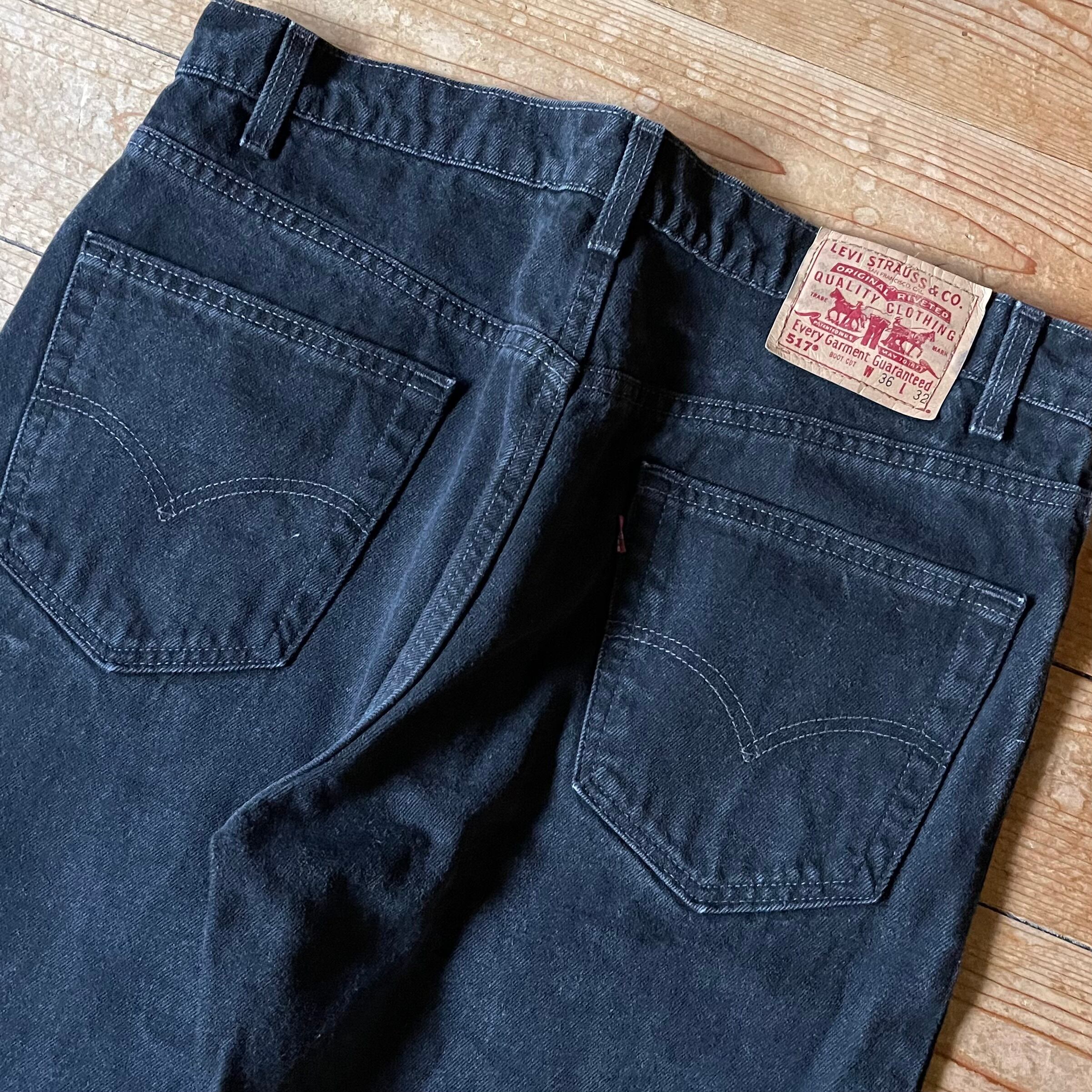 90's USA製 Levi's 517 Black denim pants. 古着 リーバイス ブラックデニム ブーツカット フレア 黒 W36