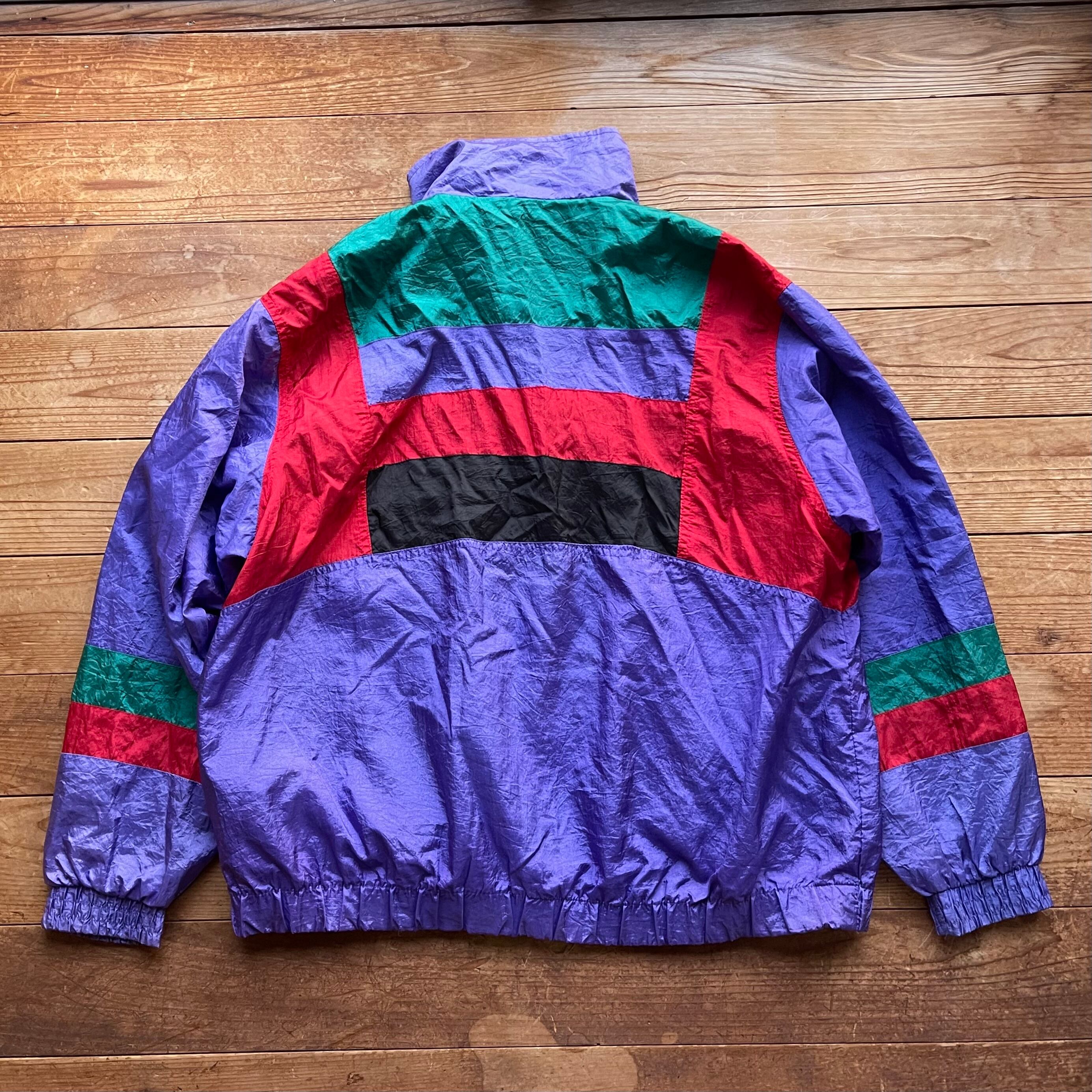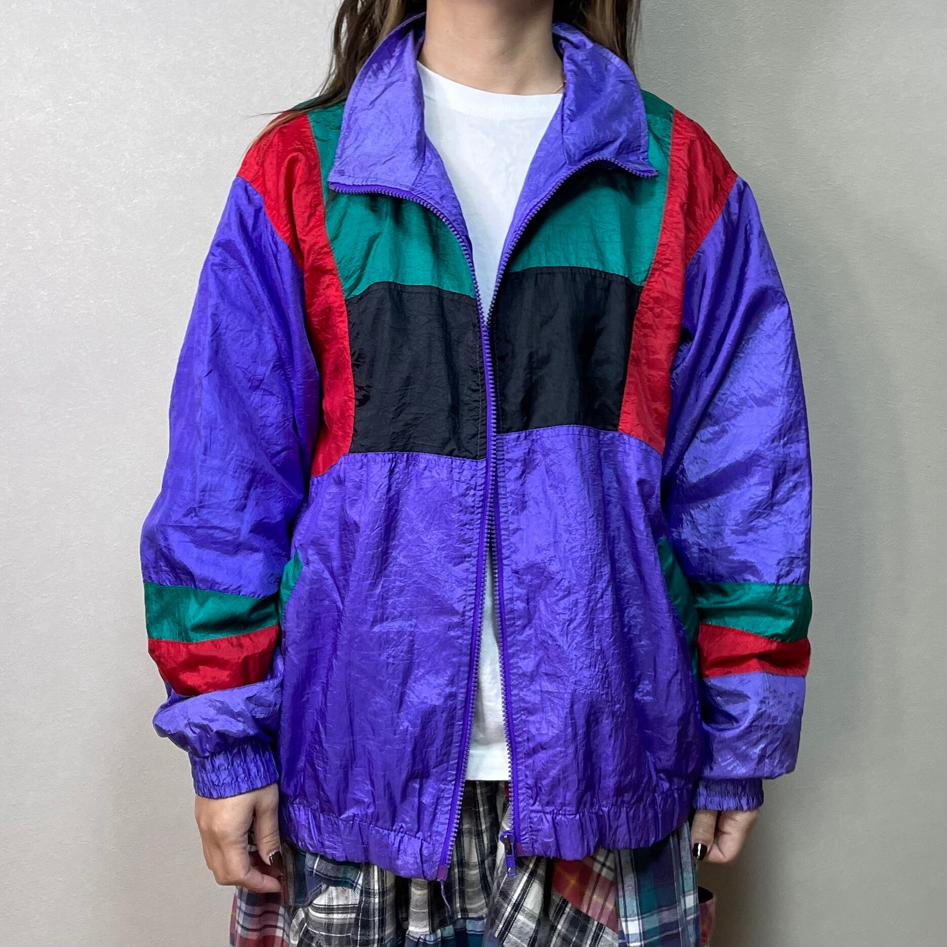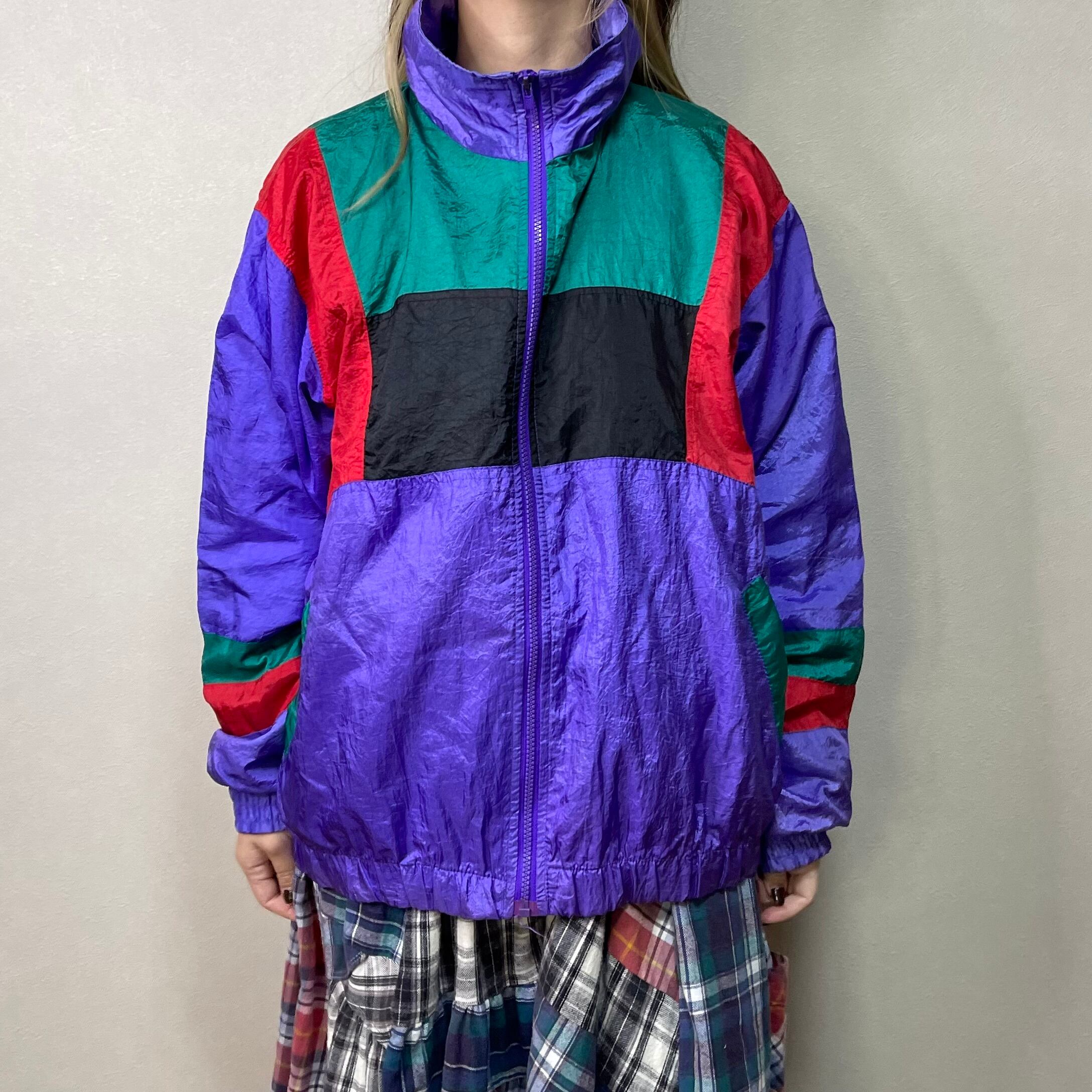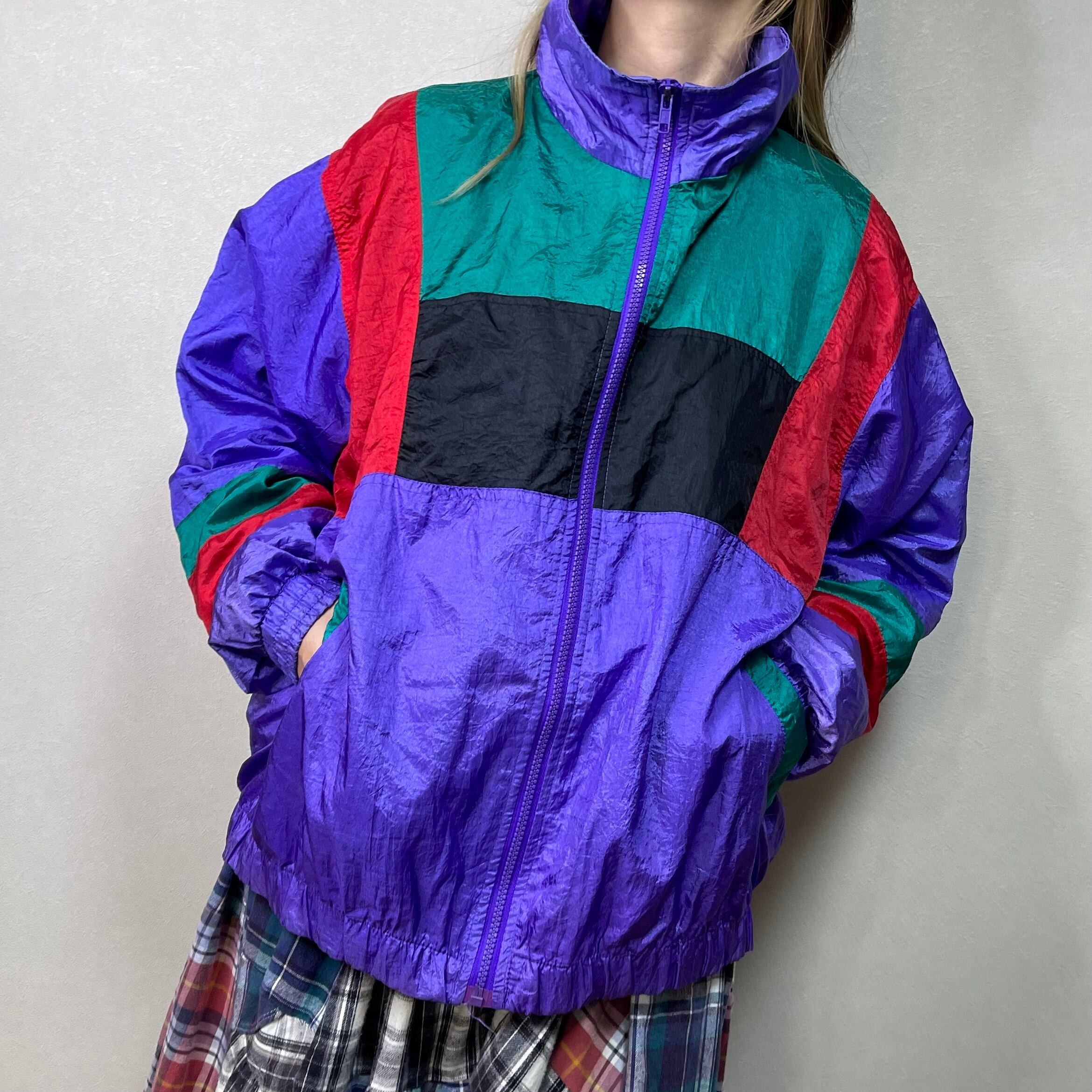 80's PANASIA switching nylon jacket. 古着 ナイロンジャケット 切り替えデザイン パープル グリーン レッド レディース メンズ